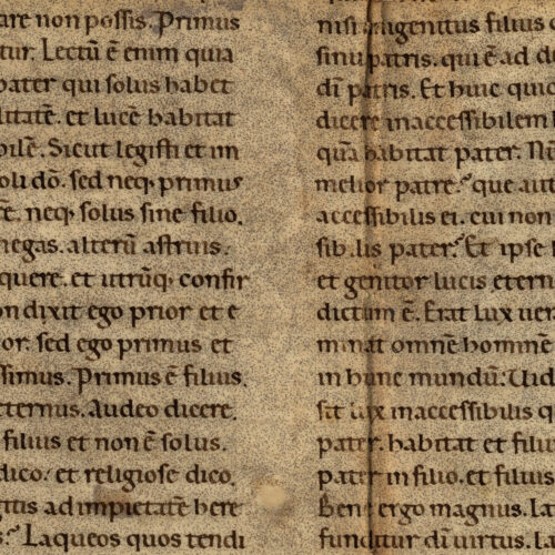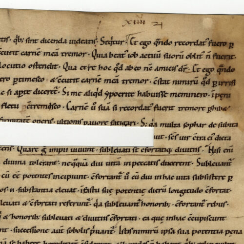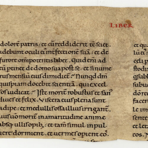 1rA-vB Biblia sacra. Vetus Testamentum. Iob (21, 19 – 24, 24), inc. dolorem patris et cum reddiderit; expl. et sicut summitates spicarum Membr.; 1 f.;...
