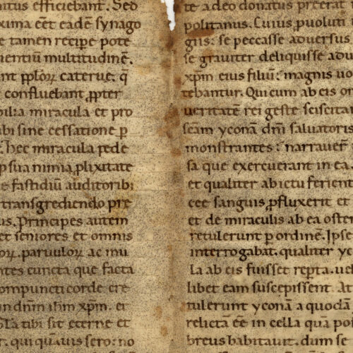 1rA-1vB Pietro Crisologo, Sermo (cf. Liverani, Spicilegium Liberianum, 186-187), inc. Deus ante ostendere; expl. tibi surge Membr.; 79 × 289; rigatura a secco con incisione...