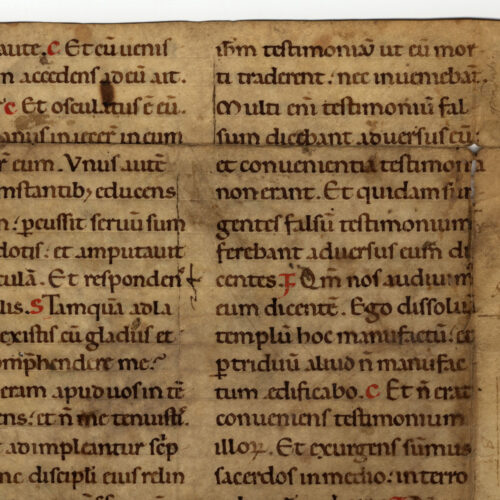 1rA-vB Biblia sacra. Novum Testamentum. Evangelium secundum Marcum (14, 44 – 15, 12), inc. ducite caute Et cum venisset statim accedens exp. Pylatus au[tem] iterum...