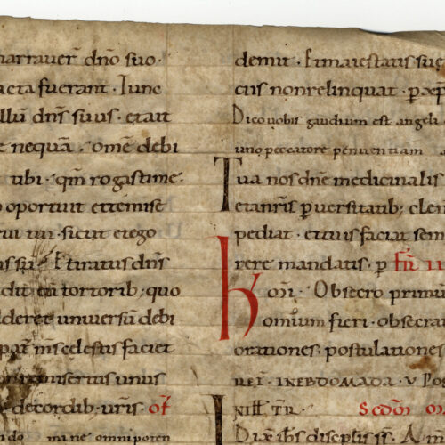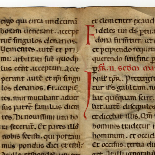 1rA-vB Messale, Domenica XXIII dopo la Pentecoste, inc. venerunt et narraverunt domino suo omnia que facta fuerant; expl. confitebimur in secula. Alleluia Membr.; 1 f.;...
