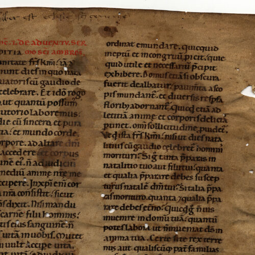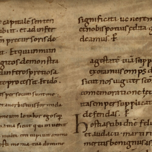 1rA-vB Sacramentario, Proprio dei Santi (dal 29 agosto all’8 settembre), inc. deinde capitalem sententiam subiit; expl. Aram autem genuit Amni- Membr.; 1 f.; 324 ×...