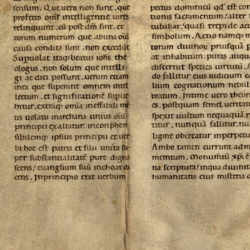 1rA-vB Giovanni Scoto, Homilia in prologum Evangelii secundum Iohannis, inc. –ve angelicum non omnino fugiunt; expl. sapientie virtute purissimoque men- (PL 122, 283-285), lacunoso per...