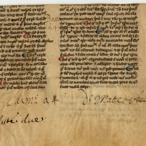 1r-v Biblia sacra. Vetus Testamentum. Macchabei II (2, 10 – 3, 14), inc. –dit ignis de celo et consumpsit; expl. per universam civitatem erat 2r-v...