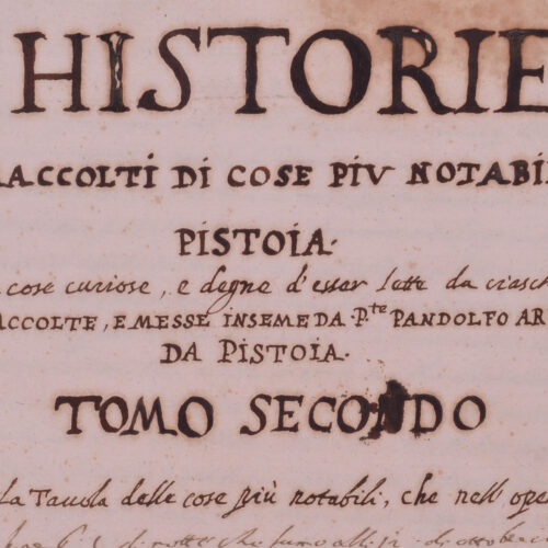 Cart.; 1628; 335 x 231; ff. 222, II’; bianche le pp. II-IV, VI; doppia paginazione coeva (1-420 con ripetizione del nr. 143, 1-17) a penna...
