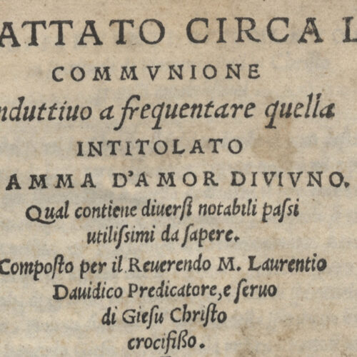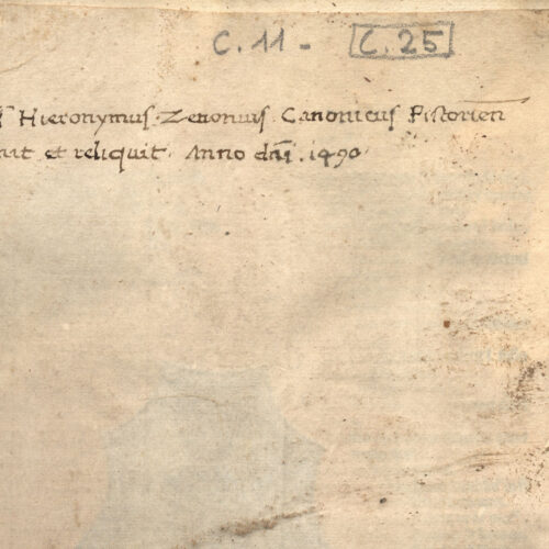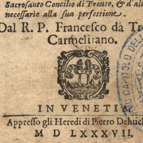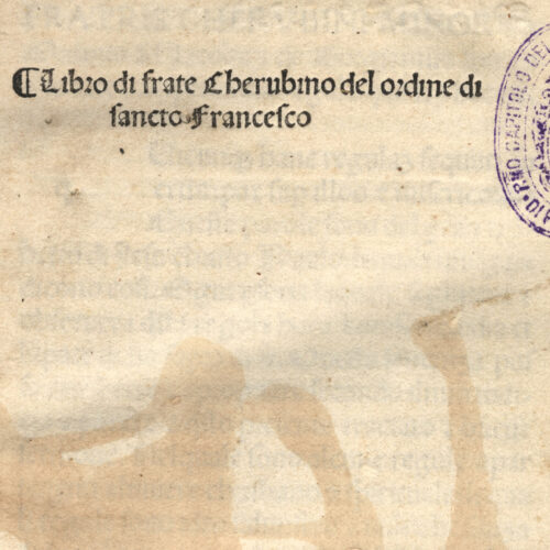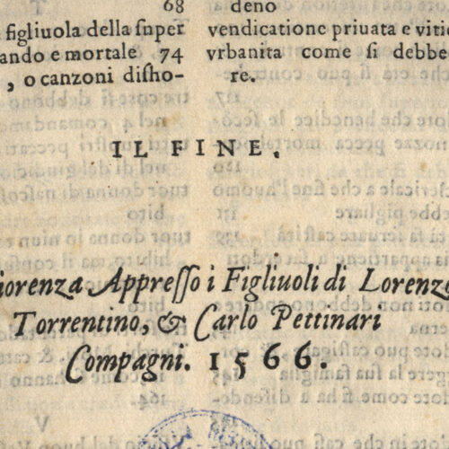 Esemplare completo. Il volume presenta una segnatura recente di un provvisorio ordinamento: C.4 (f. Ir a matita).