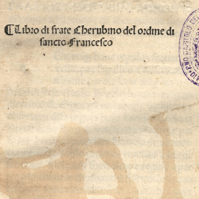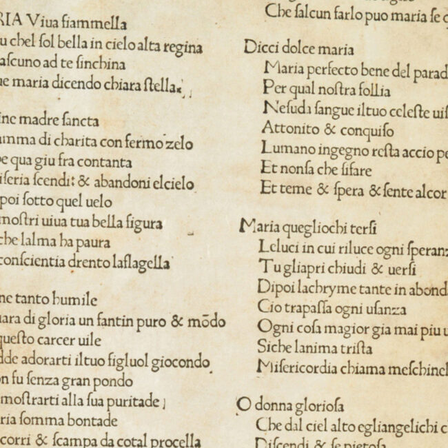 Il manoscritto C.64 presenta, incollato sul piatto posteriore, un foglio a stampa che reca la Lauda di Sancta Maria della Carcere. La stampa presenta lo...