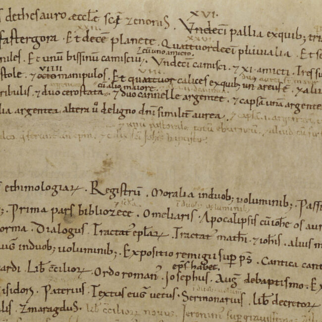 Il Breve recordationis de thesauro aecclesiae Sancti Zenonis, un inventario di beni, comprensivo dei libri, fu trascritto sull’ultimo foglio bianco dell’Institutio canonicorum Aquisgranensis, un codice...