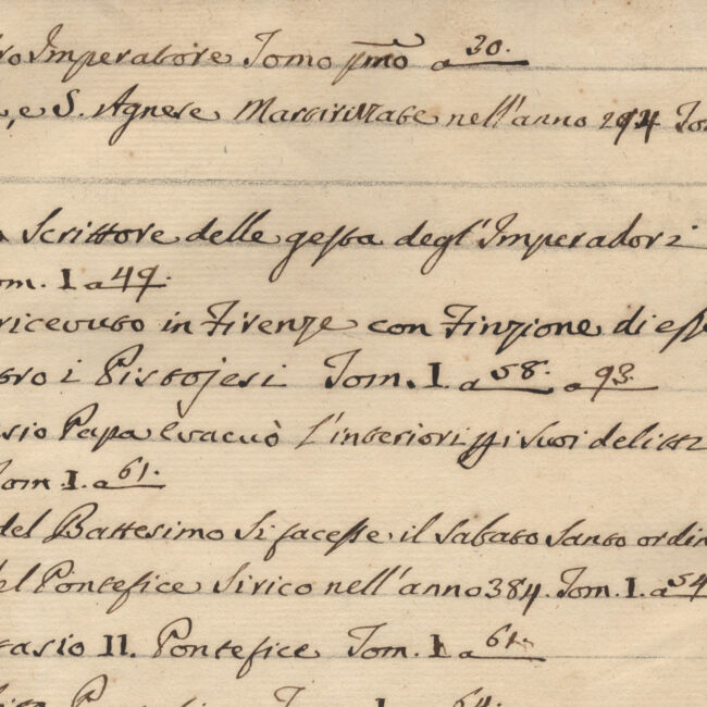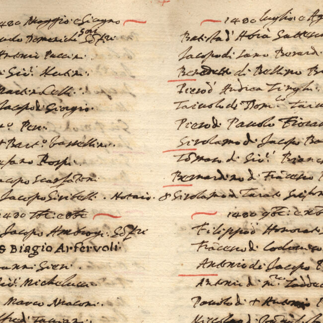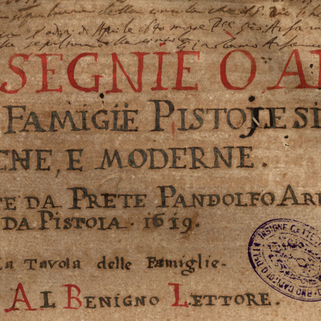 Cart.; 1619; 323 x 220; ff. I, 6, I’; numerazione recente in basso a sinistra 1-6. Legatura moderna in cartone. ff. 1r-6v, Indice delle famiglie...