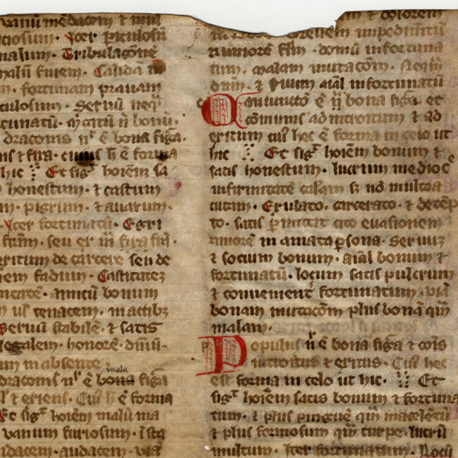 f. 1rA-vB Liber geomantiae, inc. et alienis vanum mendacium et multiplicitur viciosum; expl. quasi locus sine multa virtute Membr. ; 1 foglio; 288 × 213...