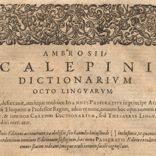 Ambrosii Calepini Dictionarium octoligue, in quo latinis dictionibus hebraeae, graecae, gallicae, italicae, germanicae, hispanicae atque anglicae adjectae sunt. Recensuit, defaecavit auxitque multum Johannes Passeratius …...