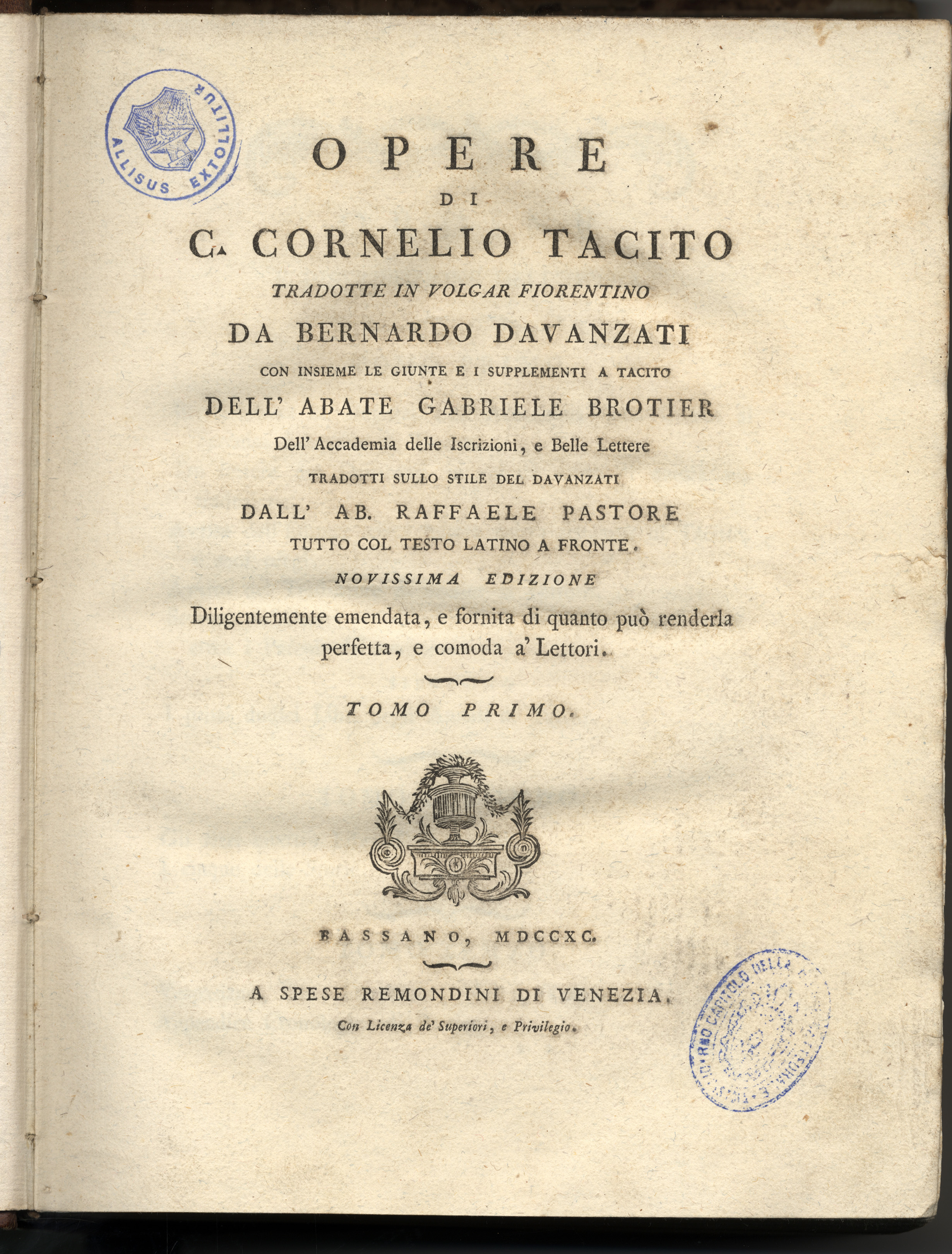 Sotto un’unica legatura sono uniti i tre volumi che formano l’opera.