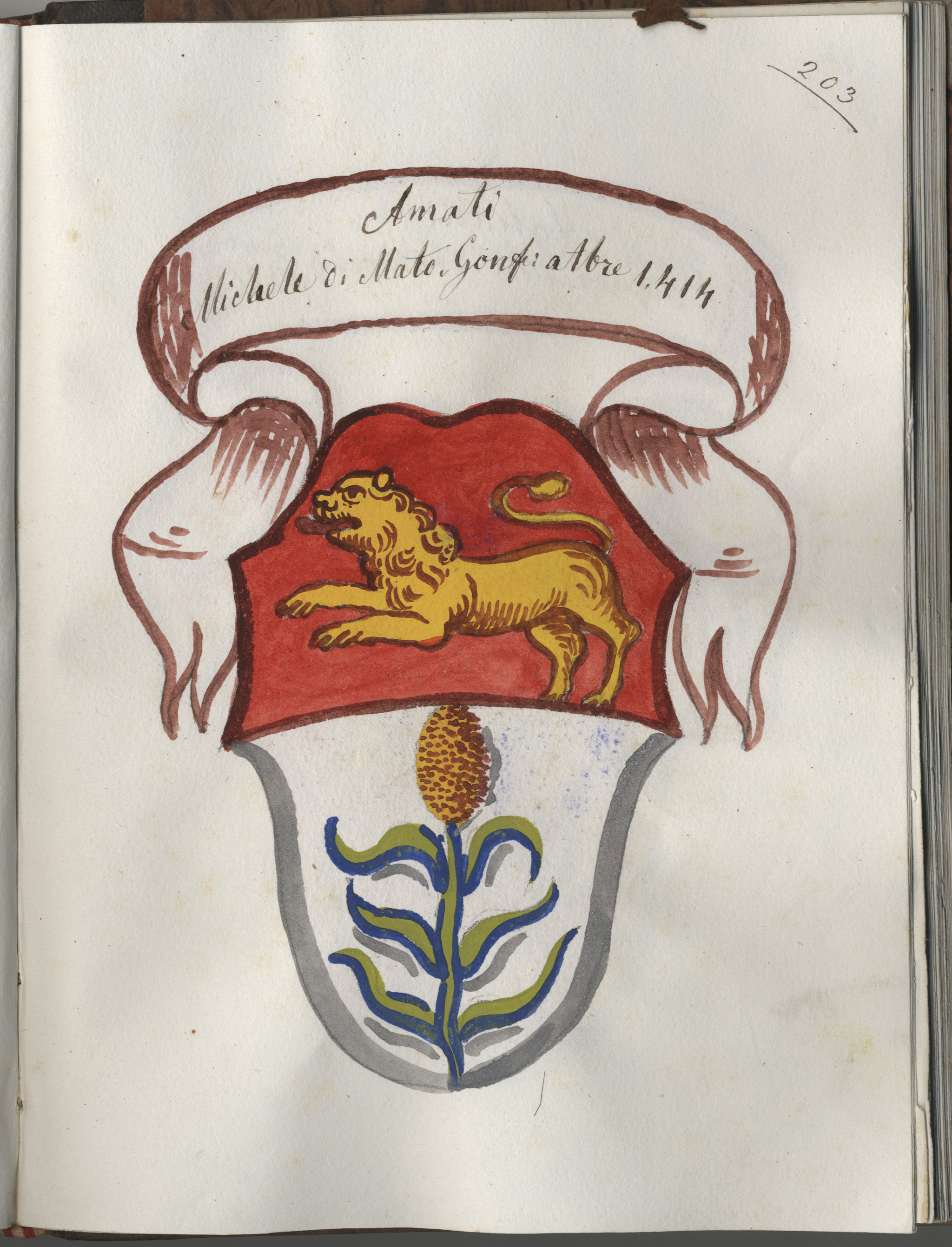 Al f. Ir: N° 272 stemmi di famiglie antiche e moderne di Pistoia raccolti dal Canonico Tommaso Tesi.