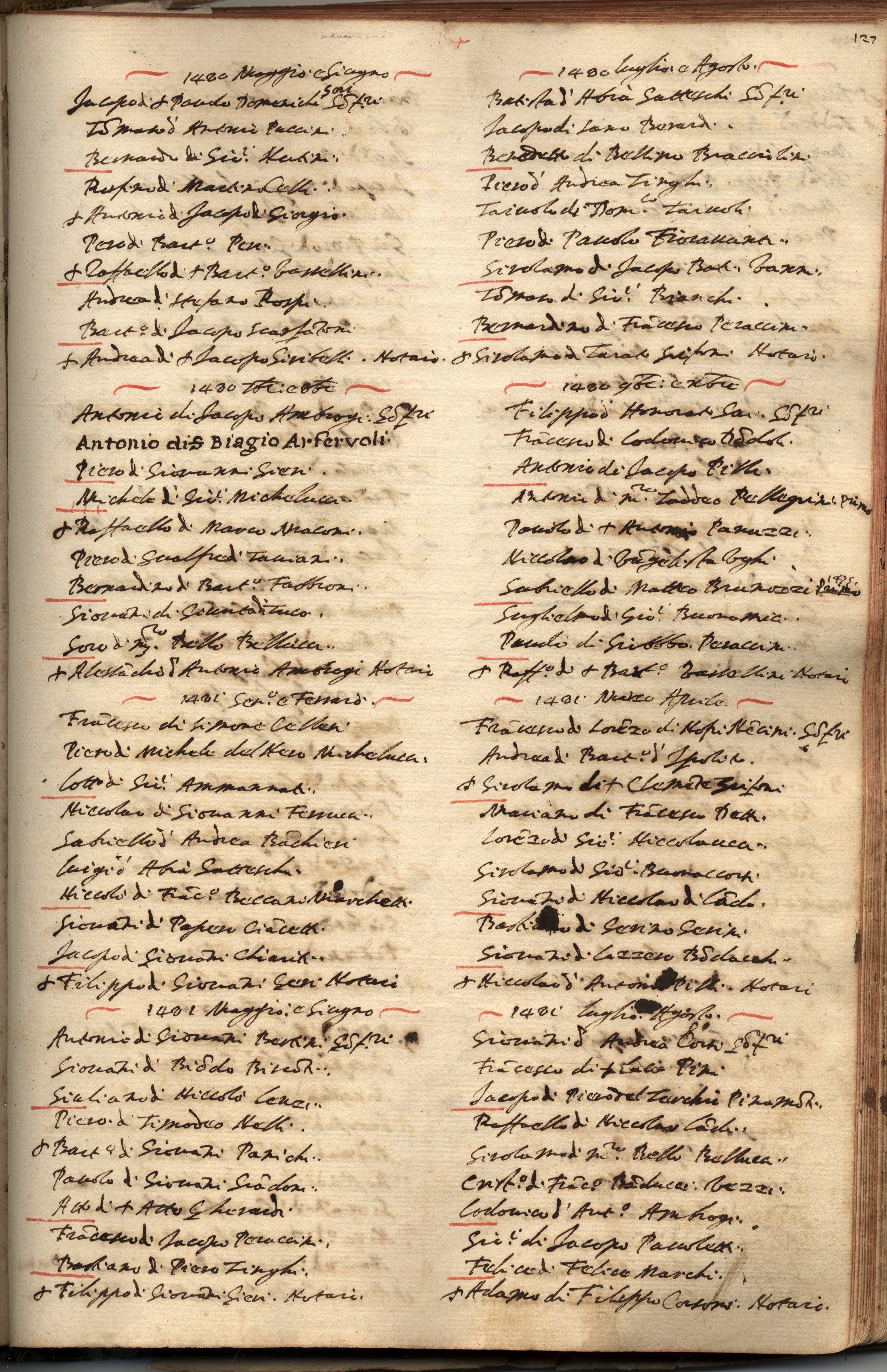 Al f. 361v: Cognomi doppi di molte famiglie di Pistoia cavate di questo libro.