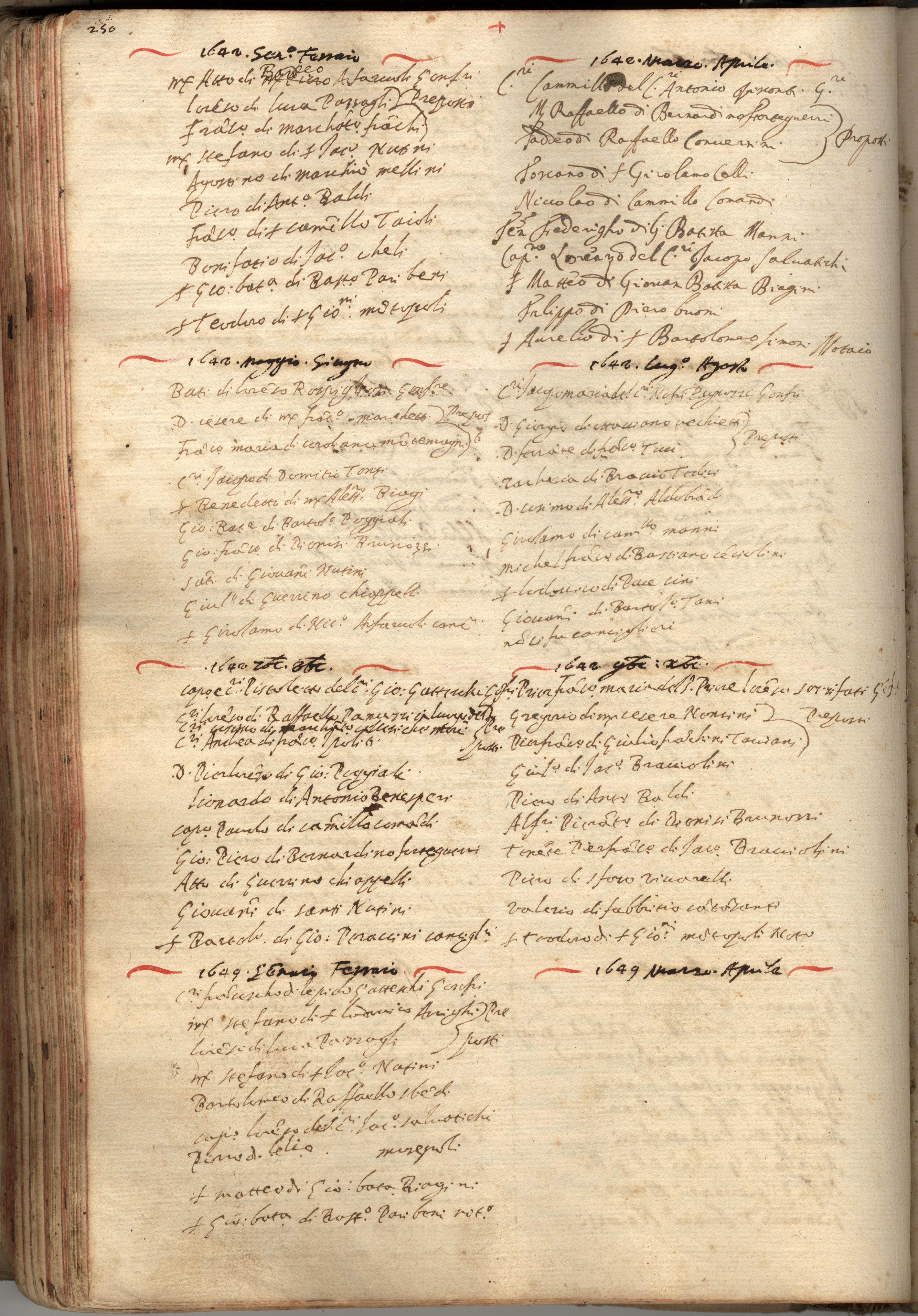 pp. 242-250, Girolamo Arferuoli, Continuazione del Priorista di Pandolfo Arferuoli dal 1637 al 1649, seguono a pp. 243-352 gli schemi da riempire con i dati degli anni 1649-1783