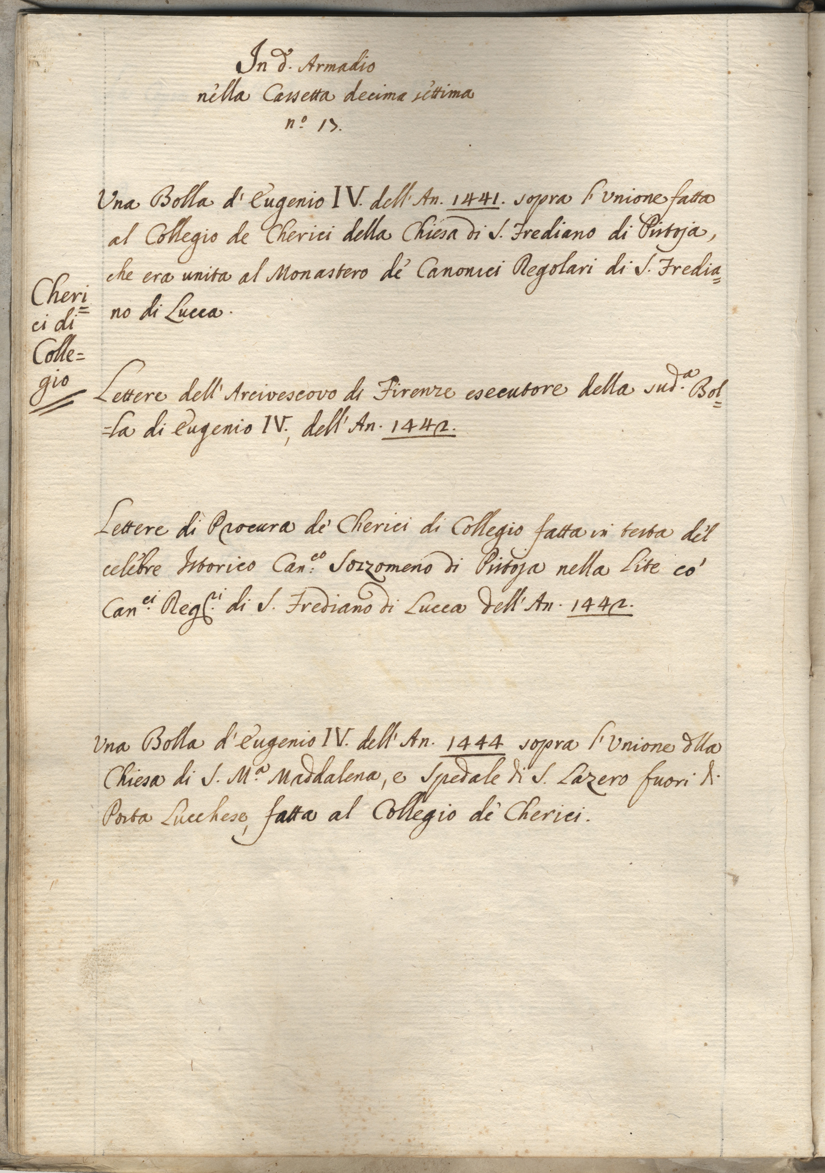L’Archivio Capitolare, ospitato nel complesso monumentale del Duomo di Pistoia, è un istituto di conservazione stratificato e composito, che somma le funzioni di archivio e di biblioteca.