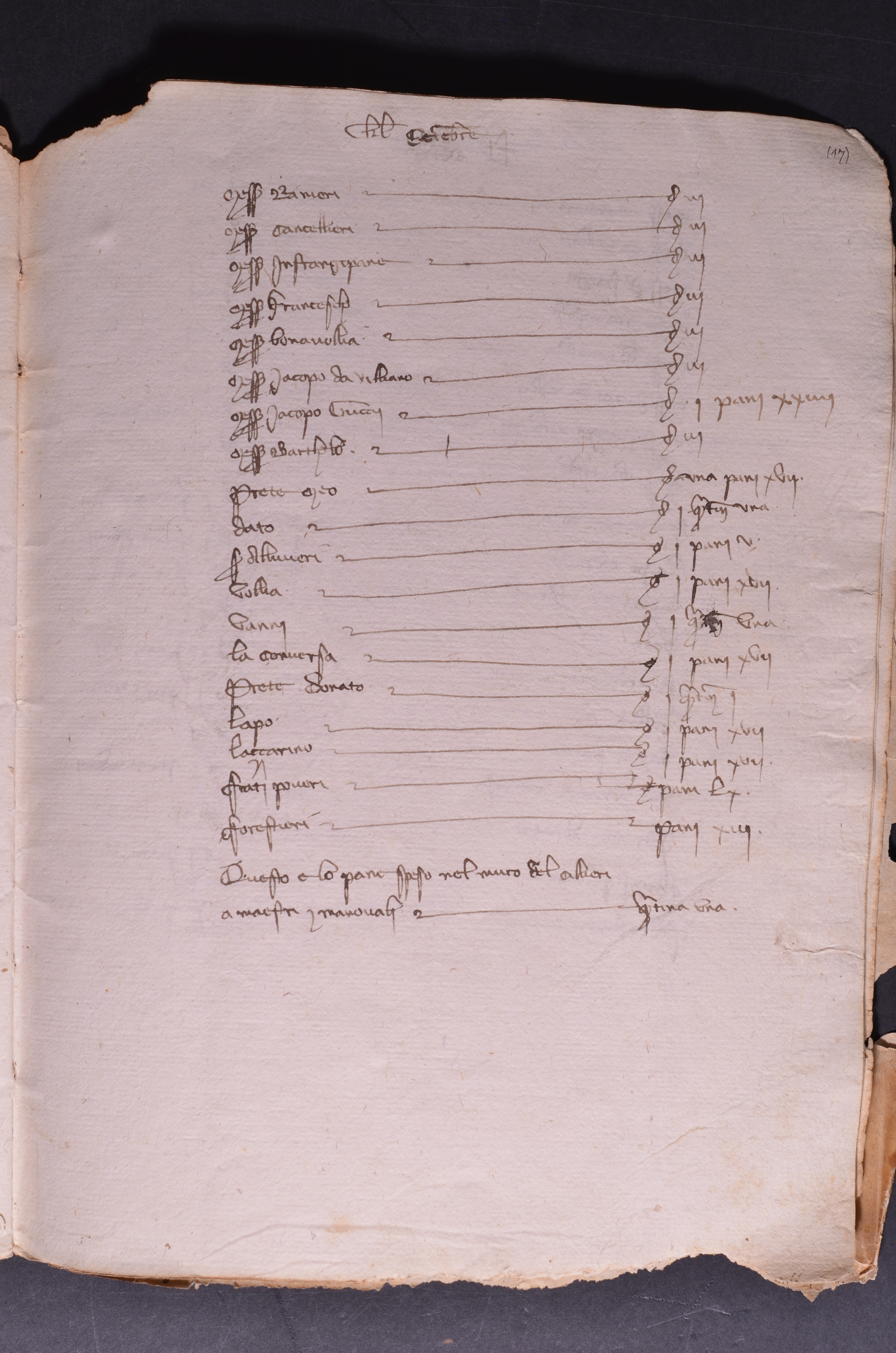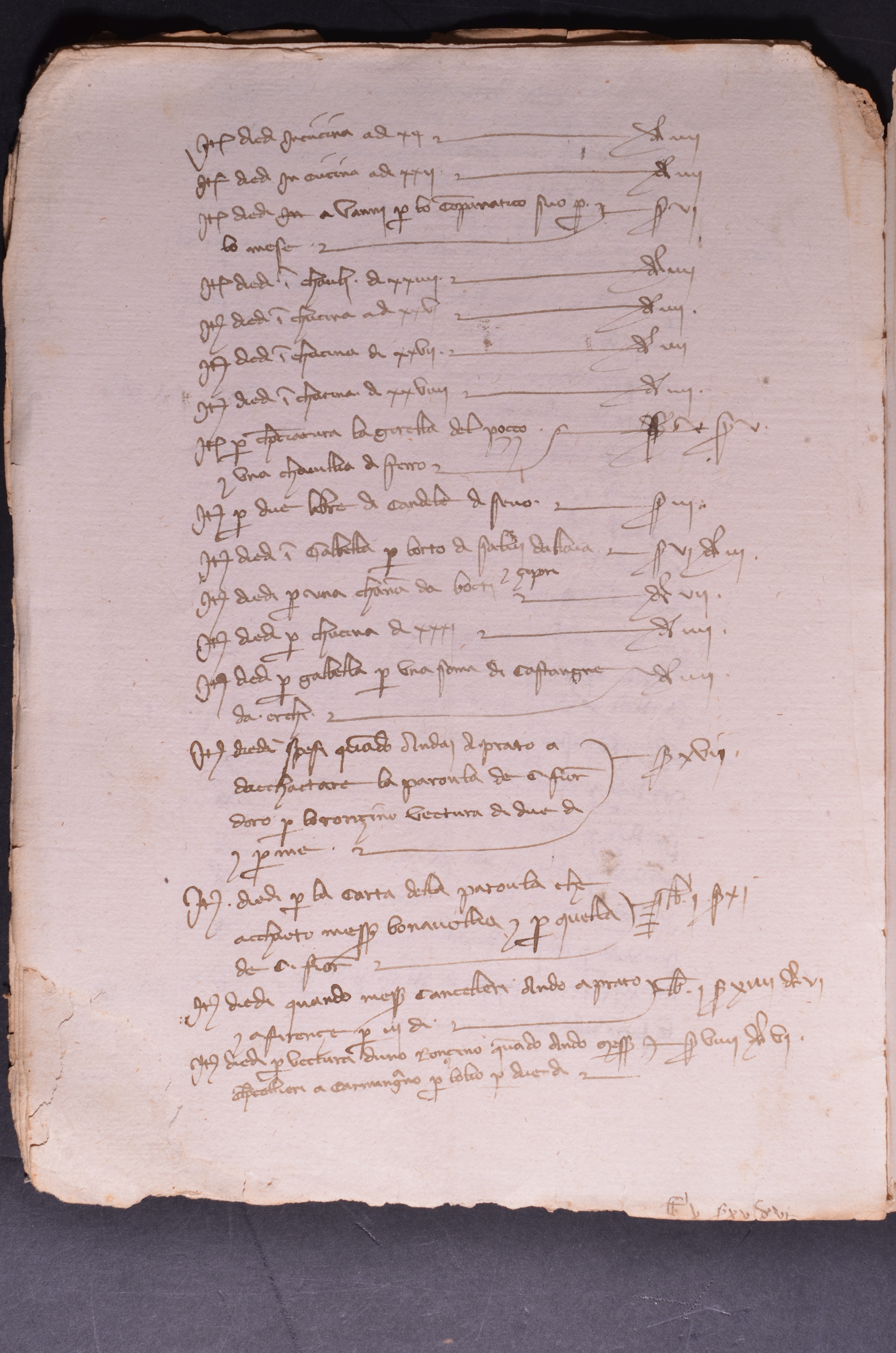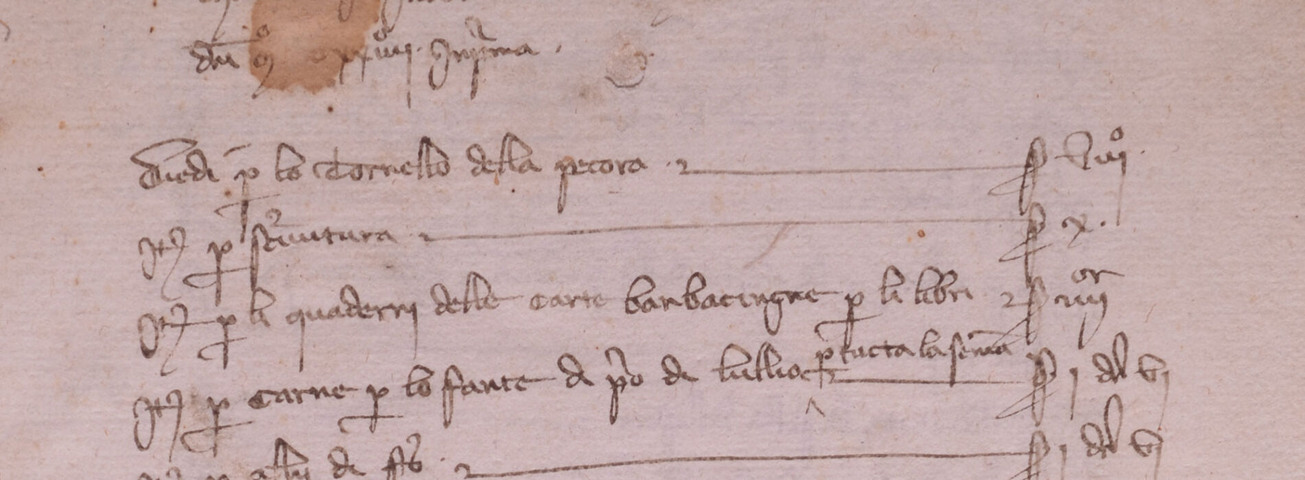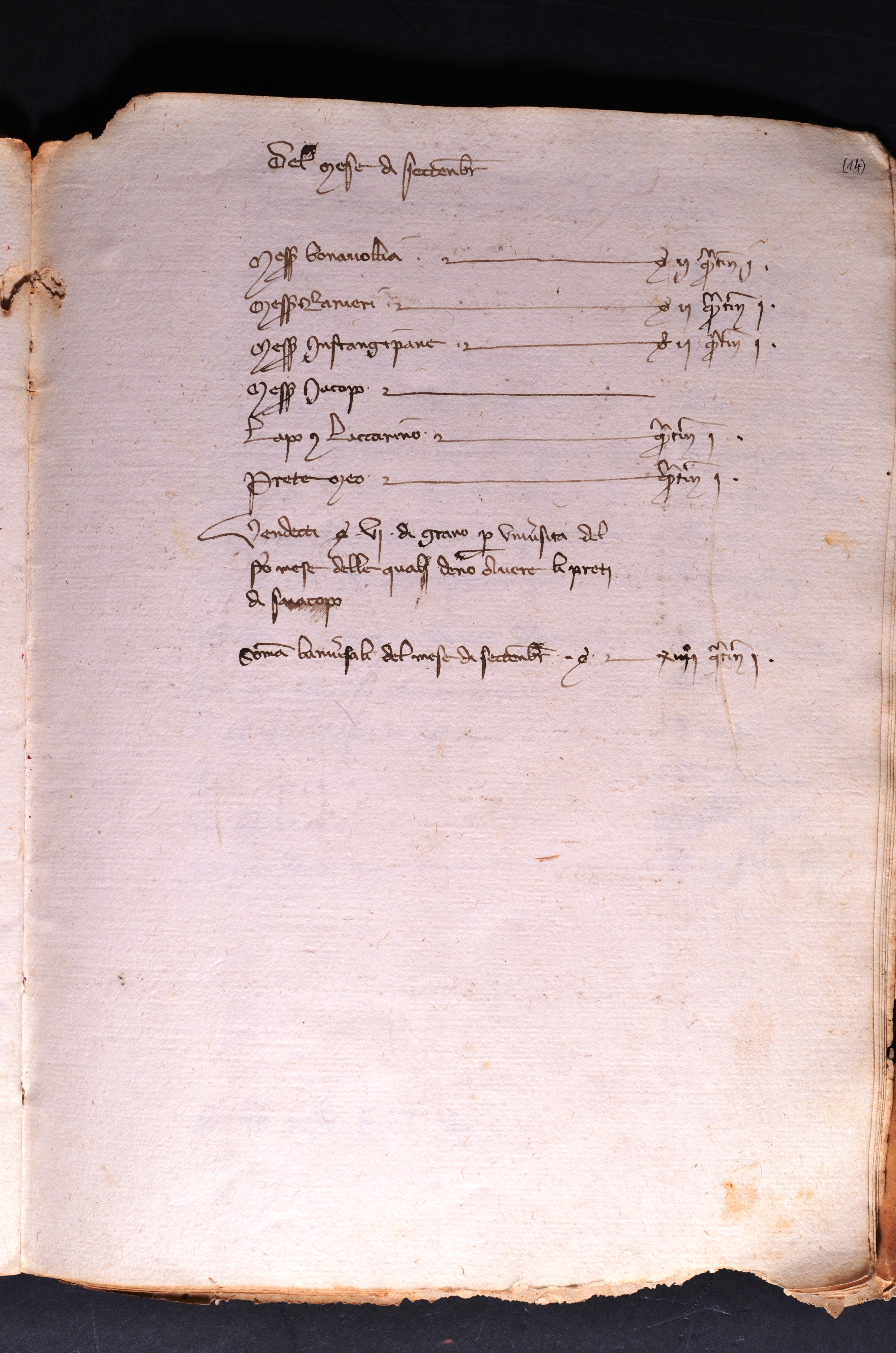 I piatti recano alcune registrazioni contabili coeve. In particolare, all’interno del piatto posteriore si trova una registrazione relativa ad una vendita di buoi.