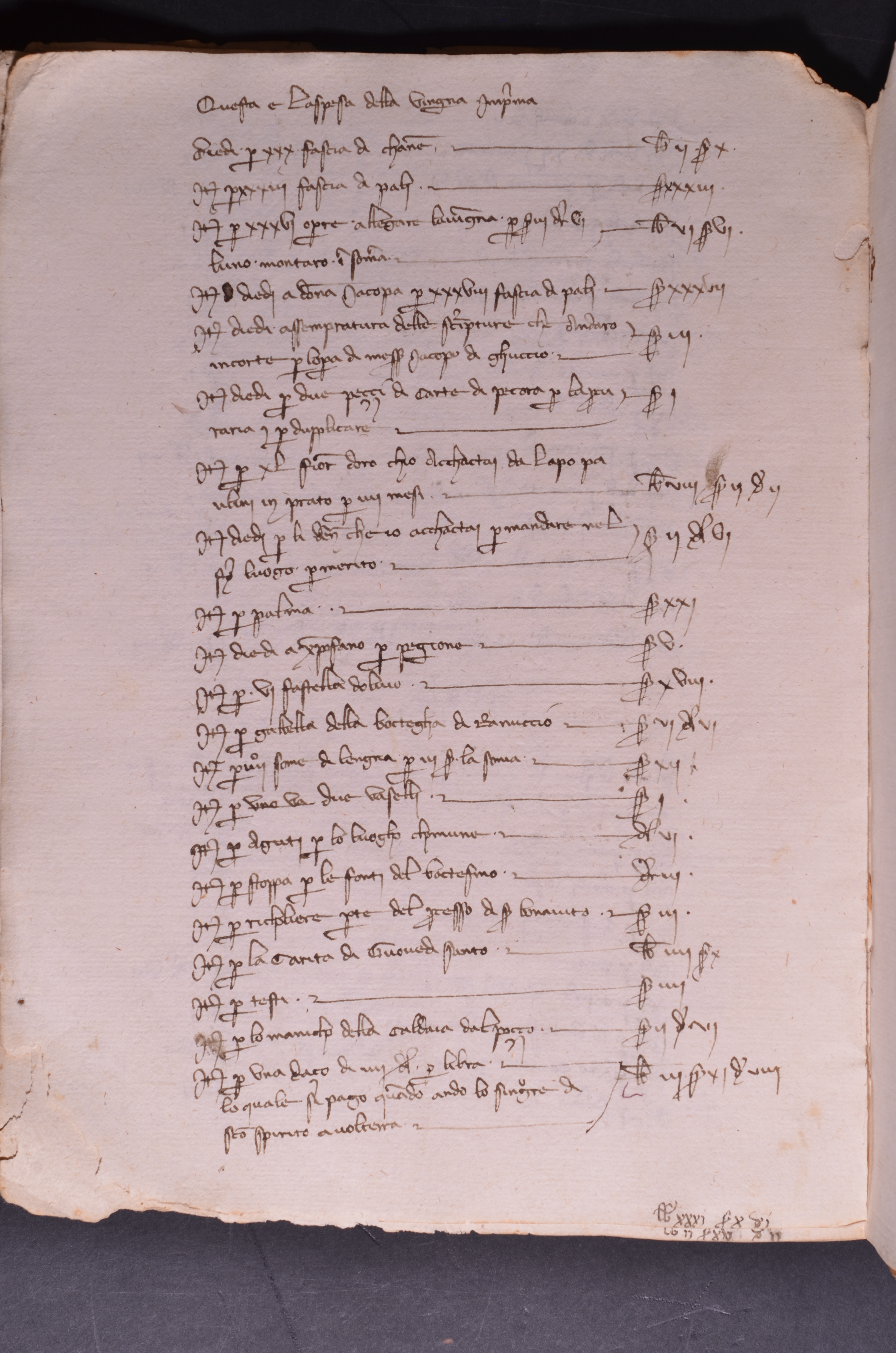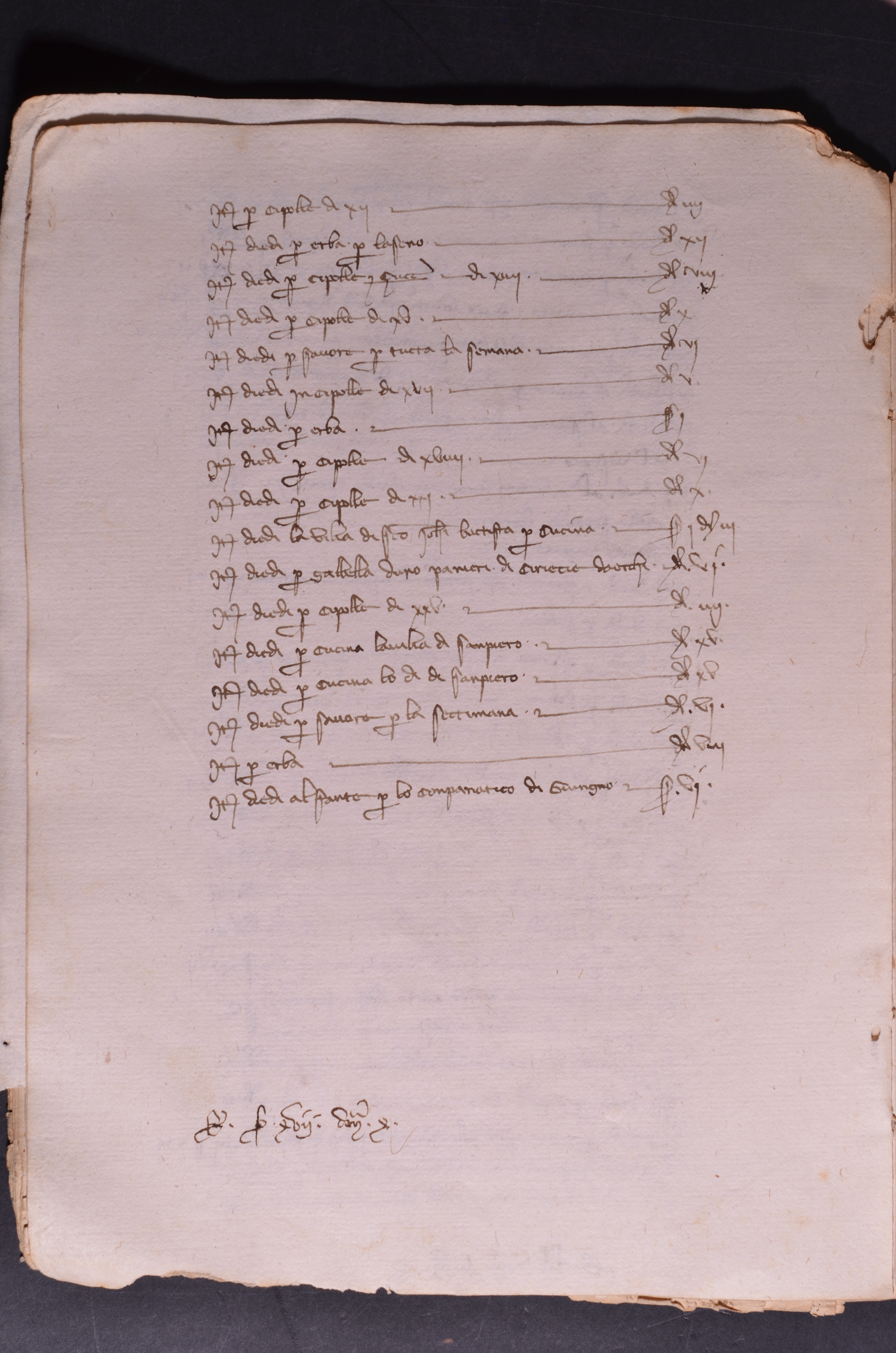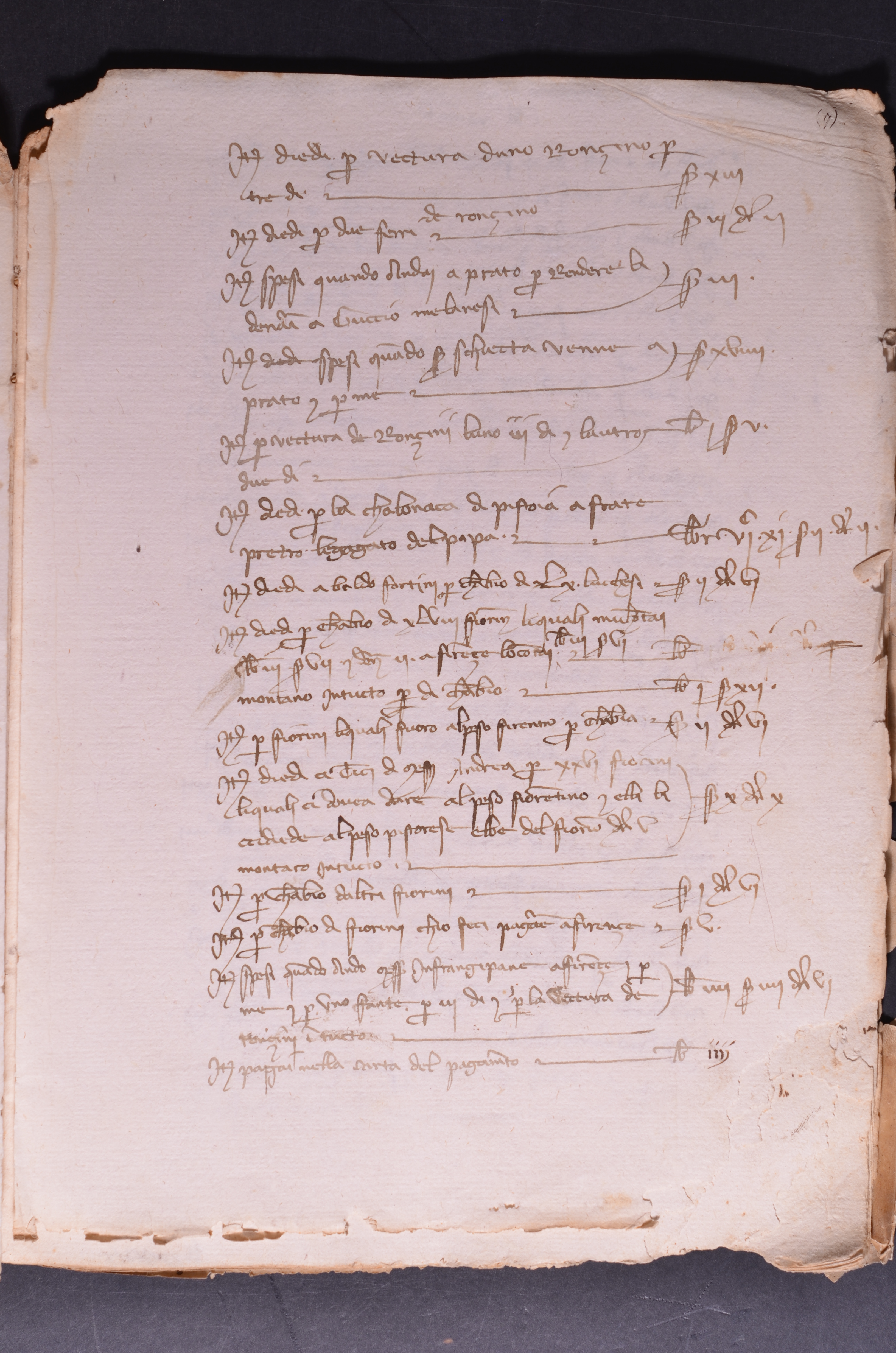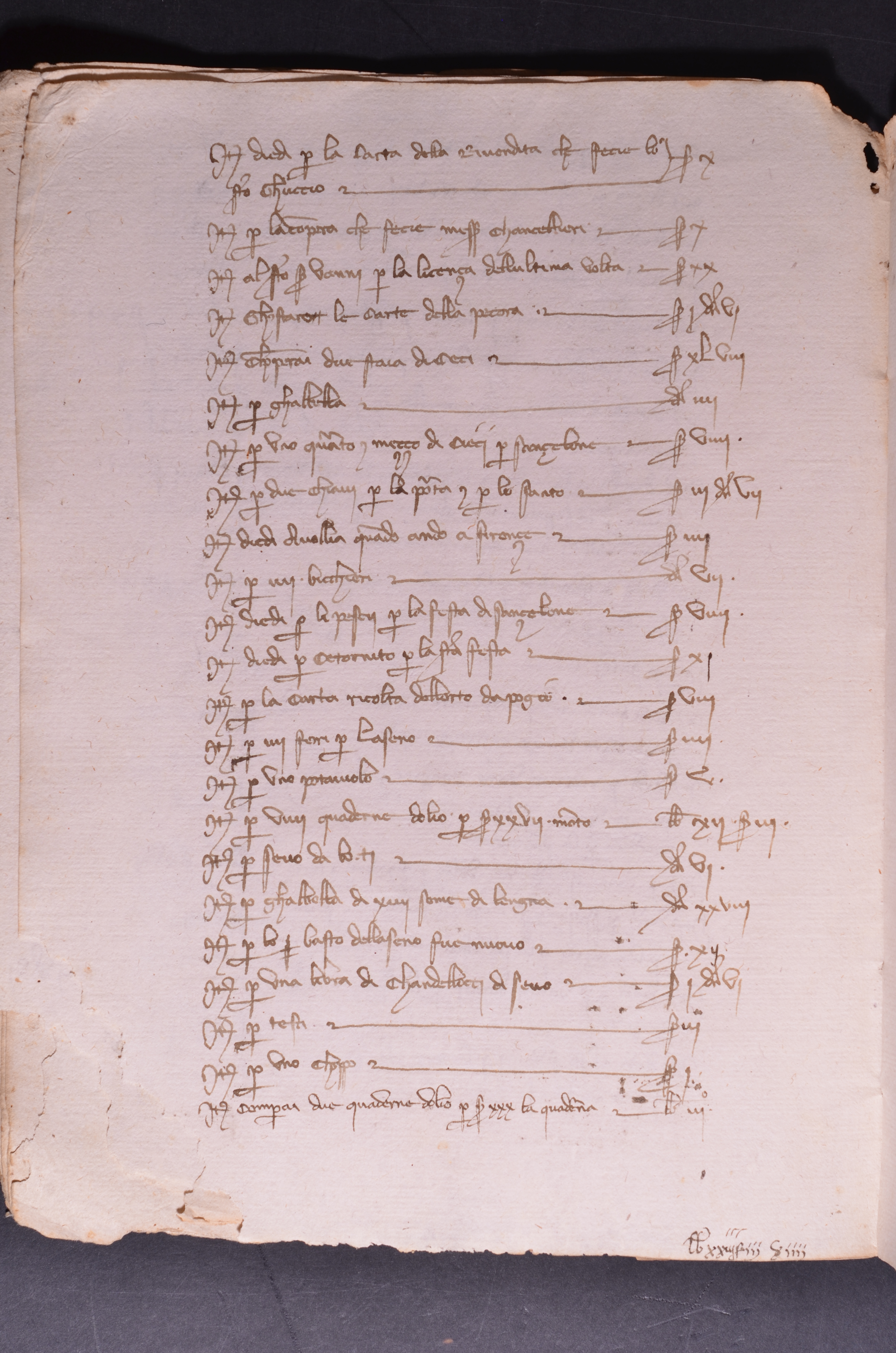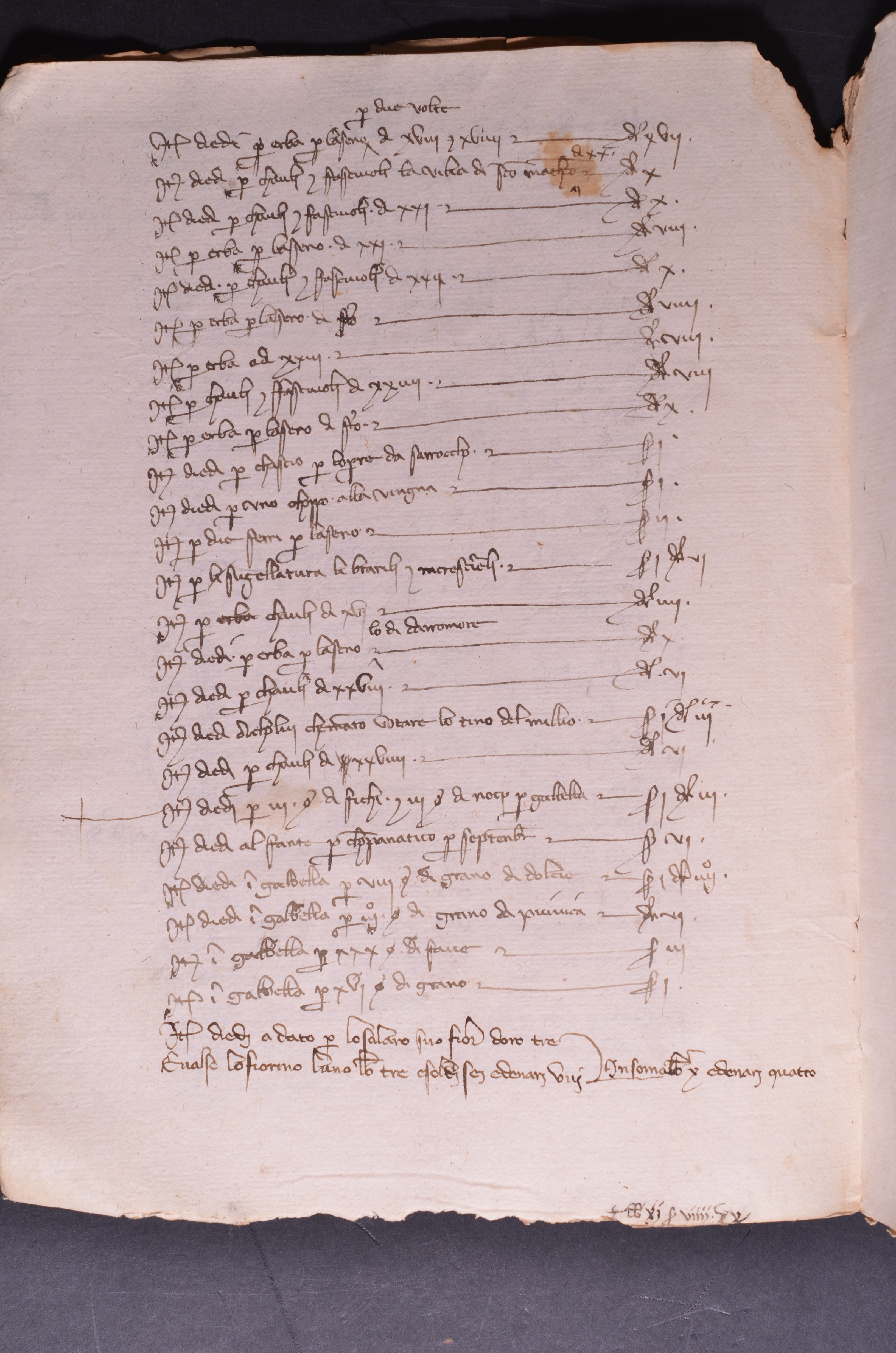 I piatti recano alcune registrazioni contabili coeve. In particolare, all’interno del piatto posteriore si trova una registrazione relativa ad una vendita di buoi.