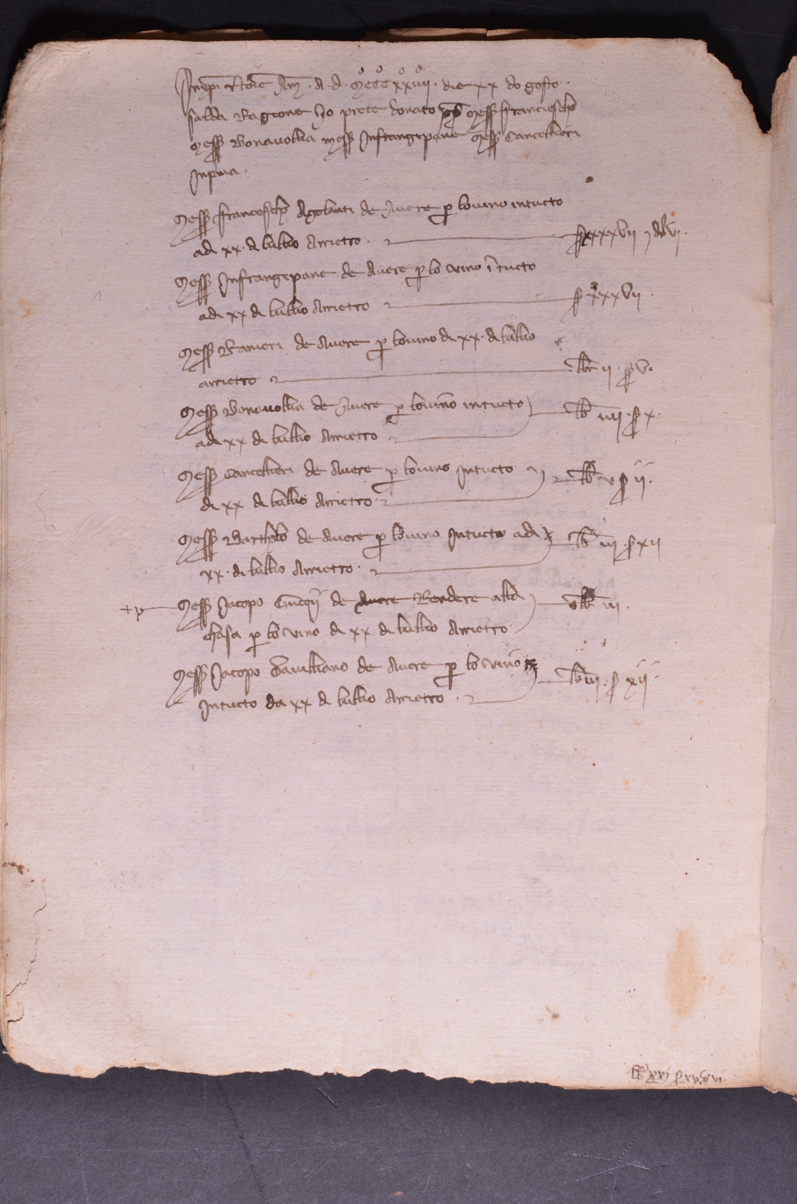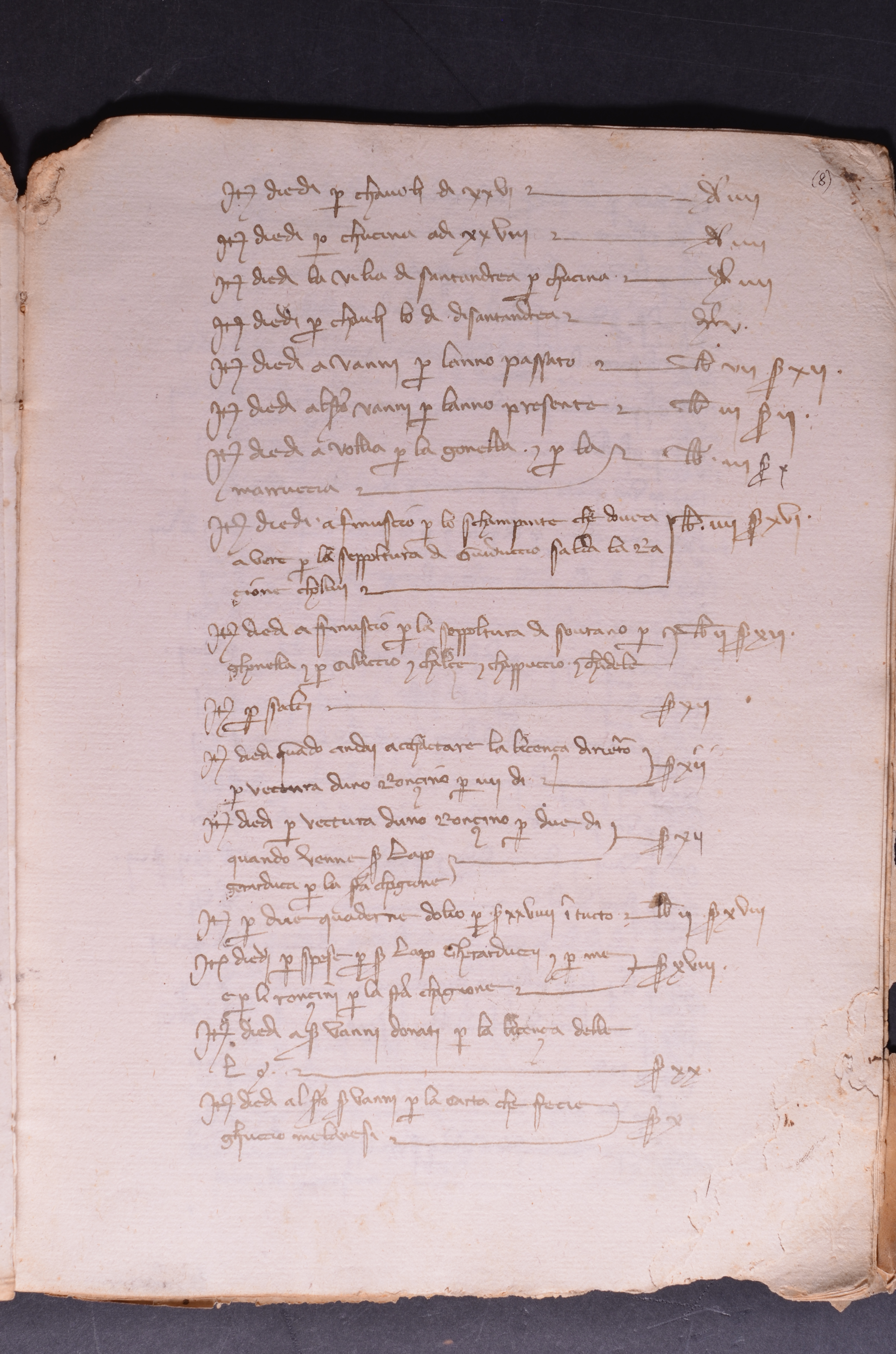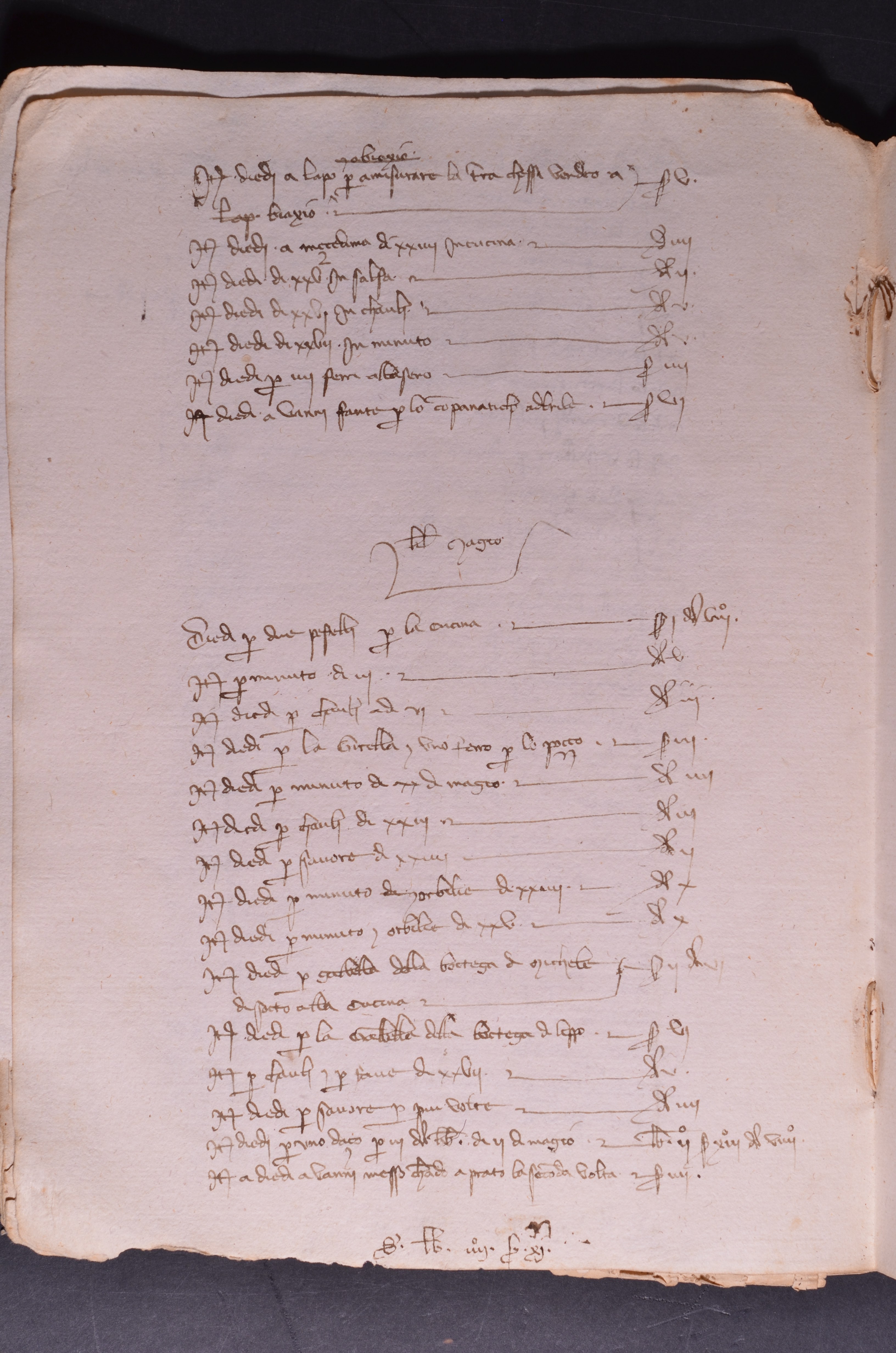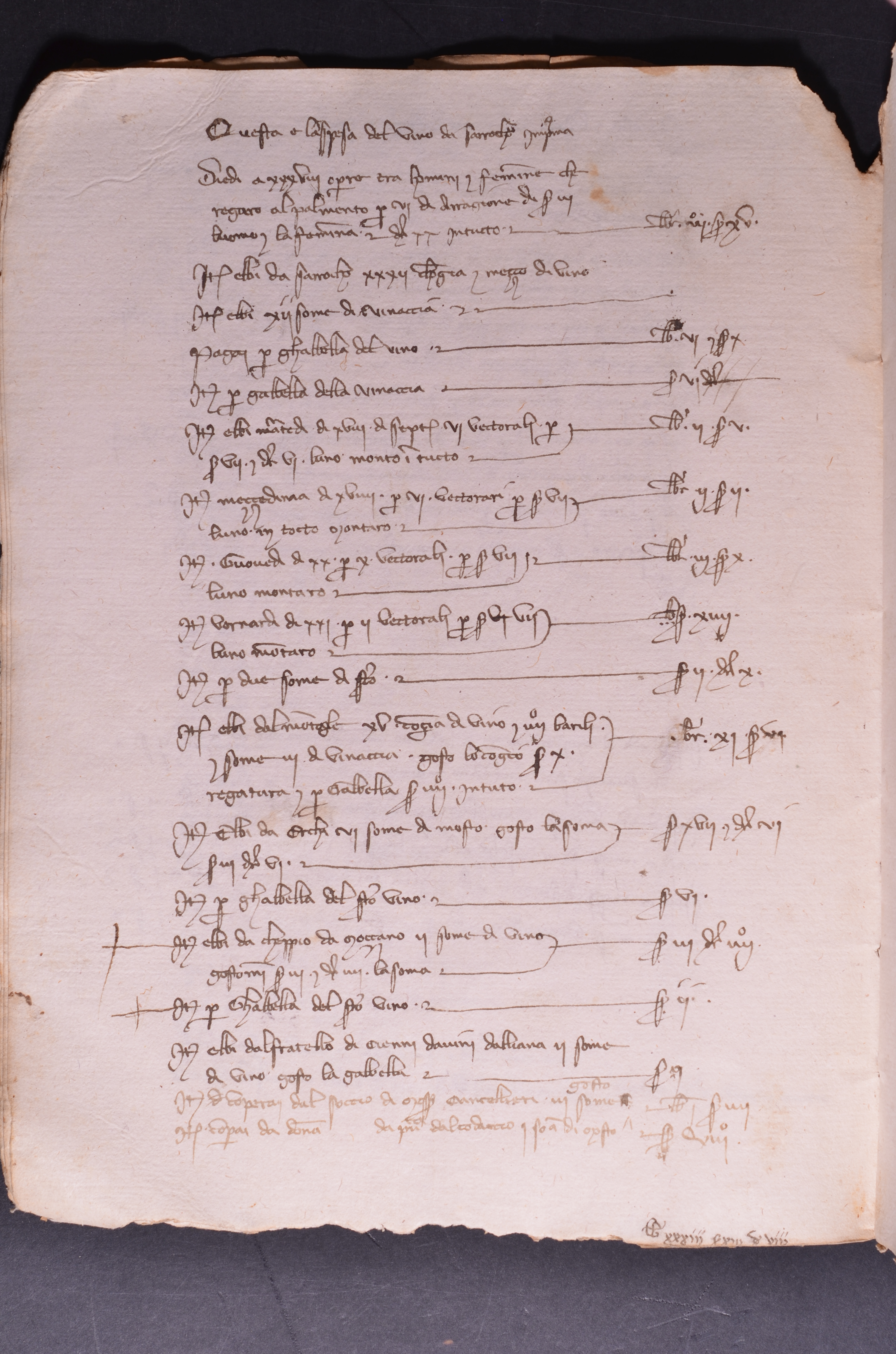 I piatti recano alcune registrazioni contabili coeve. In particolare, all’interno del piatto posteriore si trova una registrazione relativa ad una vendita di buoi.