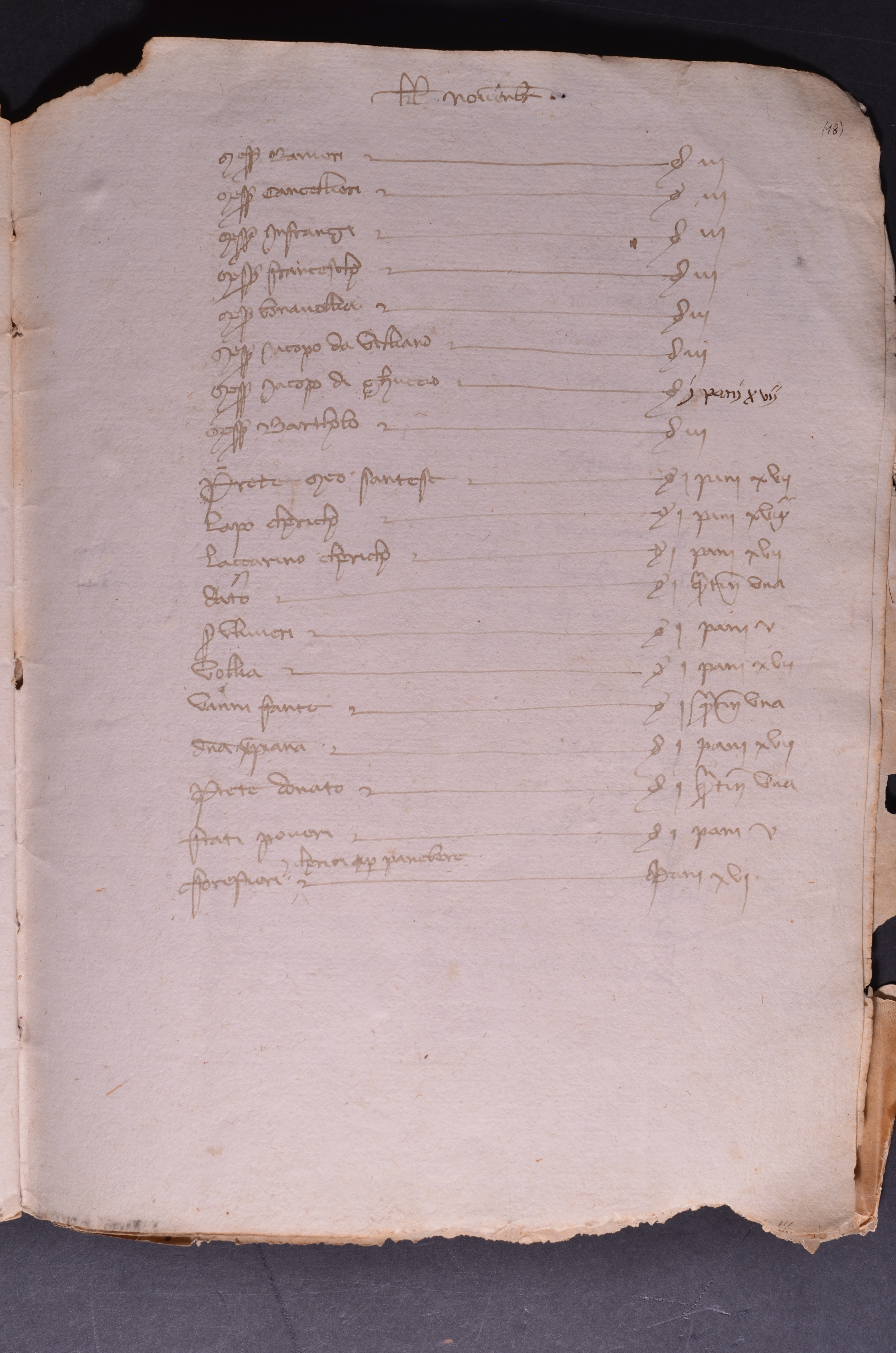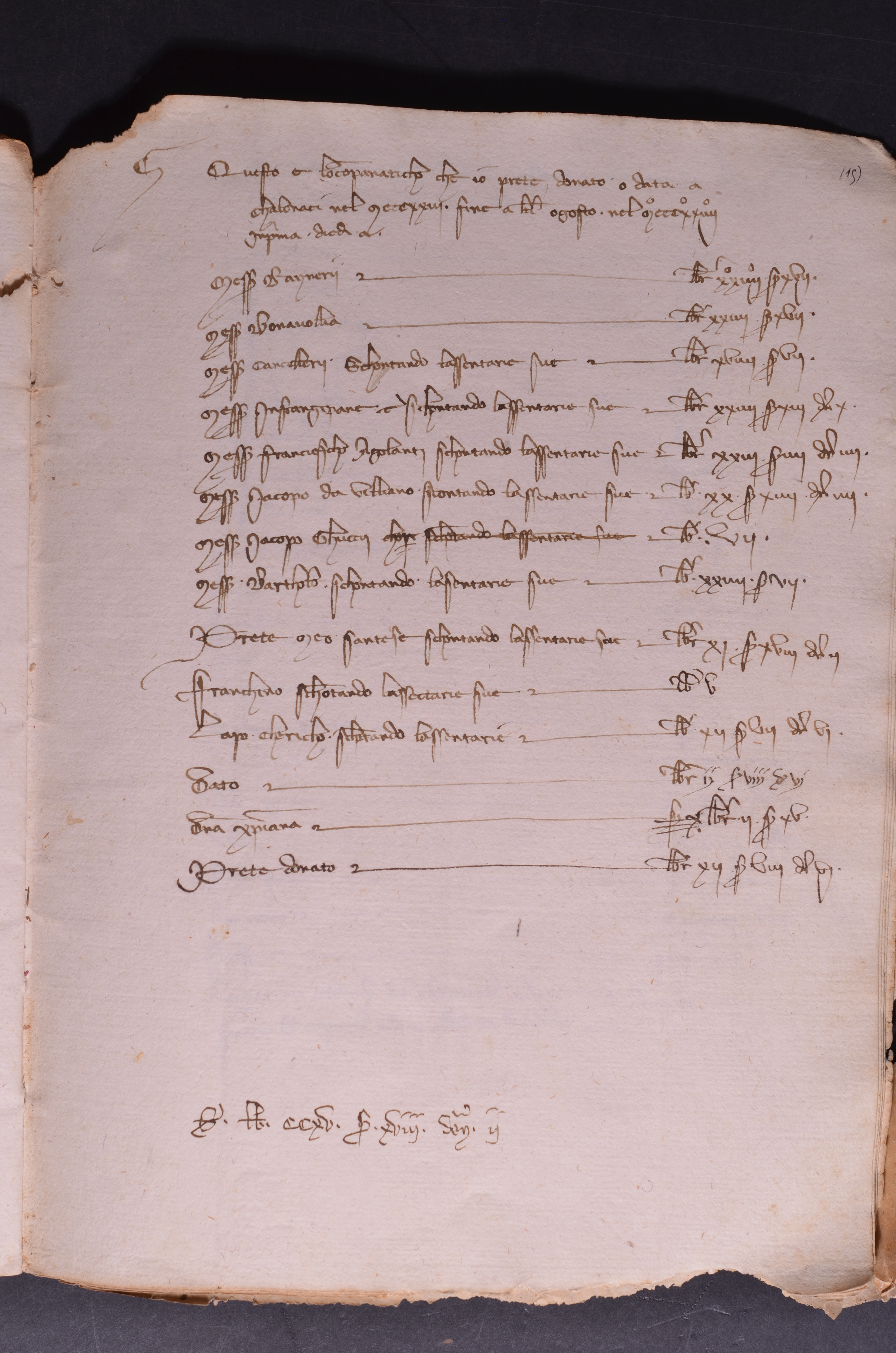 Reg. cart. di mm 318×244, di cc. 19 (numerazione recente); tracce di fogli asportati dopo le