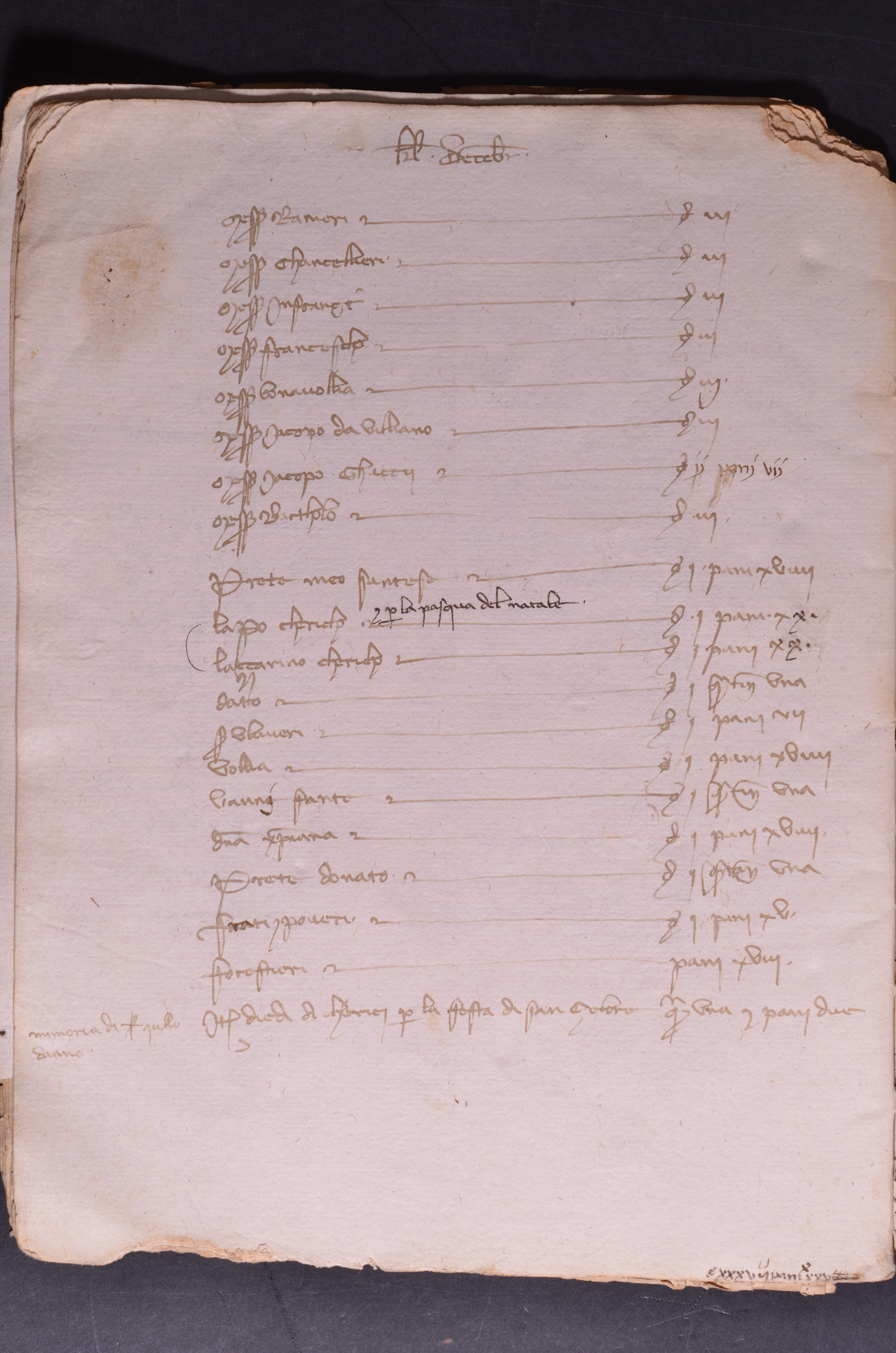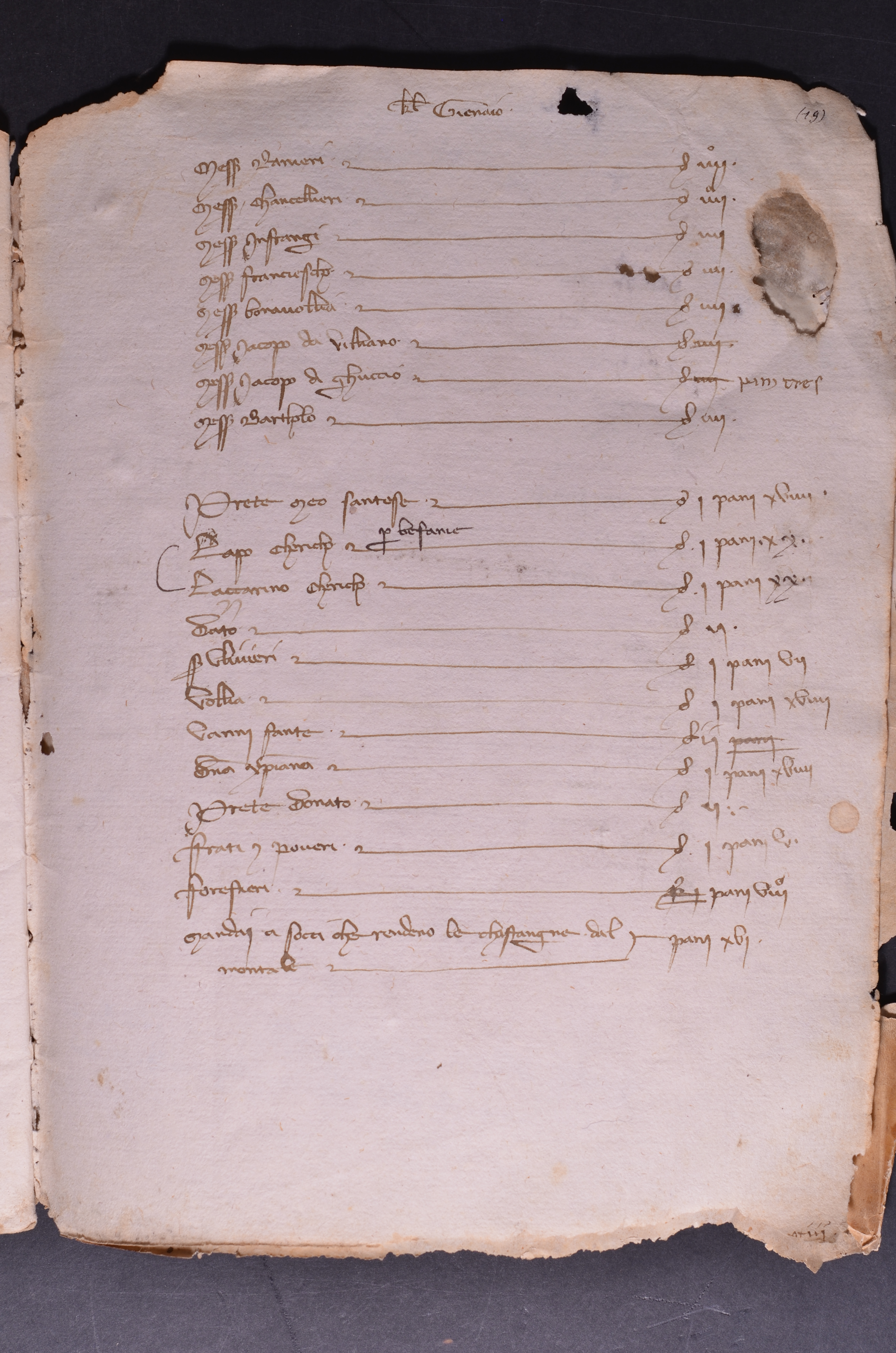 Contiene le uscite dal 1 luglio 1324 al giugno 1325 e le registrazioni relative agli annuali, al companatico ed al pane distribuiti ai canonici dall’agosto 1323 al settembre 1324. Le registrazioni furono effettuate dal camerlengo Donato.