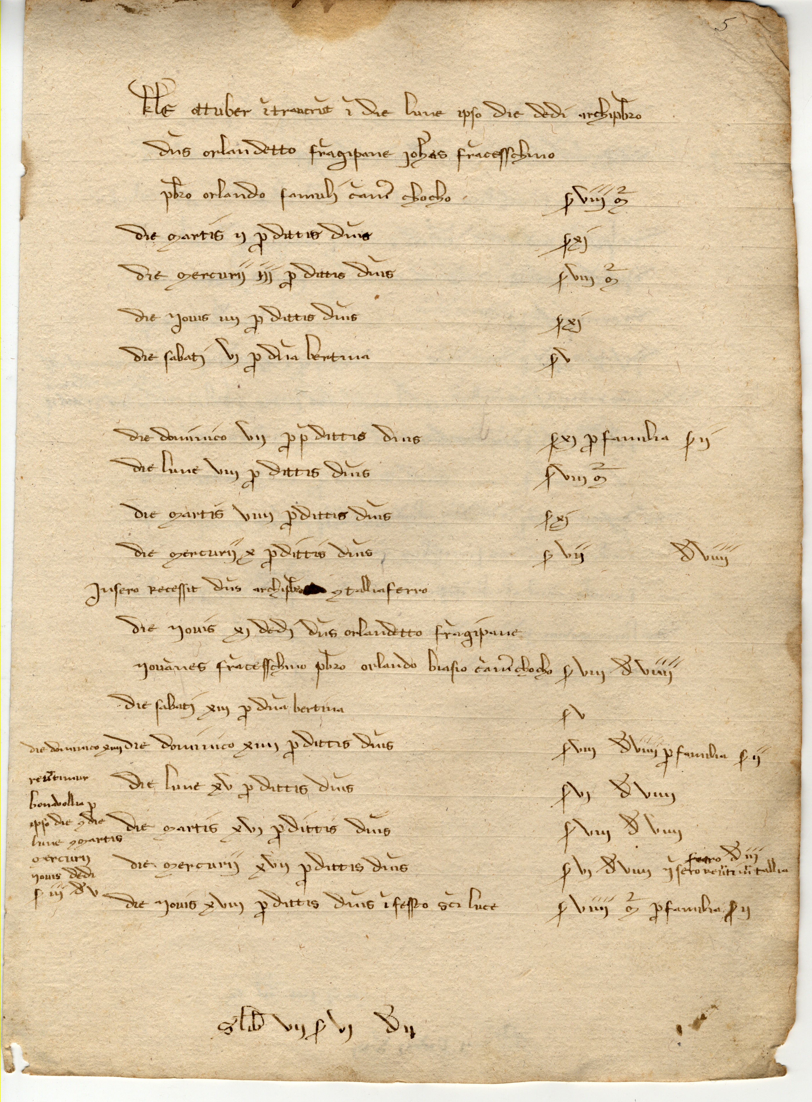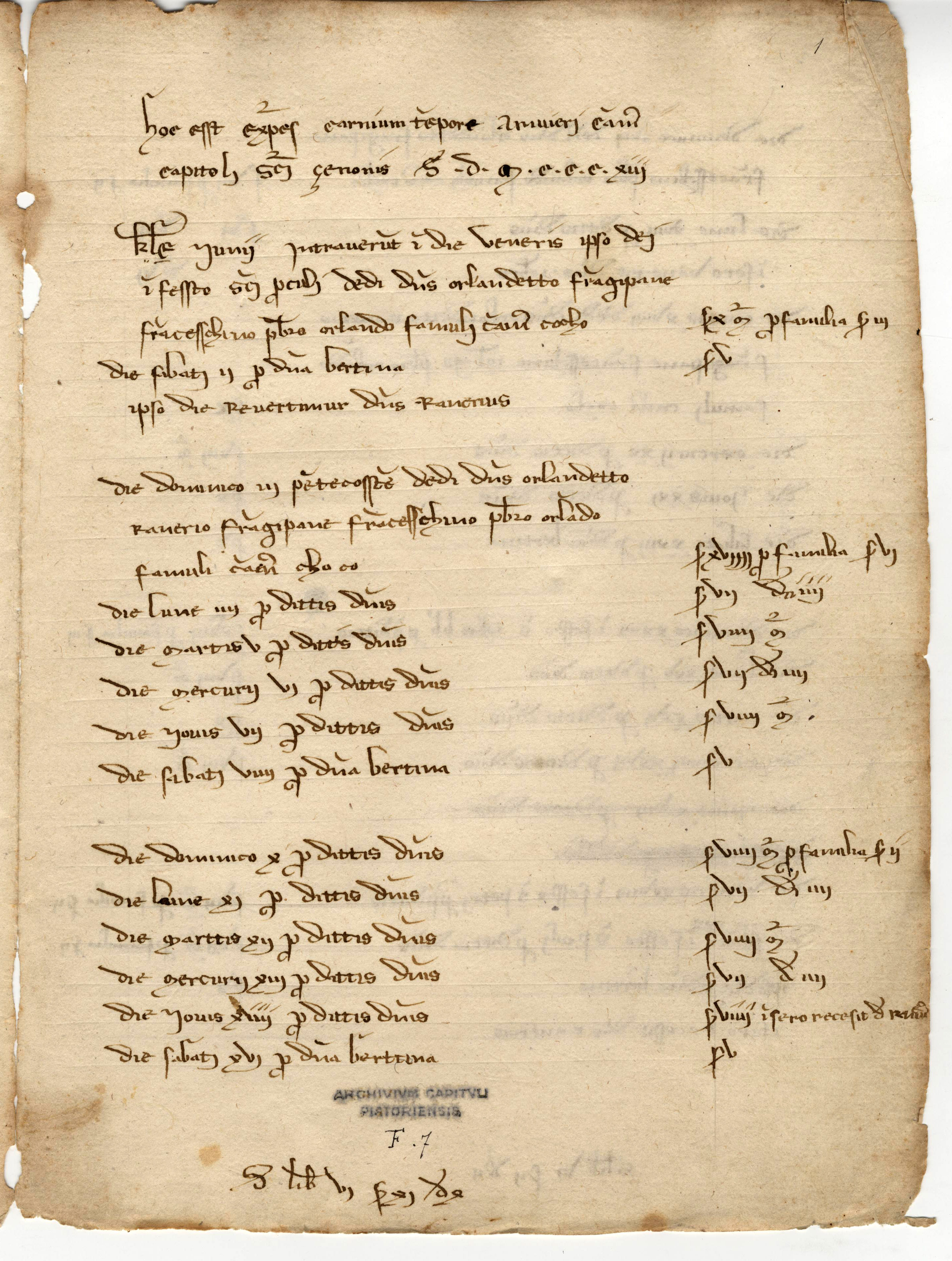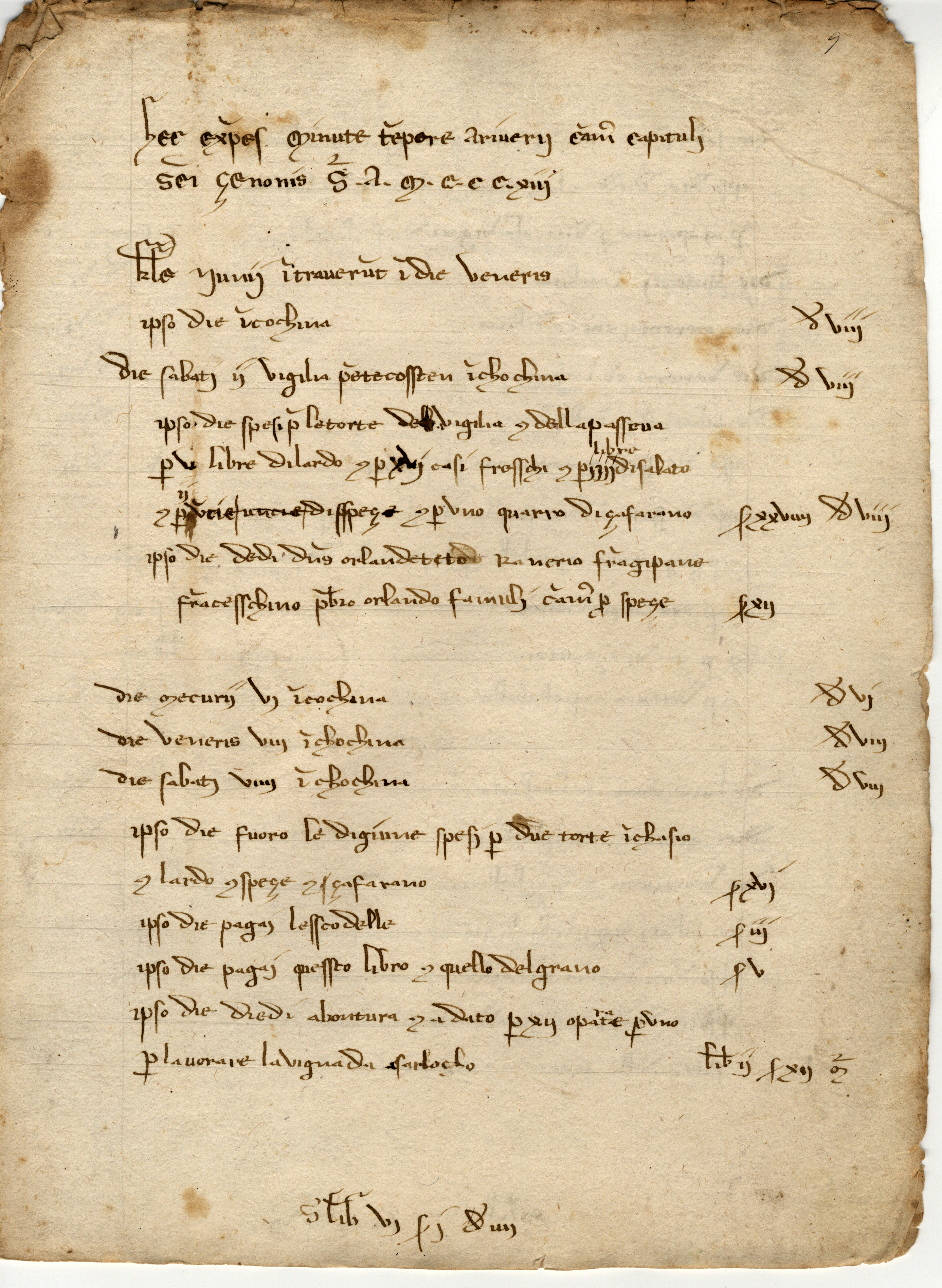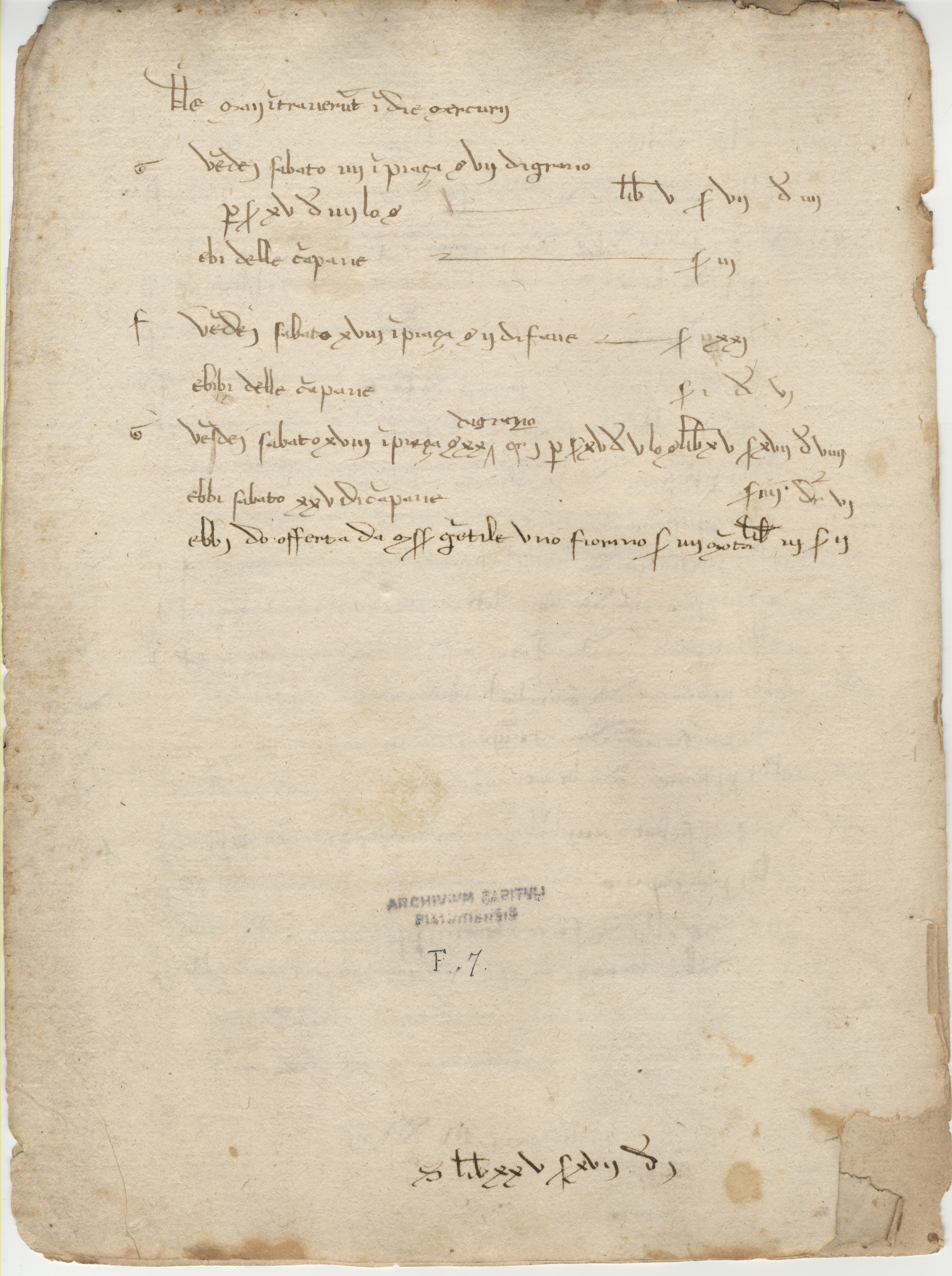 ed altre entrate ed uscite registrate dal camerlengo Ariviero.
