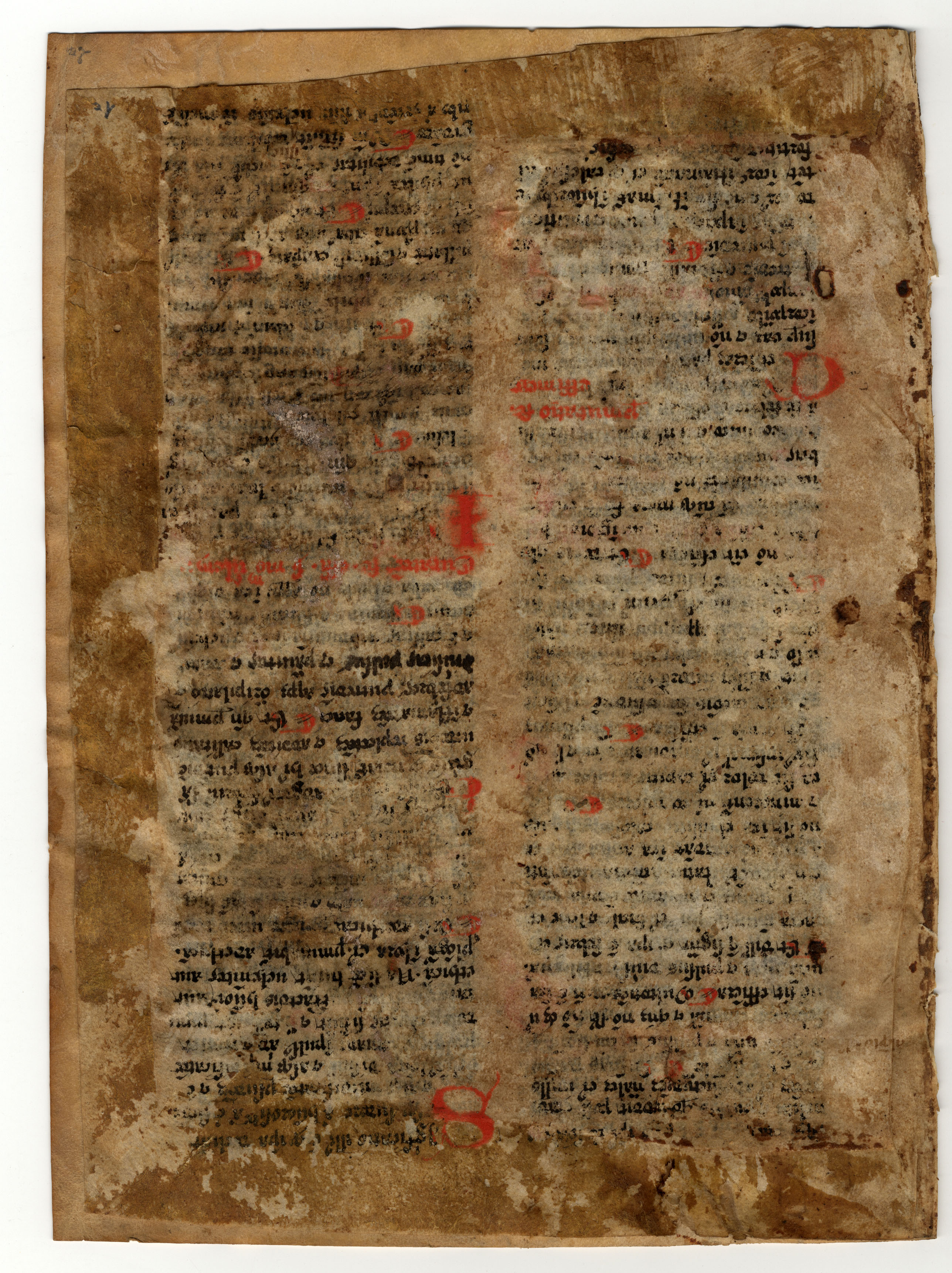Il testo del f. 1r non è restituibile a causa del deterioramento causato dalla colla.