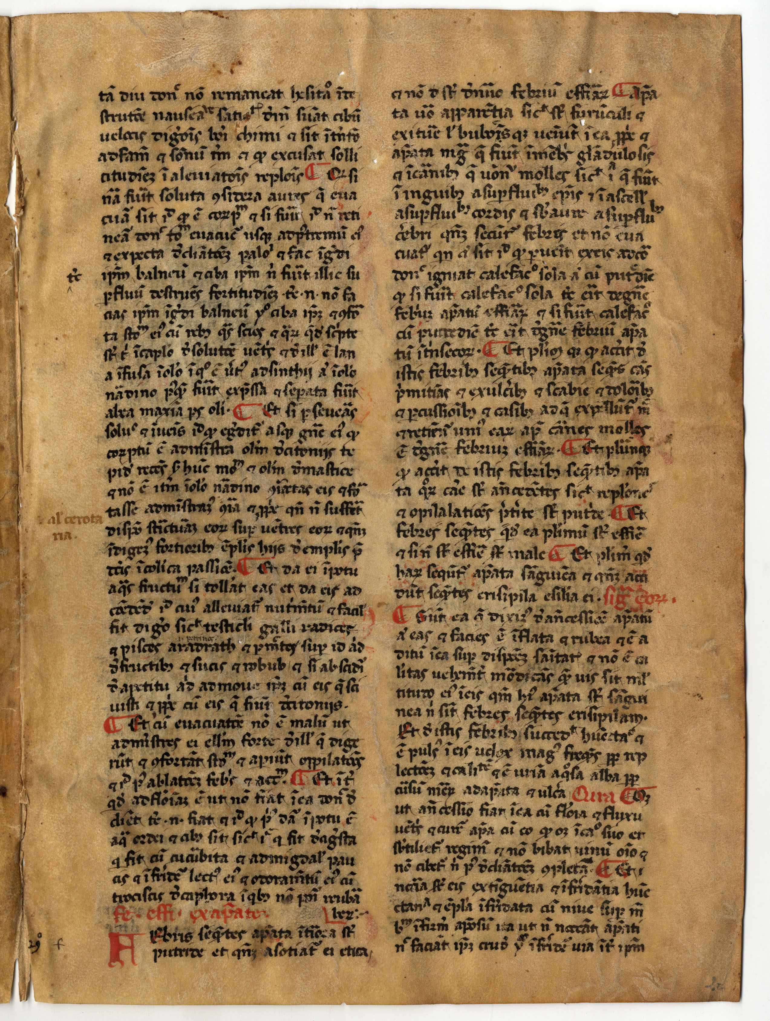 f. 2rA-vB, Avicenna, Canon medicinae, lib. IV, cap. 35-40, inc. tamdiu donec non remaneat in destructione nauseative satietatis; expl. quandoque accidit qui balneantur in aquis stipticitate facientibus sicut super quam vincit virtus