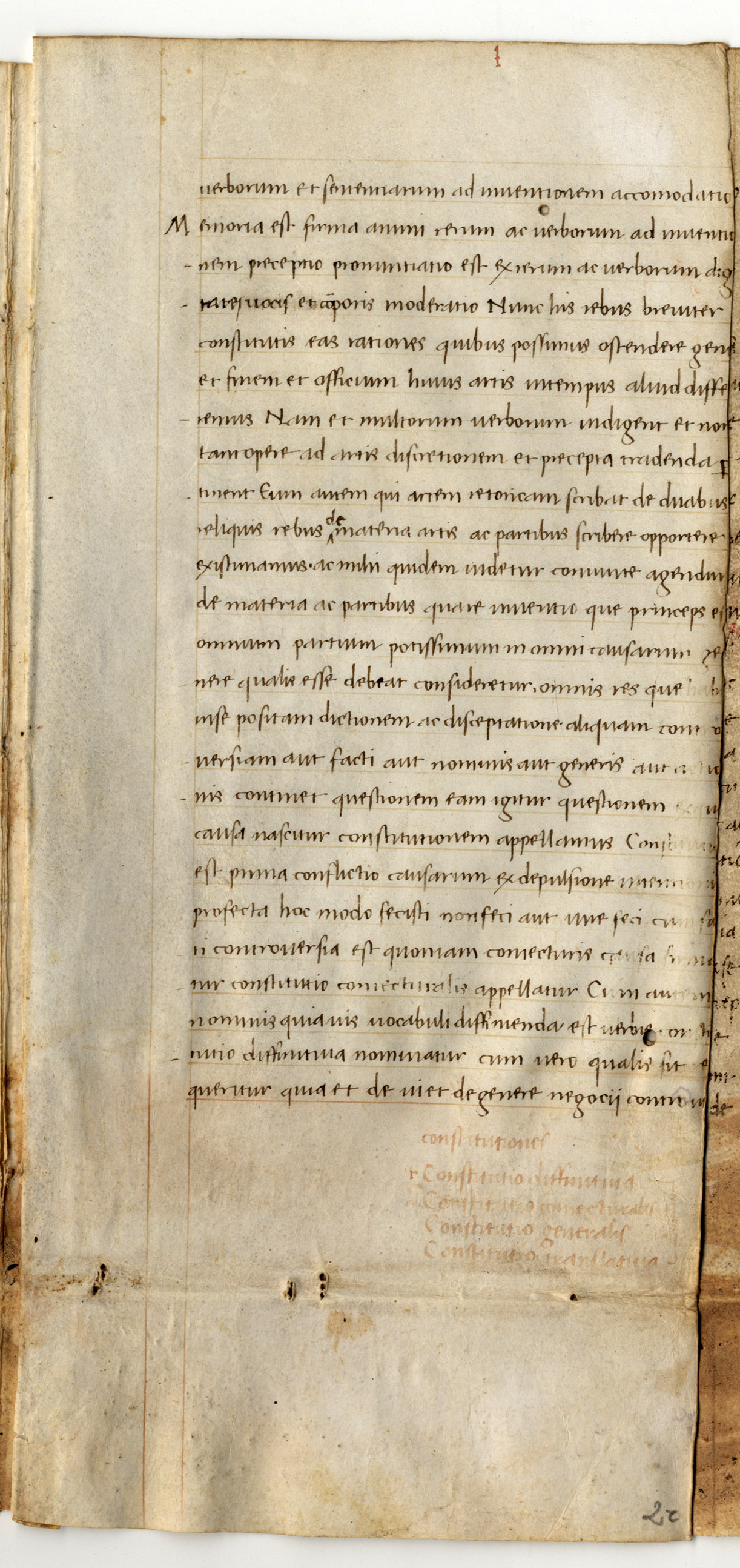 ff. 19r-20v Cicerone, De inventione, I, cap. 35-37, inc. negant enim a propositione neque ab assumptione; expl. ex his quinque partibus secunda est quadripar-