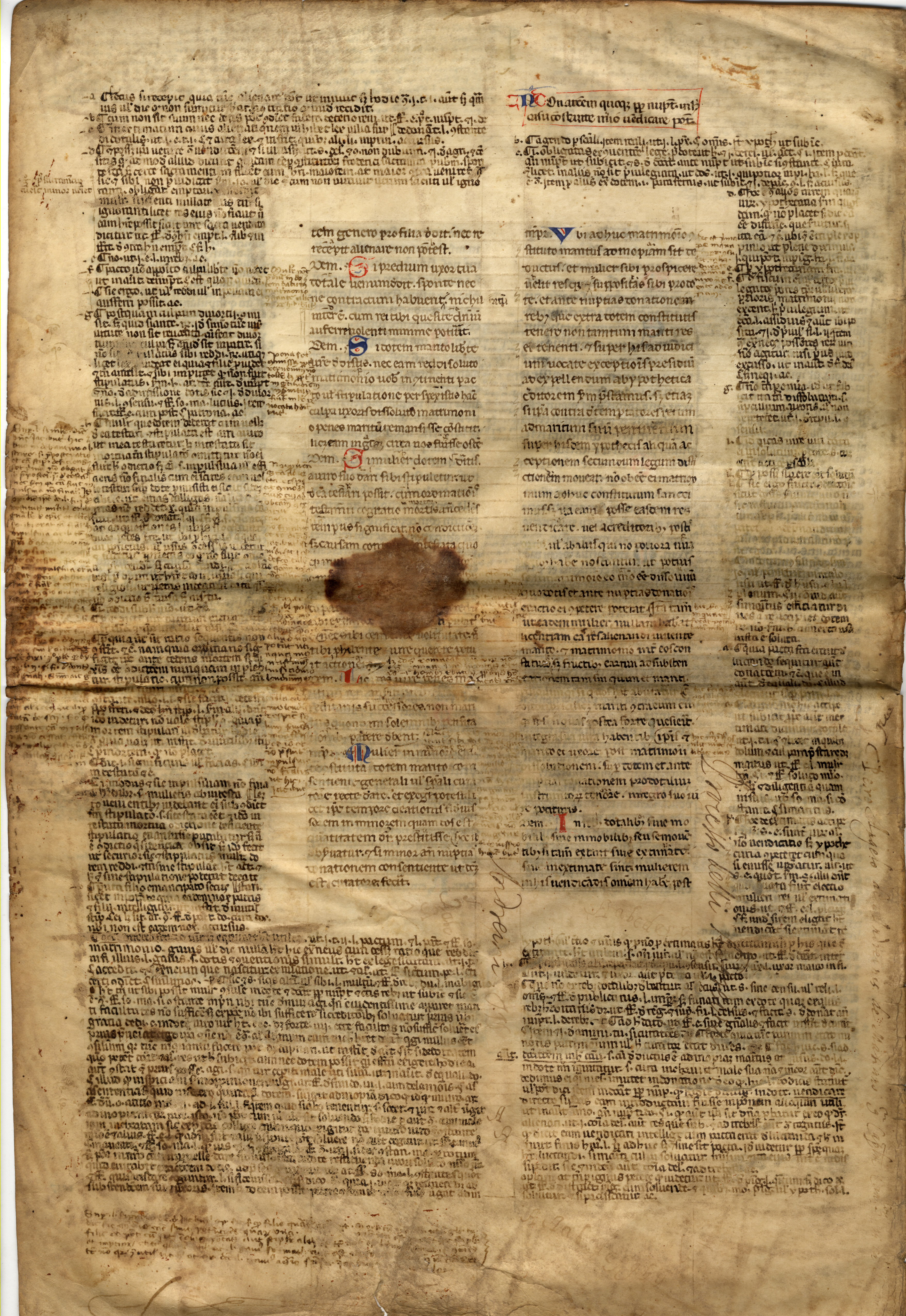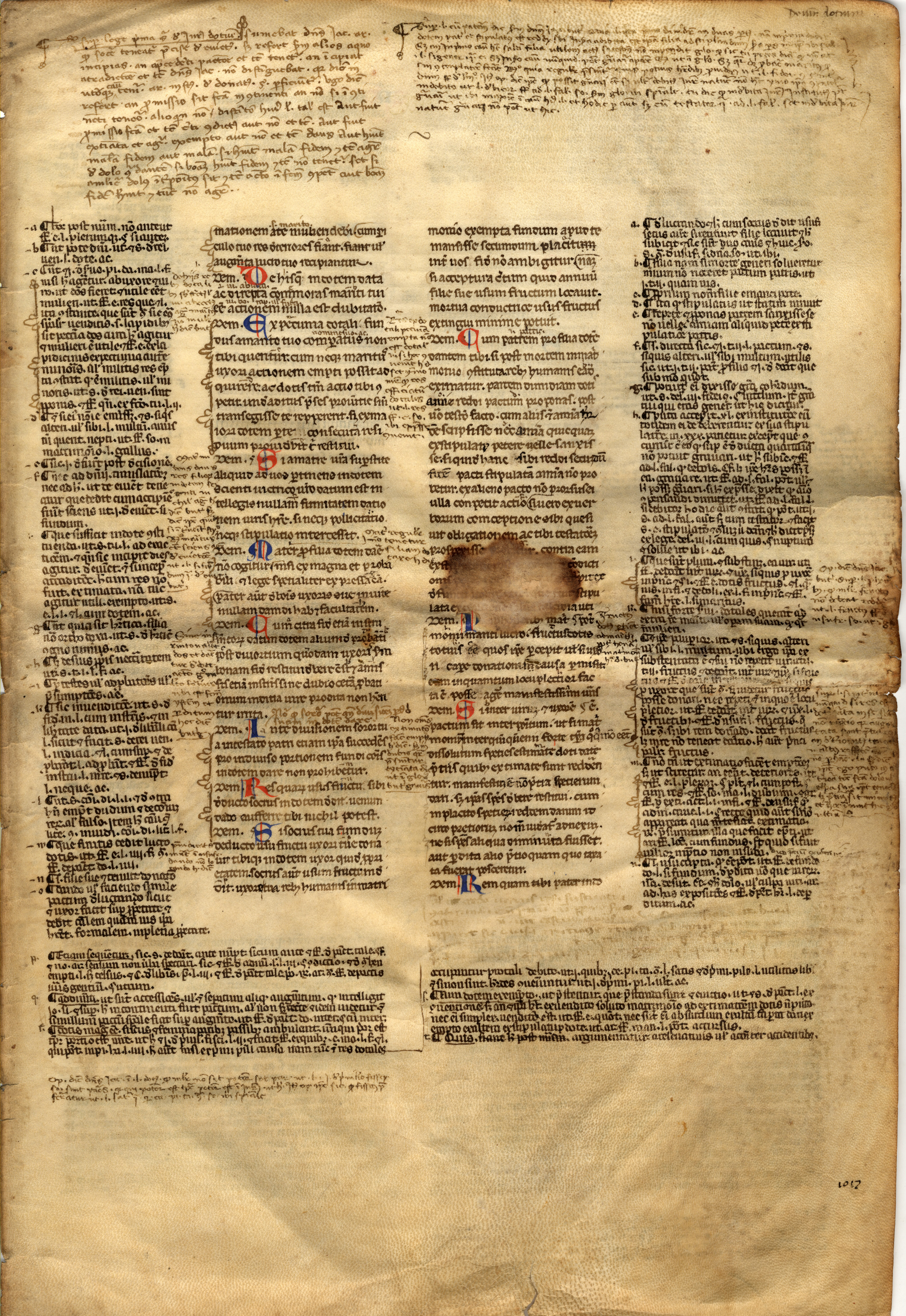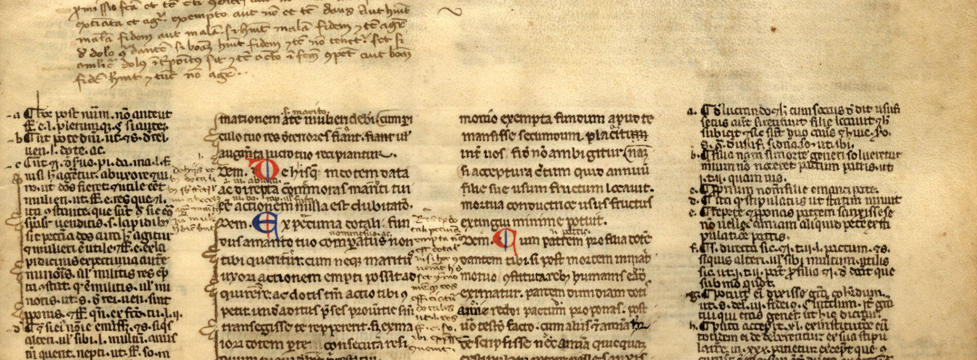 f. 1rA-vB, Giustiniano, Codex cum glossa ordinaria, V, 12.10, inc. -mationem a te mulieri deberi, cum periculo tuo res deteriores fiant; expl. mulierem in his vindicandis omnem habere post