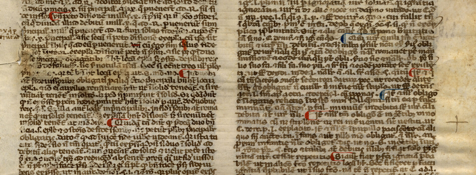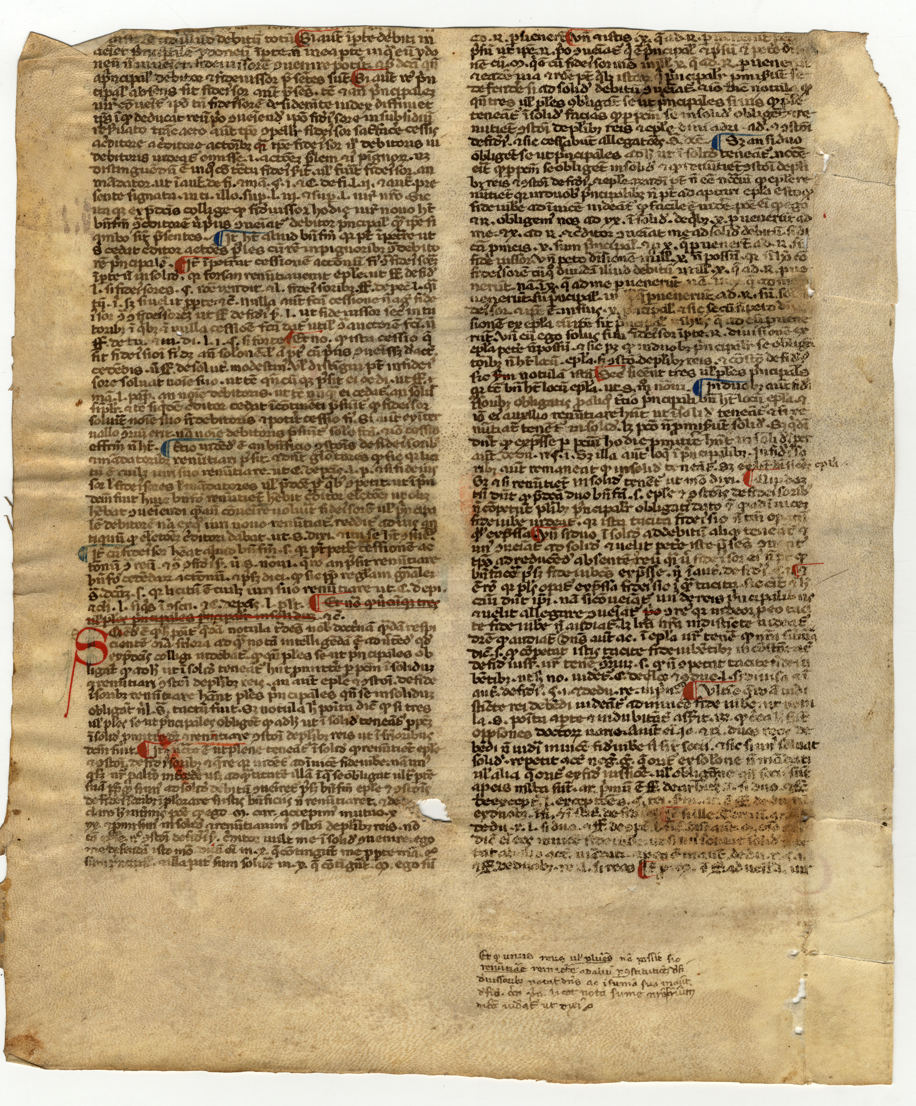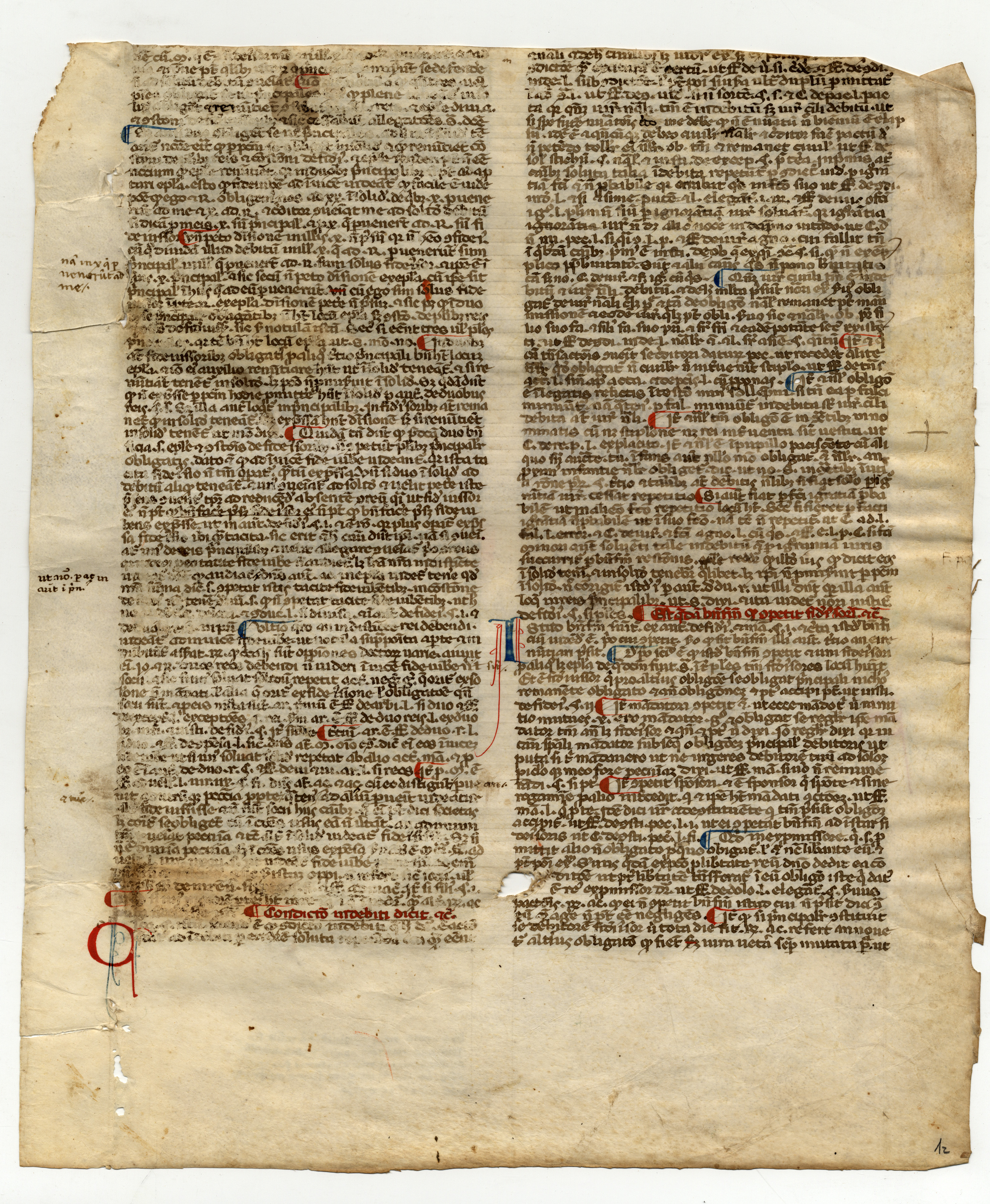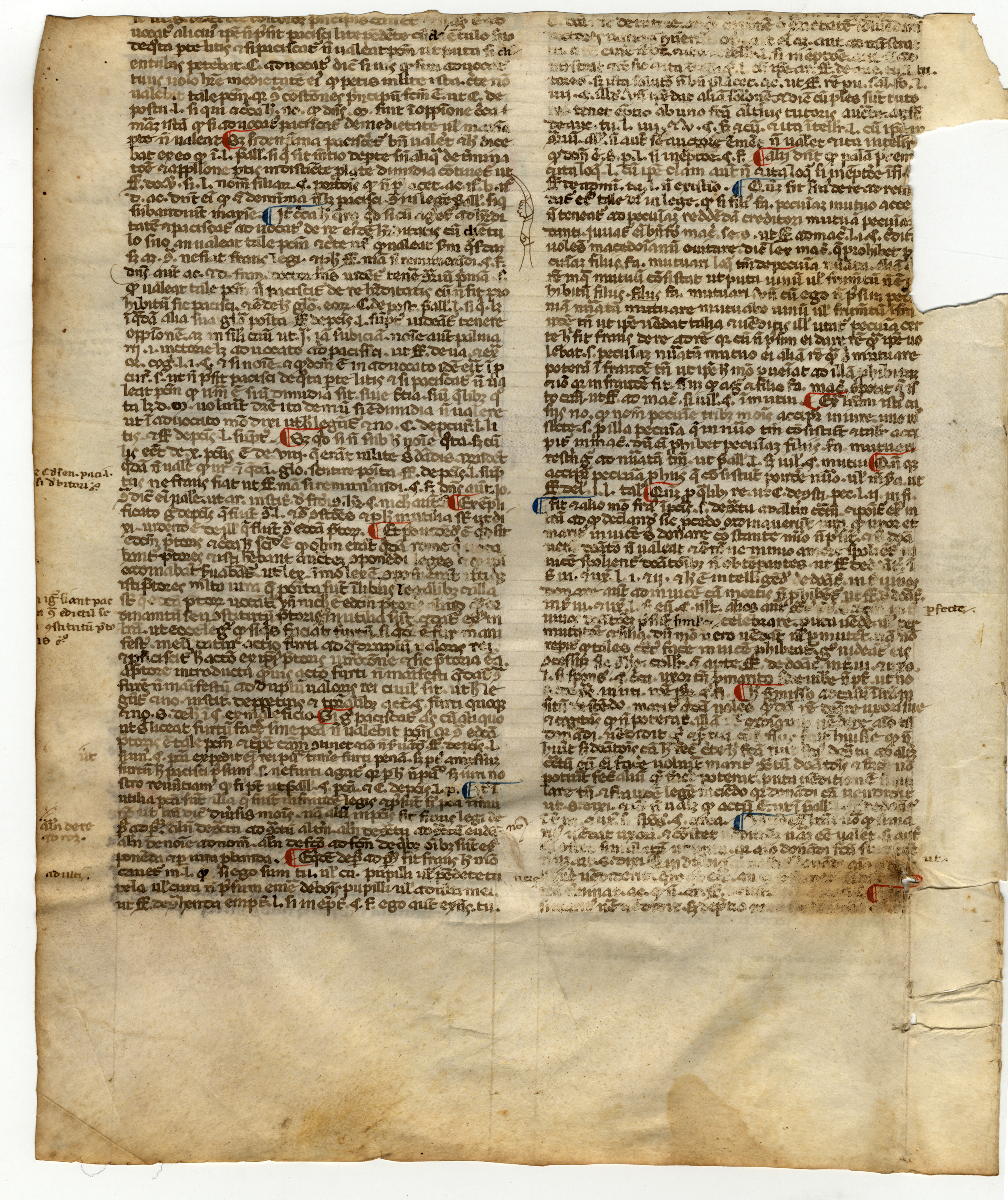Indicazione di fine pecia al f. 1r nel margine esterno: f. p. […].