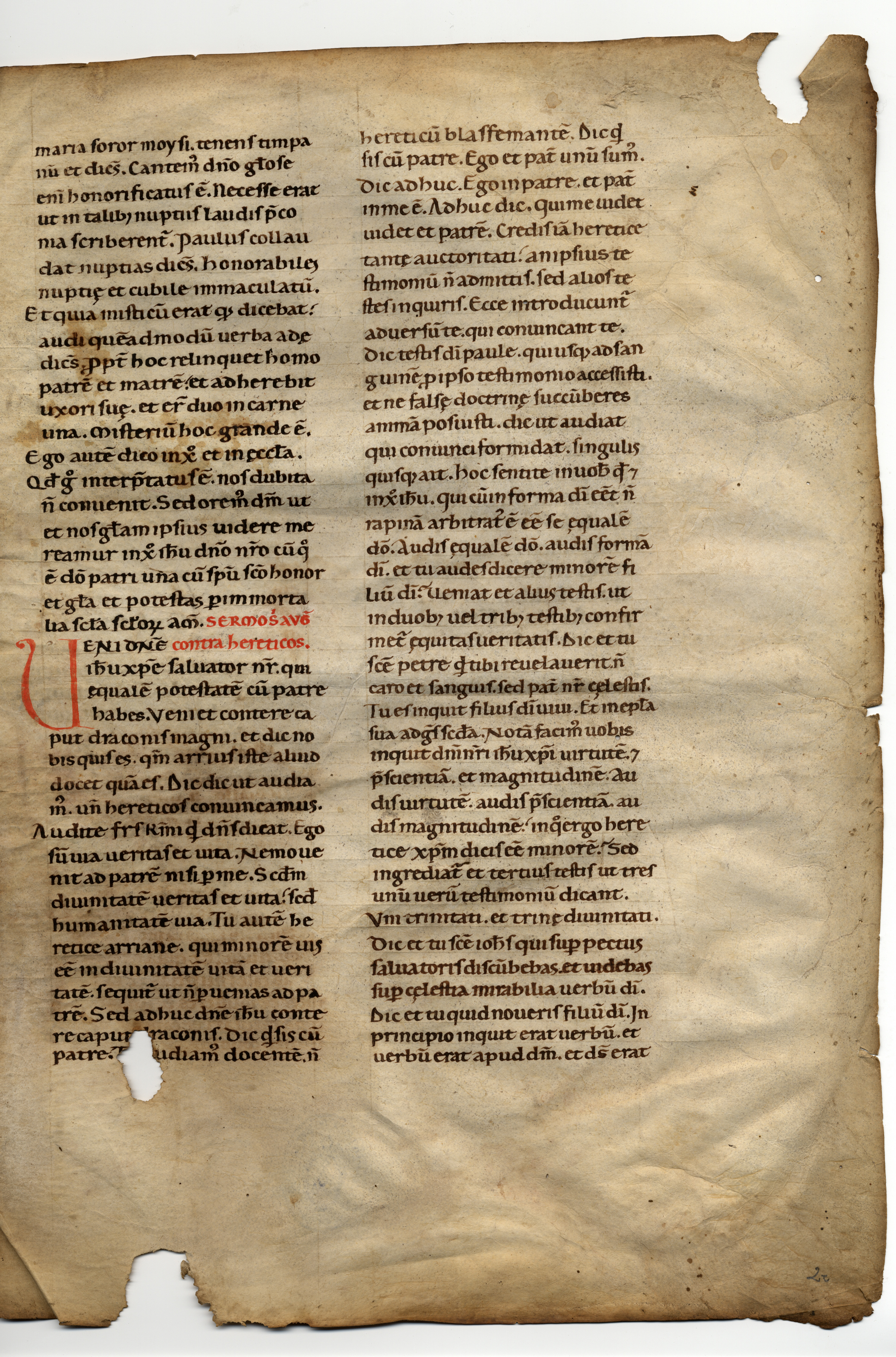 2rA-2vB Sermo contra arianos (PL 83, 1221-1222), inc. Veni, domine Ihesu Christe salvator noster; expl. de ista virga multa mir[ac]ula facien- (nel ms. attribuito ad Agostino)