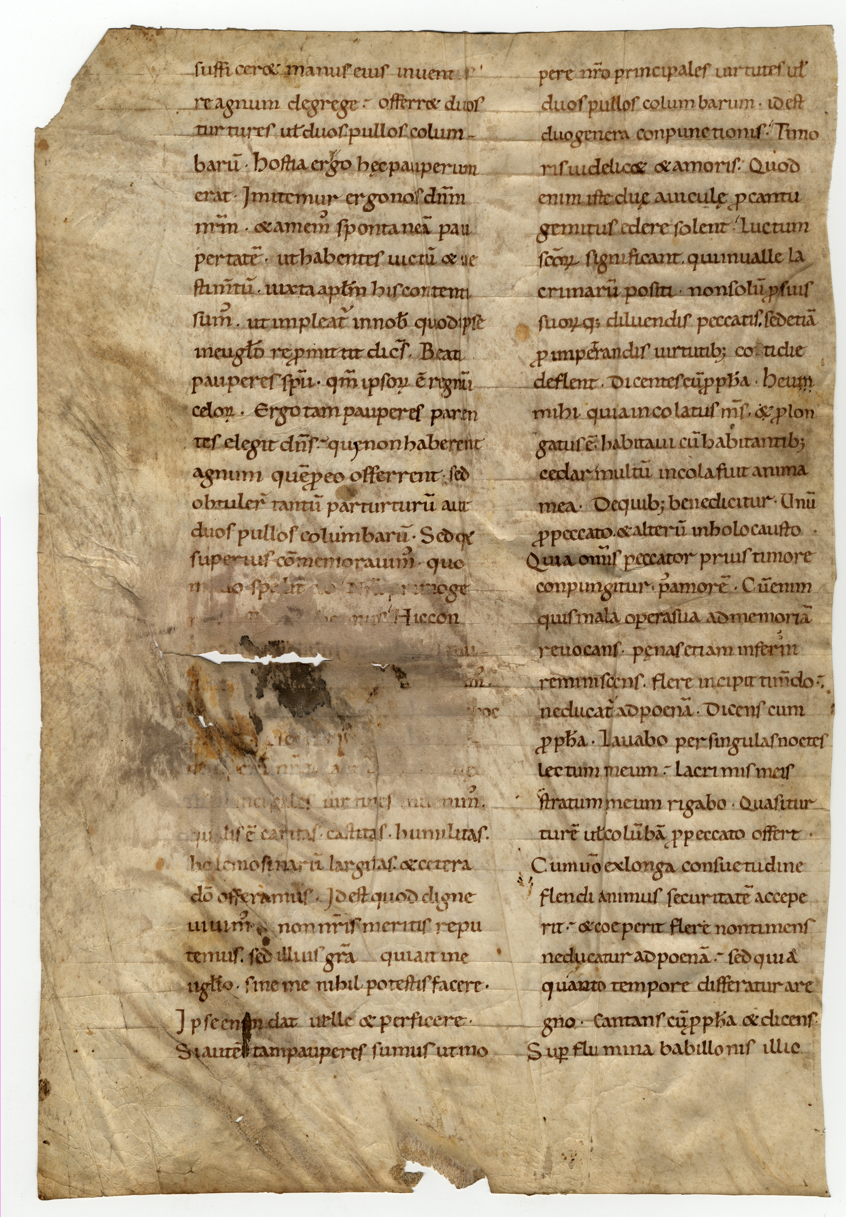 Il foglio fu probabilmente utilizzato come controguardia; sono svanite 7 linee al f. 1vA. Strappo in corripondenza della colonna esterna tra ll. 19 e 20.