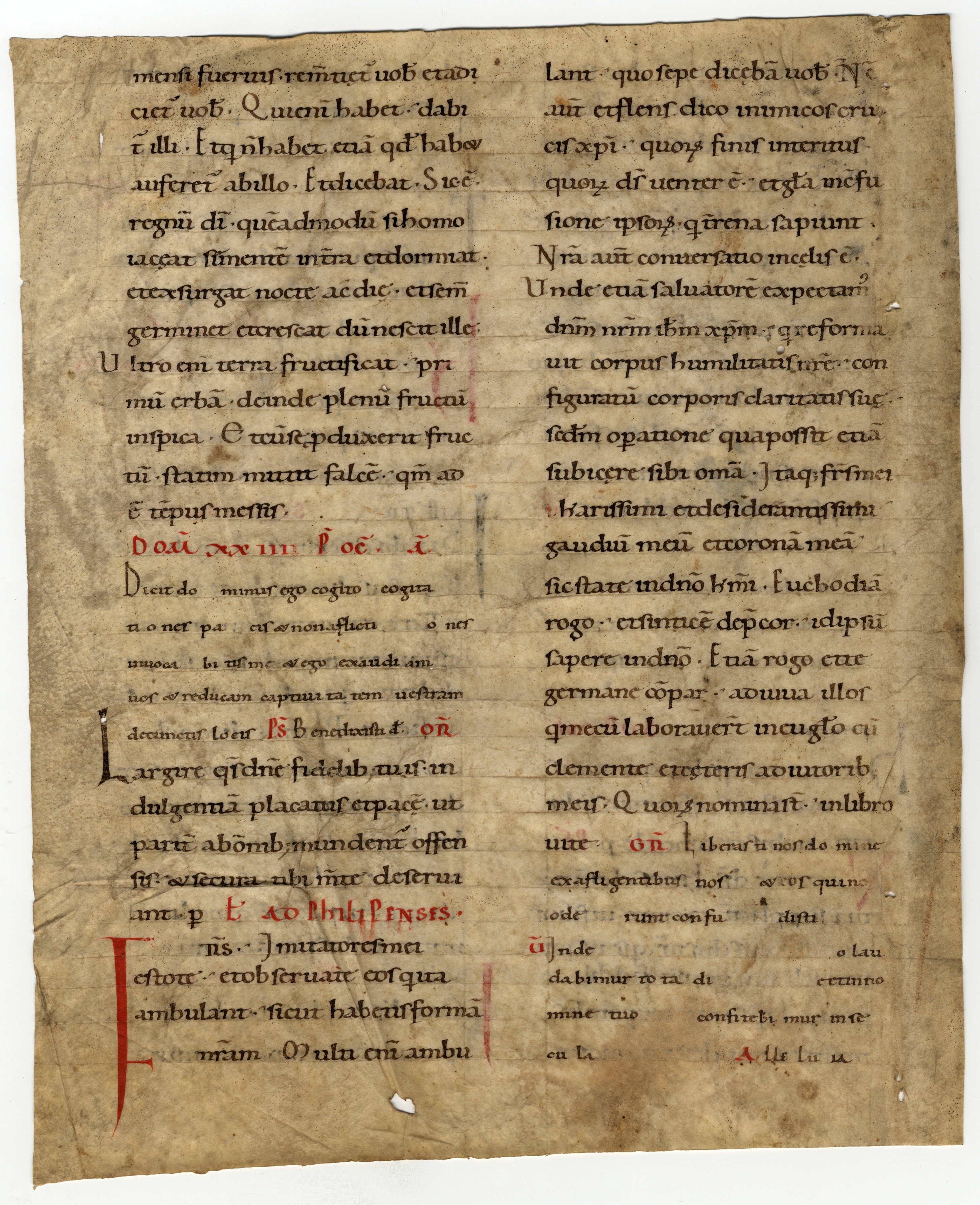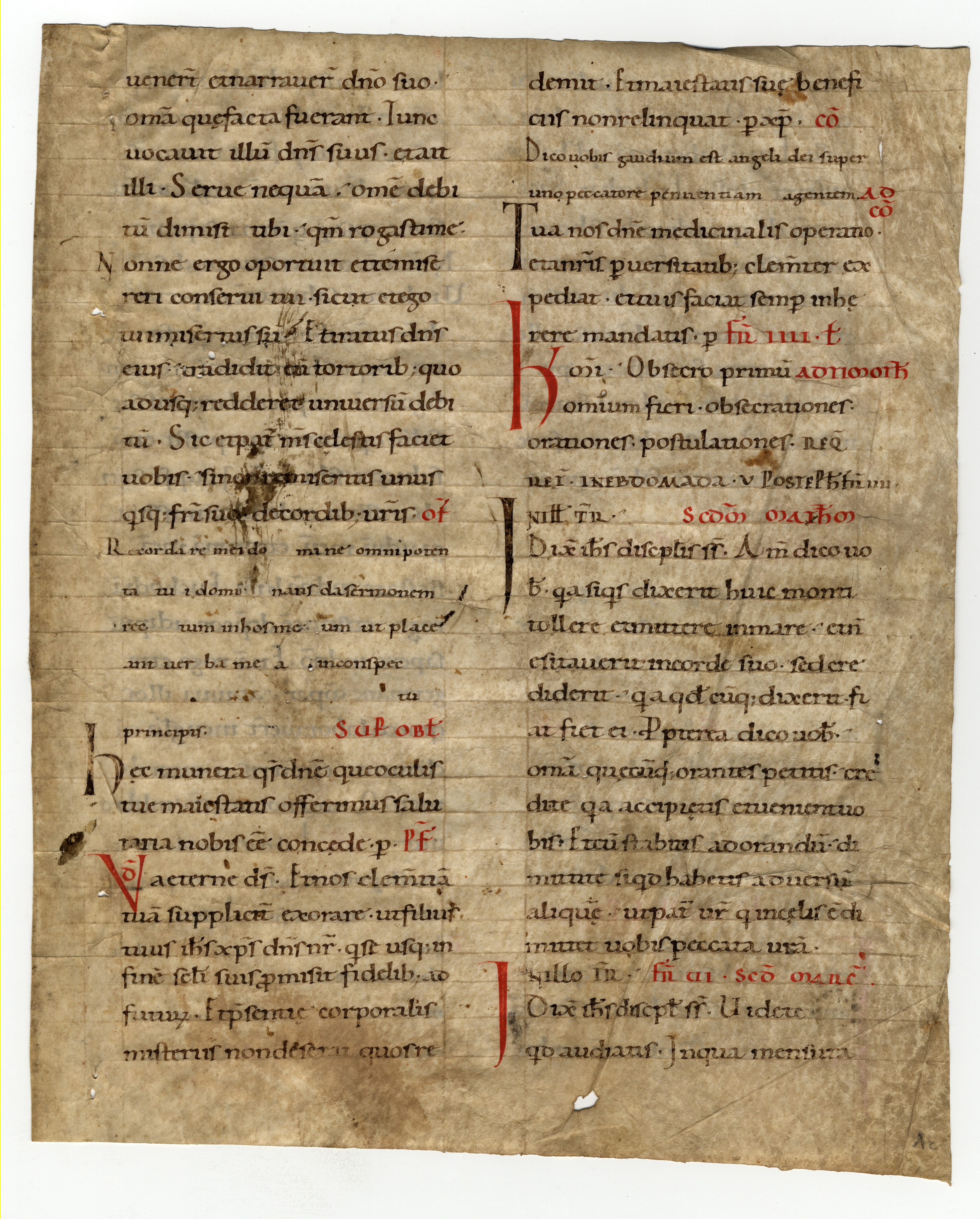 Membr.; 1 f.; 283 × 232 = × #15 [246] 22# × 14 / 10 [81 (20) 83] 24, rr. 28 / ll. 28; rigatura a secco con incisione sul lato pelo.