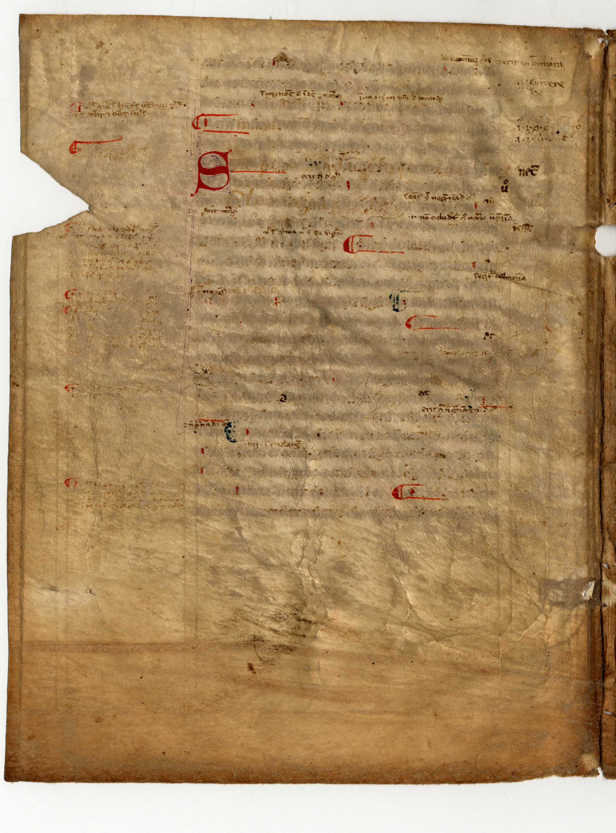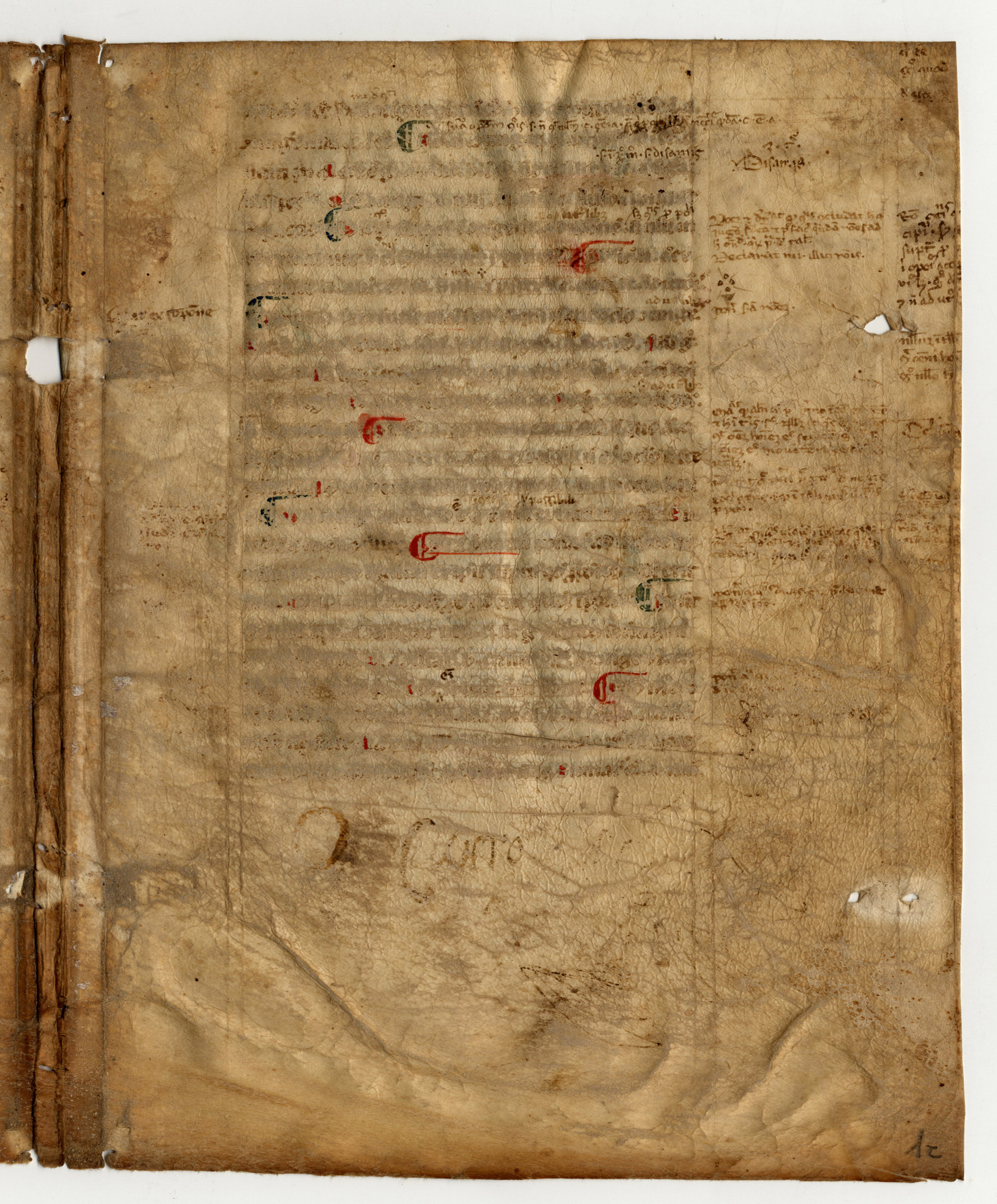 Il bifoglio fu utilizzato come coperta come dimostra un titolo, non restituibile, apposto al f. 1r.