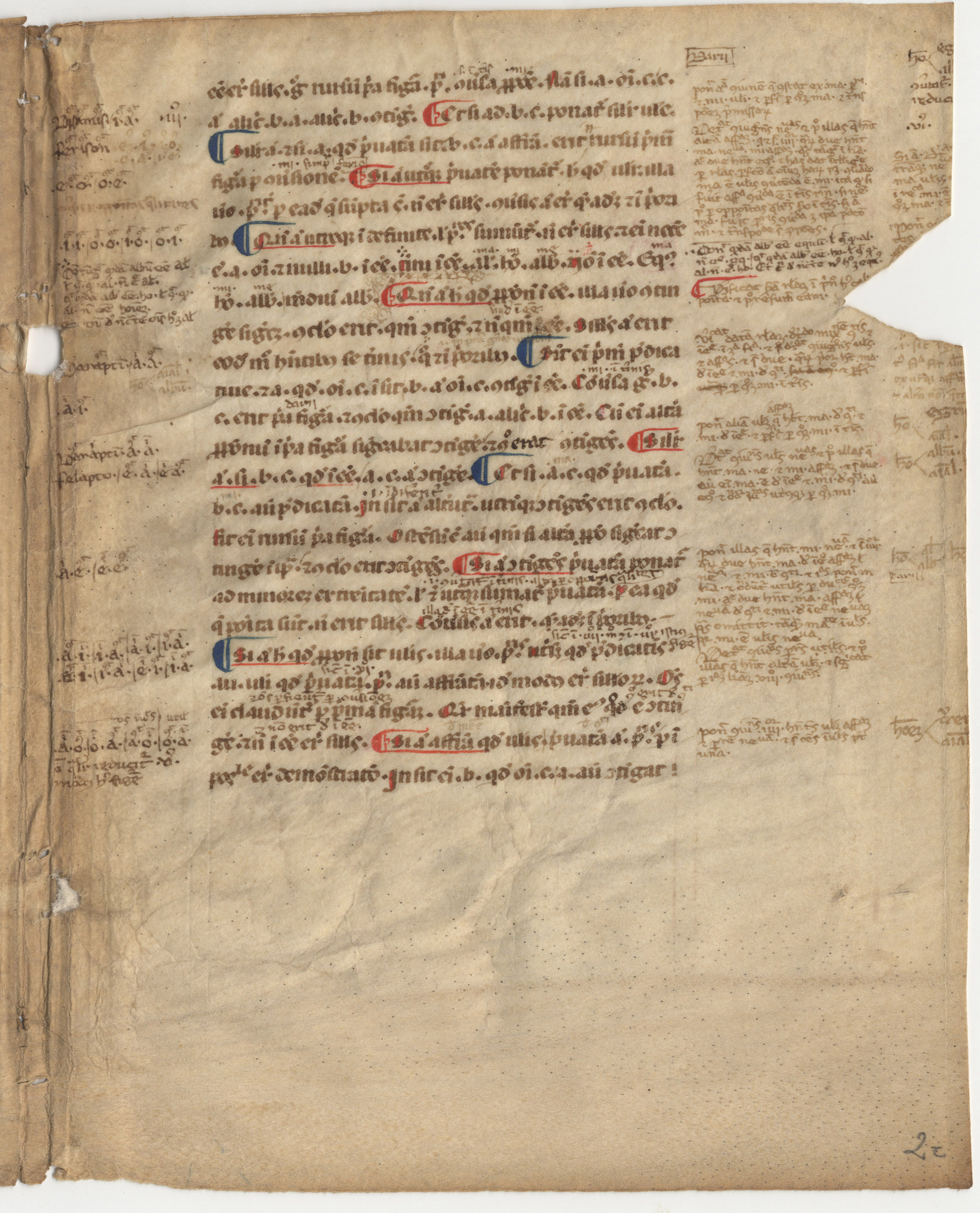 f. 2r Aristotele, Analytica priora, trad. latina di Boezio, lib. I, 20-21, inc. esse erit syllogismus ergo rursus prima figura particulari conversa propositione; expl.: insit enim B quidem omni C, A autem contingat