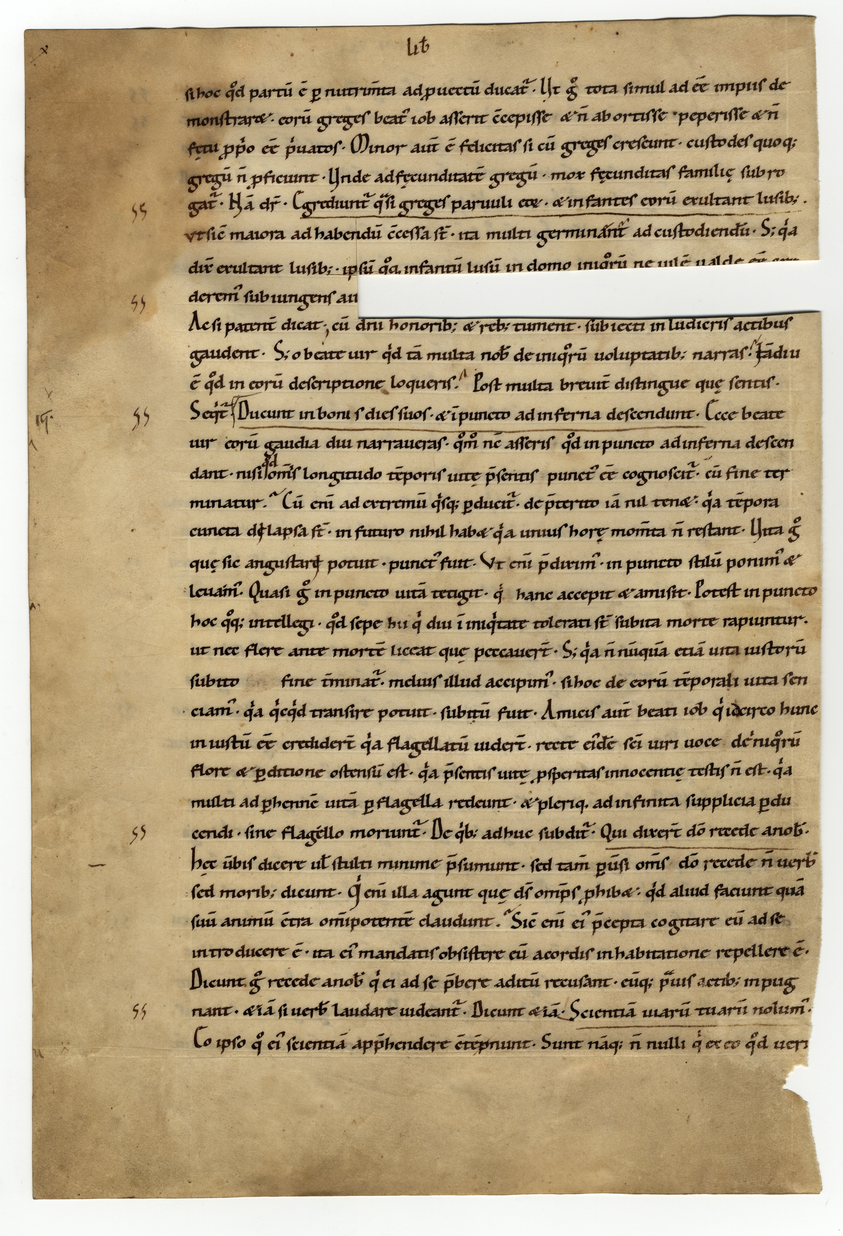 2r-v Gregorio Magno, Moralia in Iob libro XV, cap. 57-60 (PL 75, 1116-1119) inc. a saeculi amore removisset nequaquam; expl. ad luctum tendunt, ut in aeternum postea lugeant, qui modo