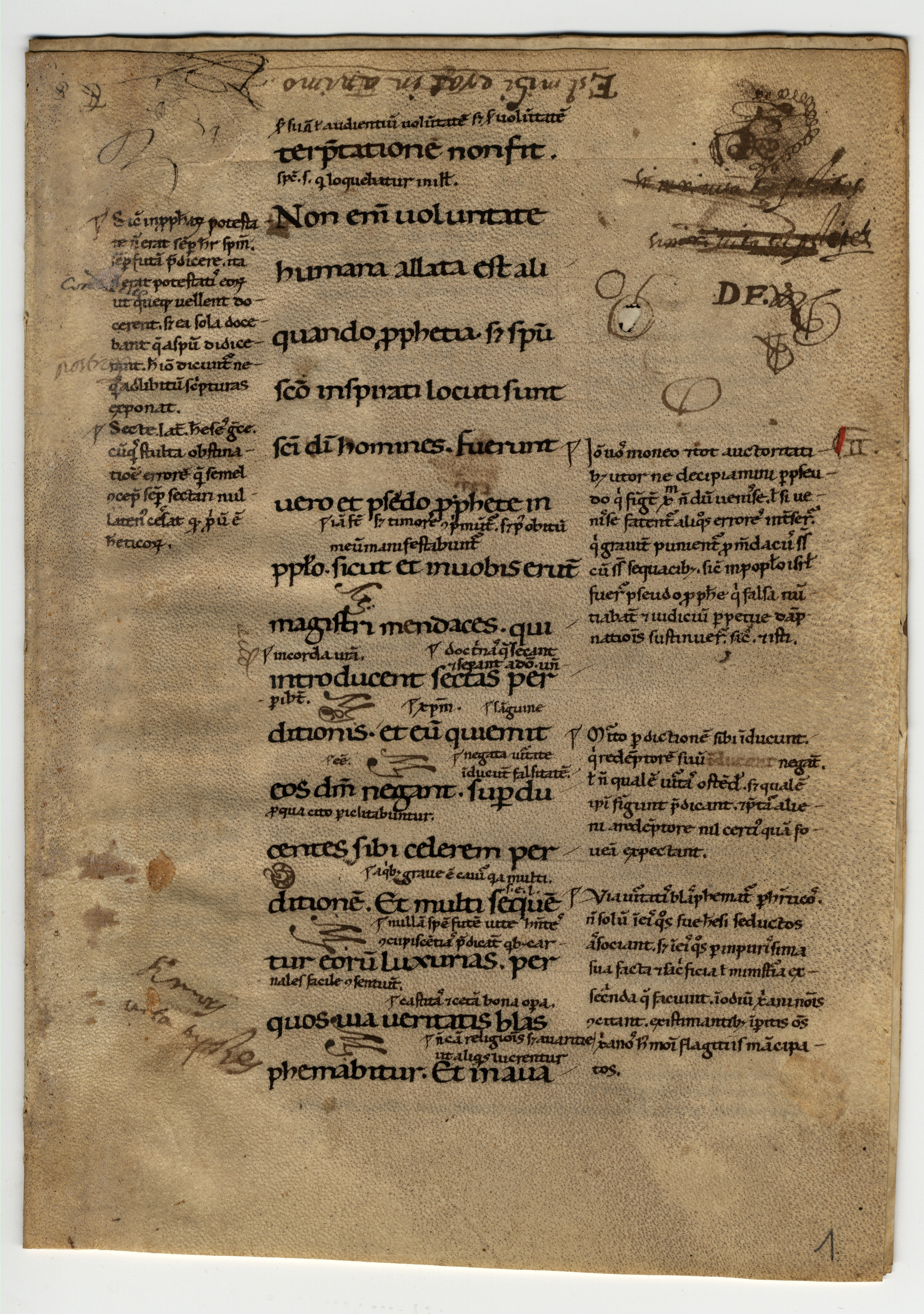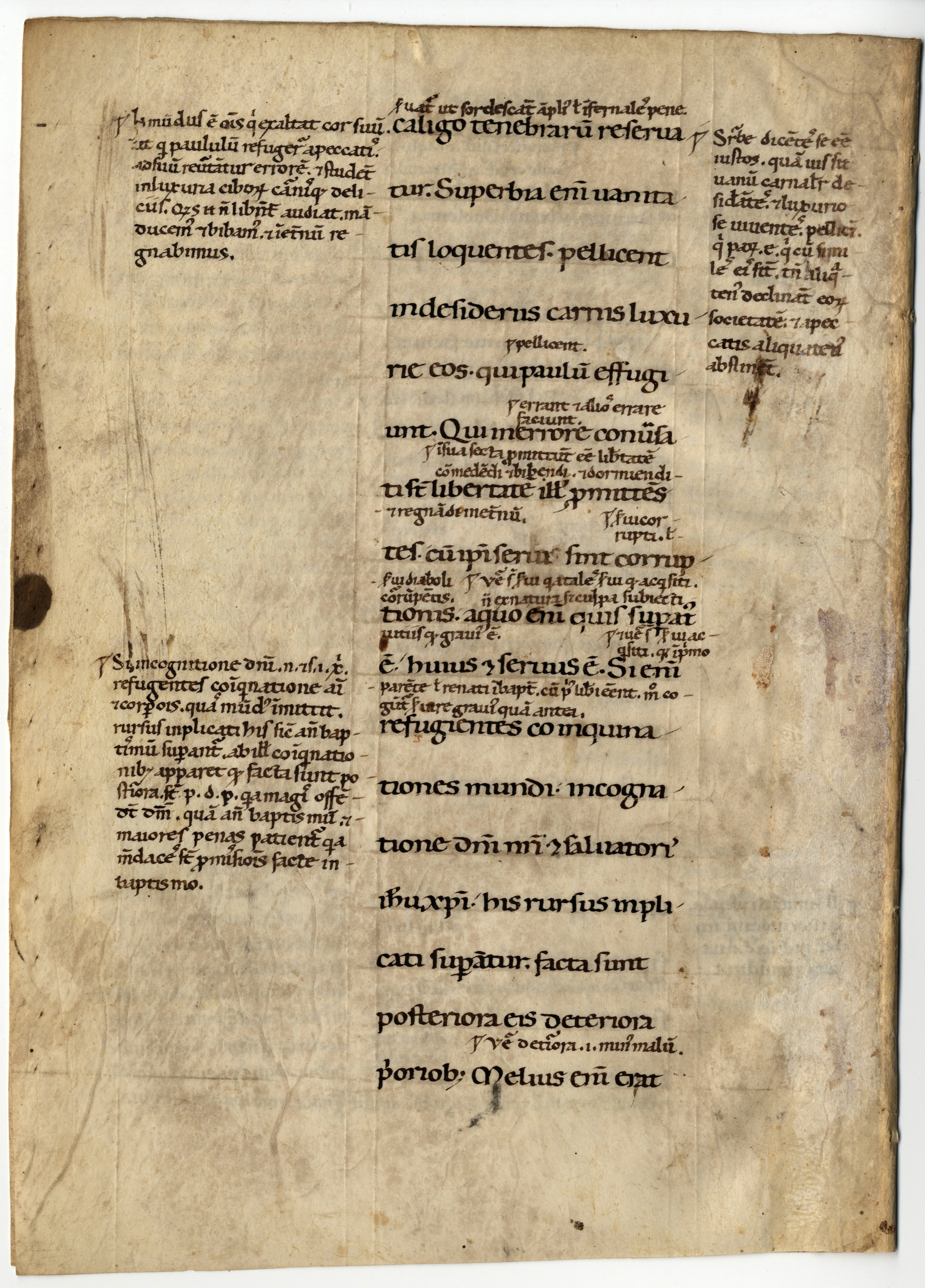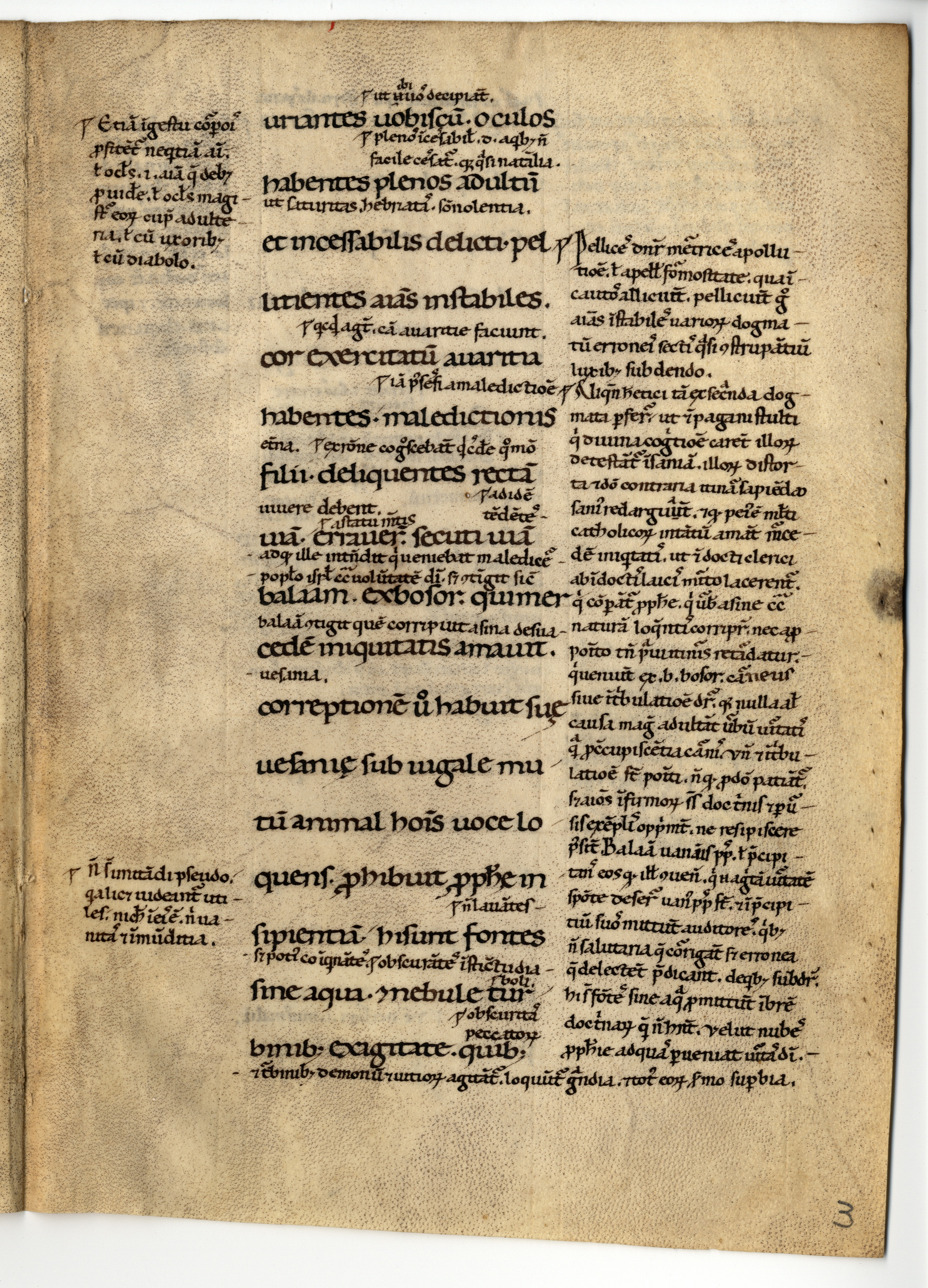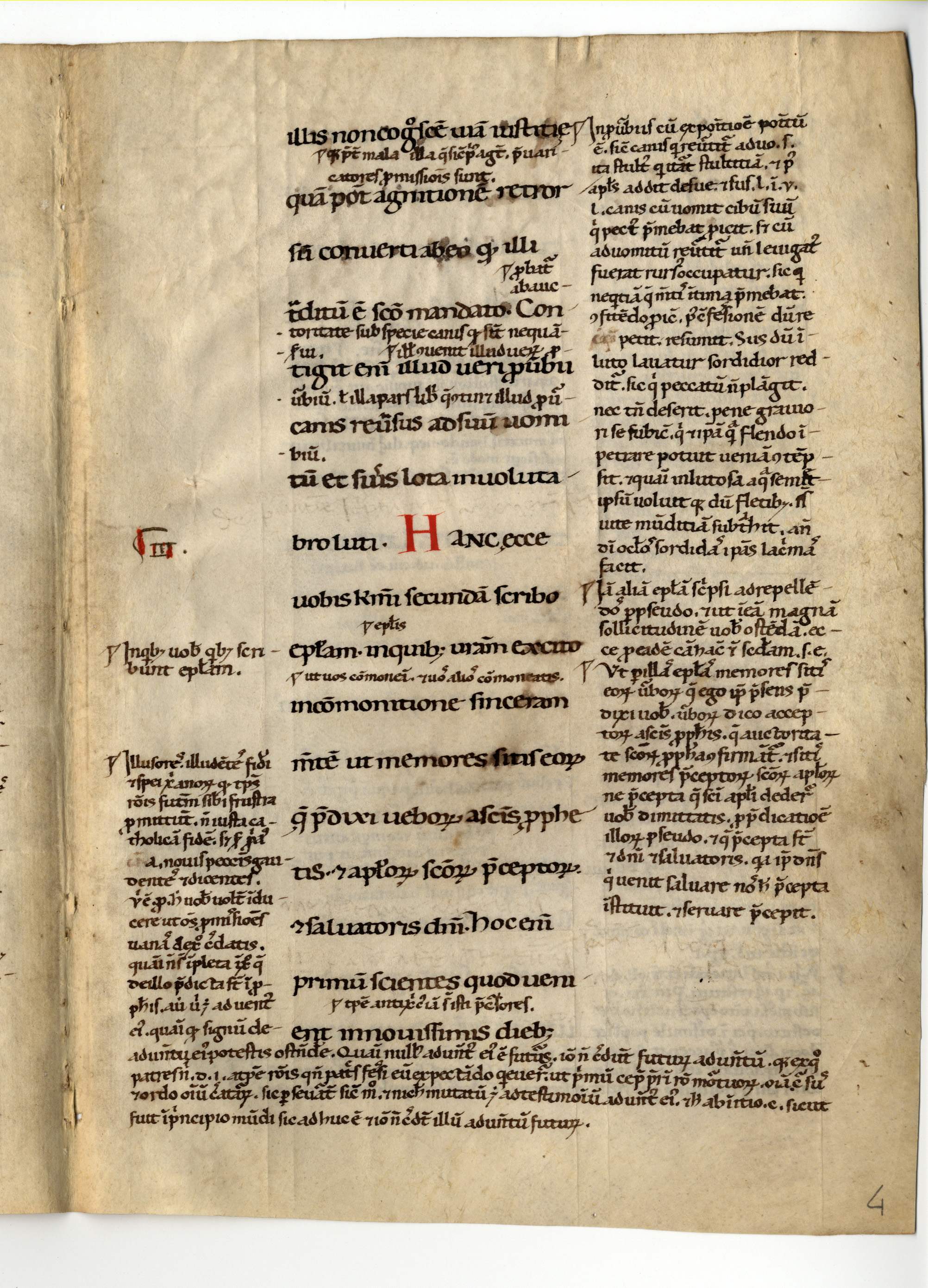 1r-4v Biblia sacra. Novum Testamentum. Epistula secunda Petri (1, 20 – 3, 7) cum glossa ordinaria, inc.: -terpretatione non fit. Non enim voluntate humana; expl.: igni reservati in diem iudicii et per-