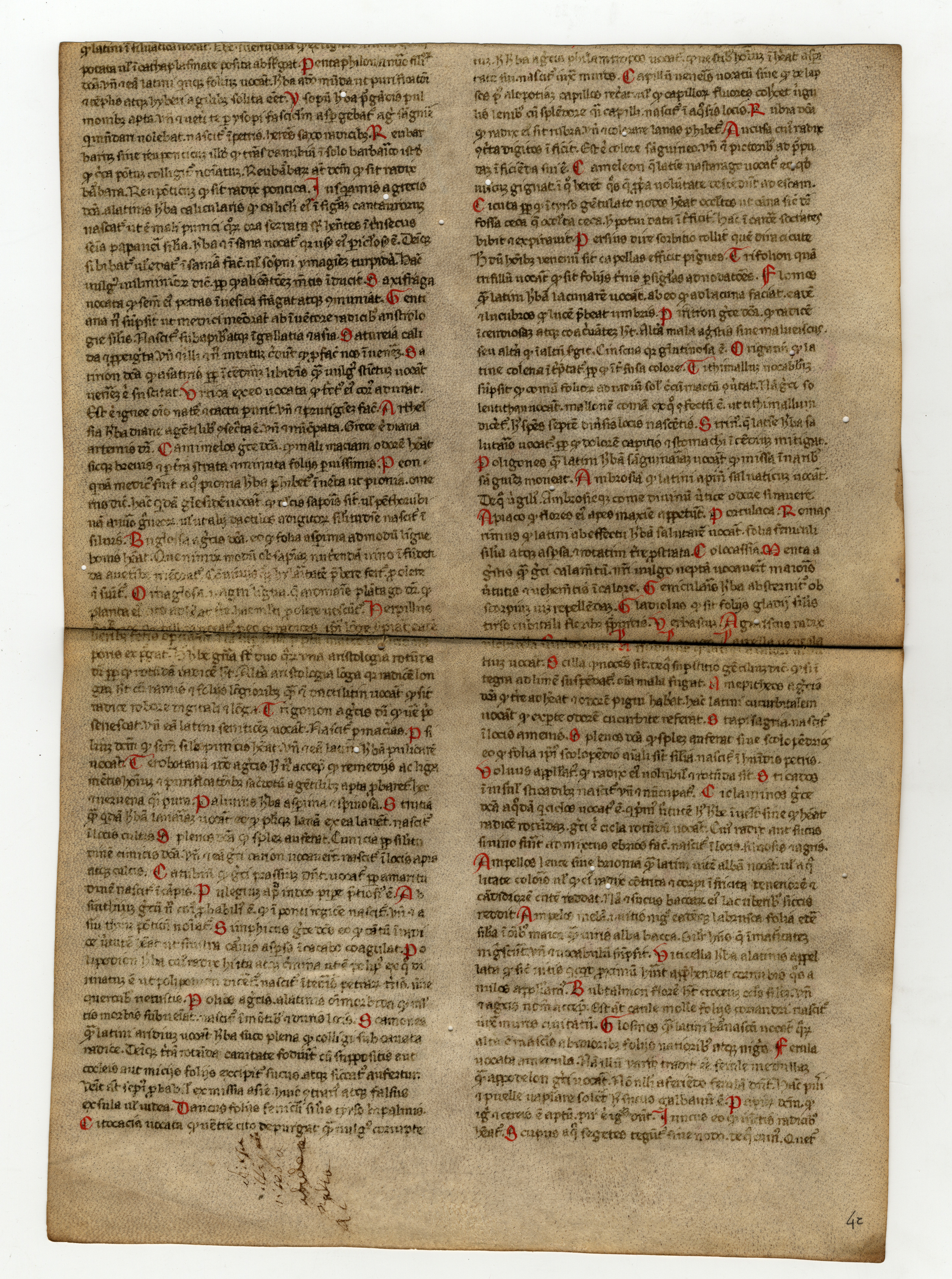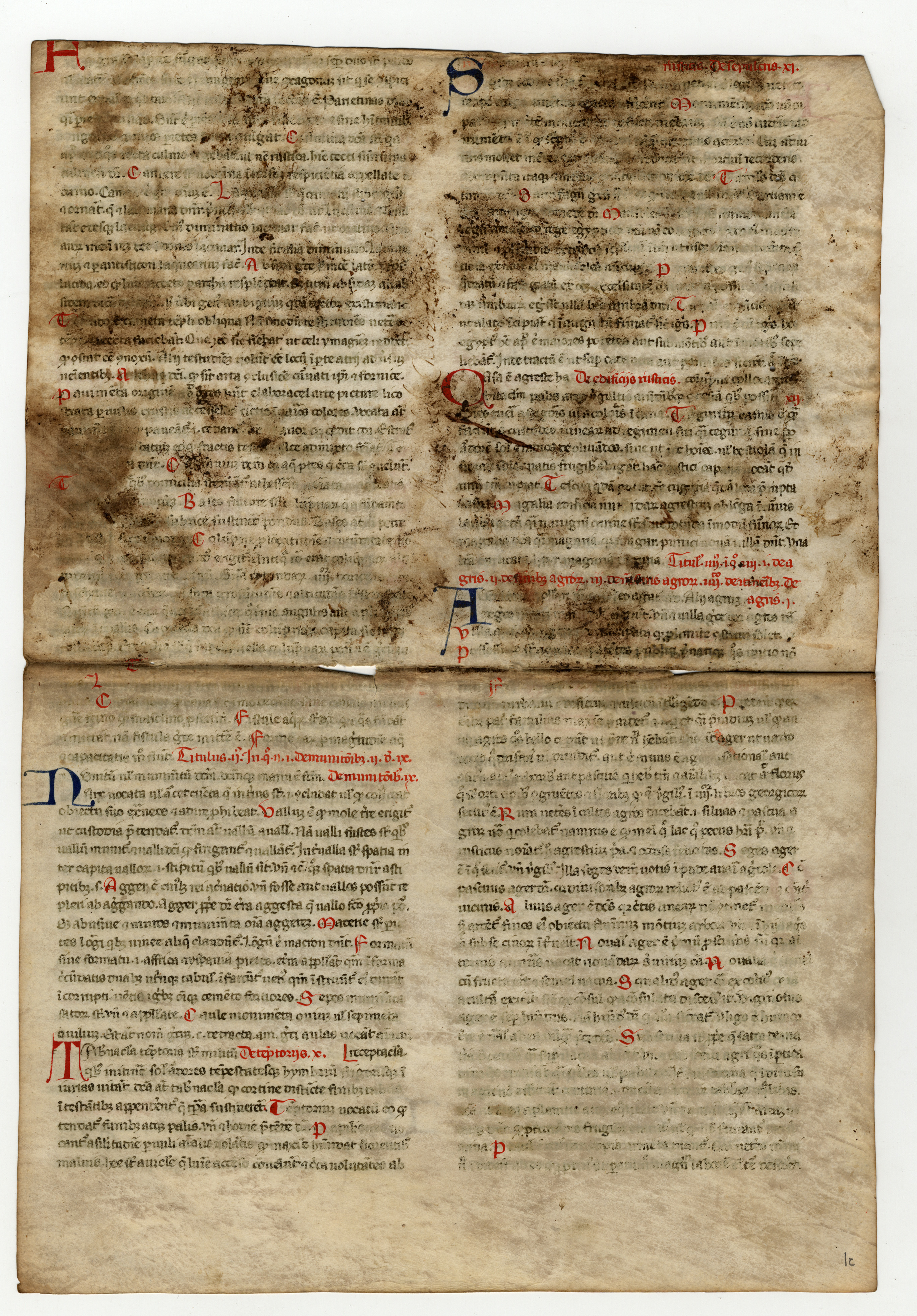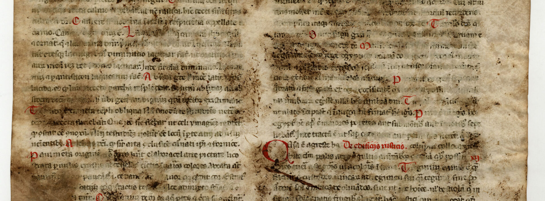 ff. 1rA-2vB, Isidoro di Siviglia, Etymologiae, libro XV, cap 8 – libro XVI, cap. 7, inc.F[seguono alcune parole evanite] semper duo sunt pares, vel a latere [; expl. Thopation ex virenti genere est omnique colore resplendens, inventa
