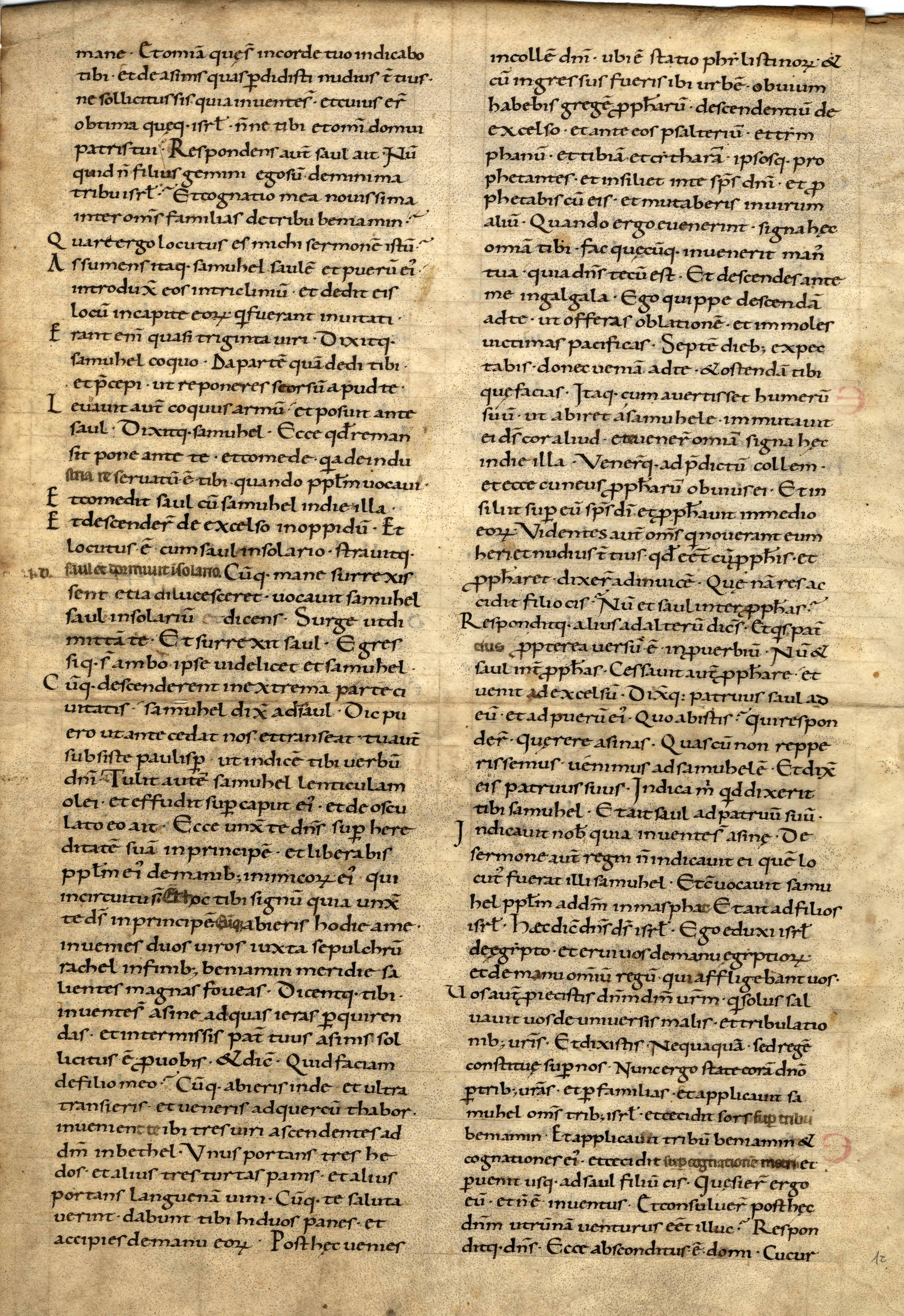 1rA-vB Biblia sacra. Vetus Testamentum. Liber I Samuelis (9, 19 – 12, 13), inc. mane et omnia, quae sunt in corde tuo, indicabo tibi; exp. ergo praesto est rex vester, q[seguono tre lettere erase]