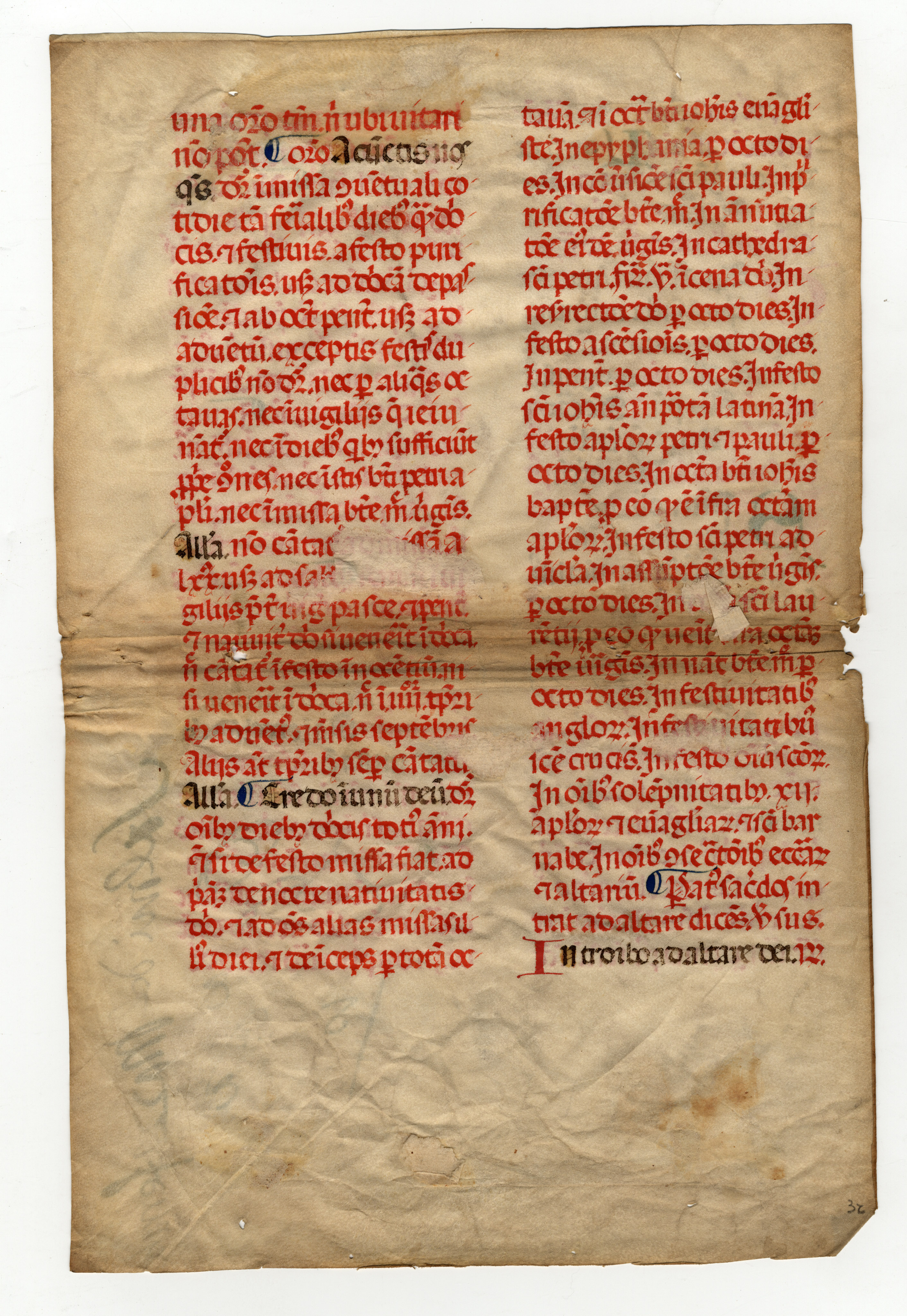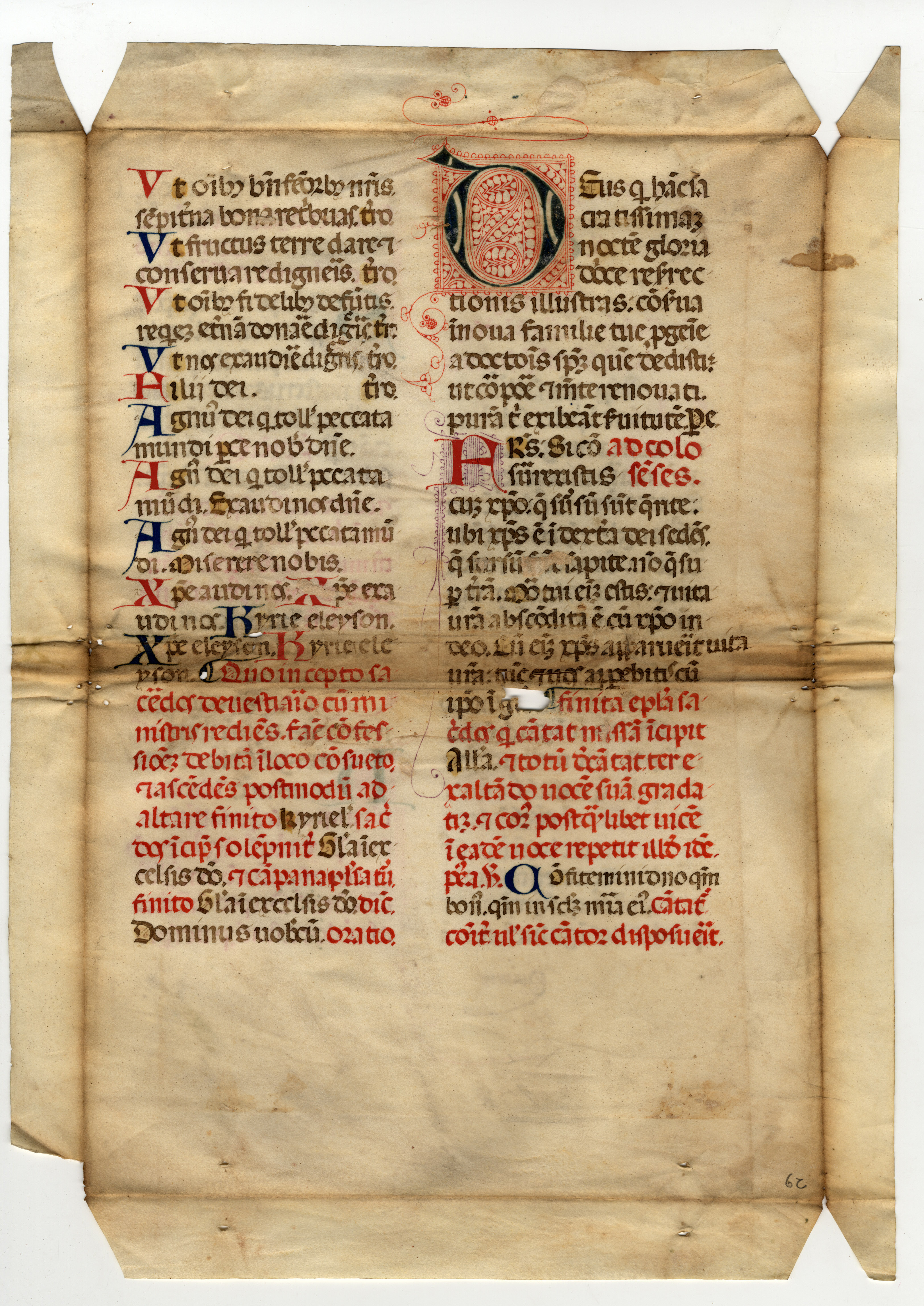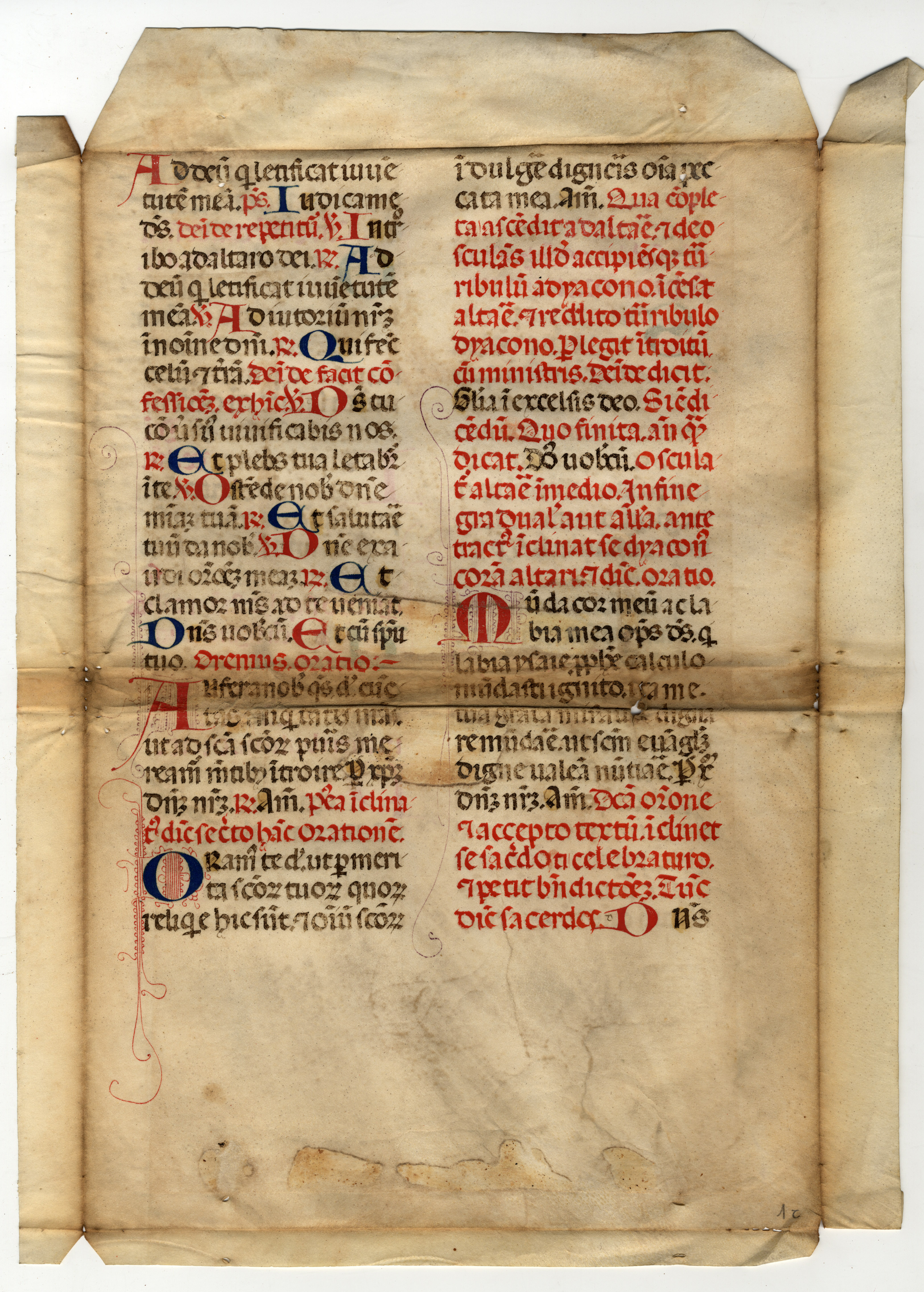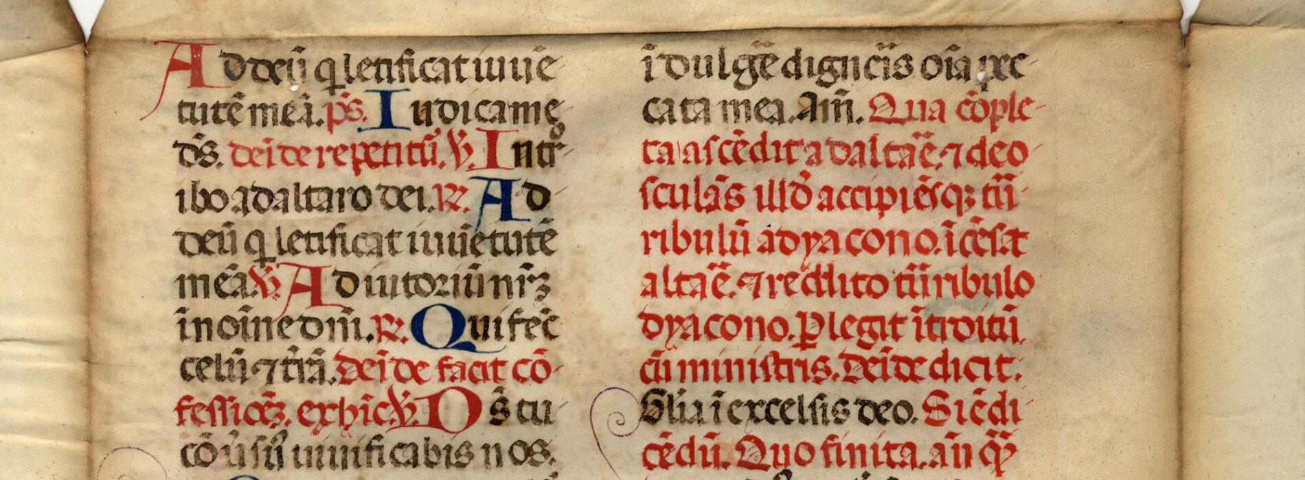 ff. 1rA-2vB, Messale – Ordo missae, inc. Ad Deum qui letificat iuventutem meam; expl. et archangelis cum tronis et dominatio-