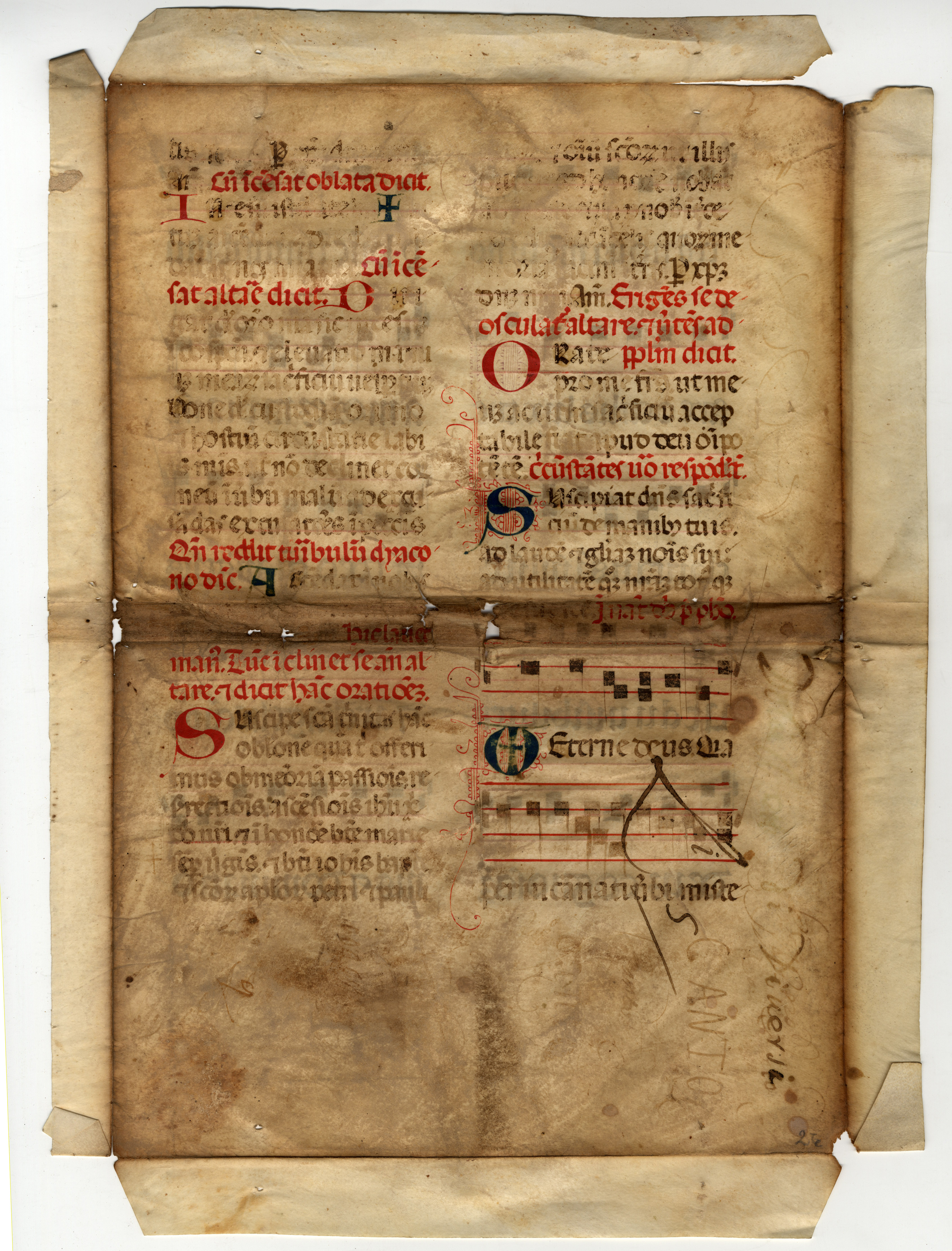 f. 4rA-vB, Messale – Sabbato sancto, inc. operum tuorum dispensatione mirabilis; expl. sonitum tube et fistule et cytha-