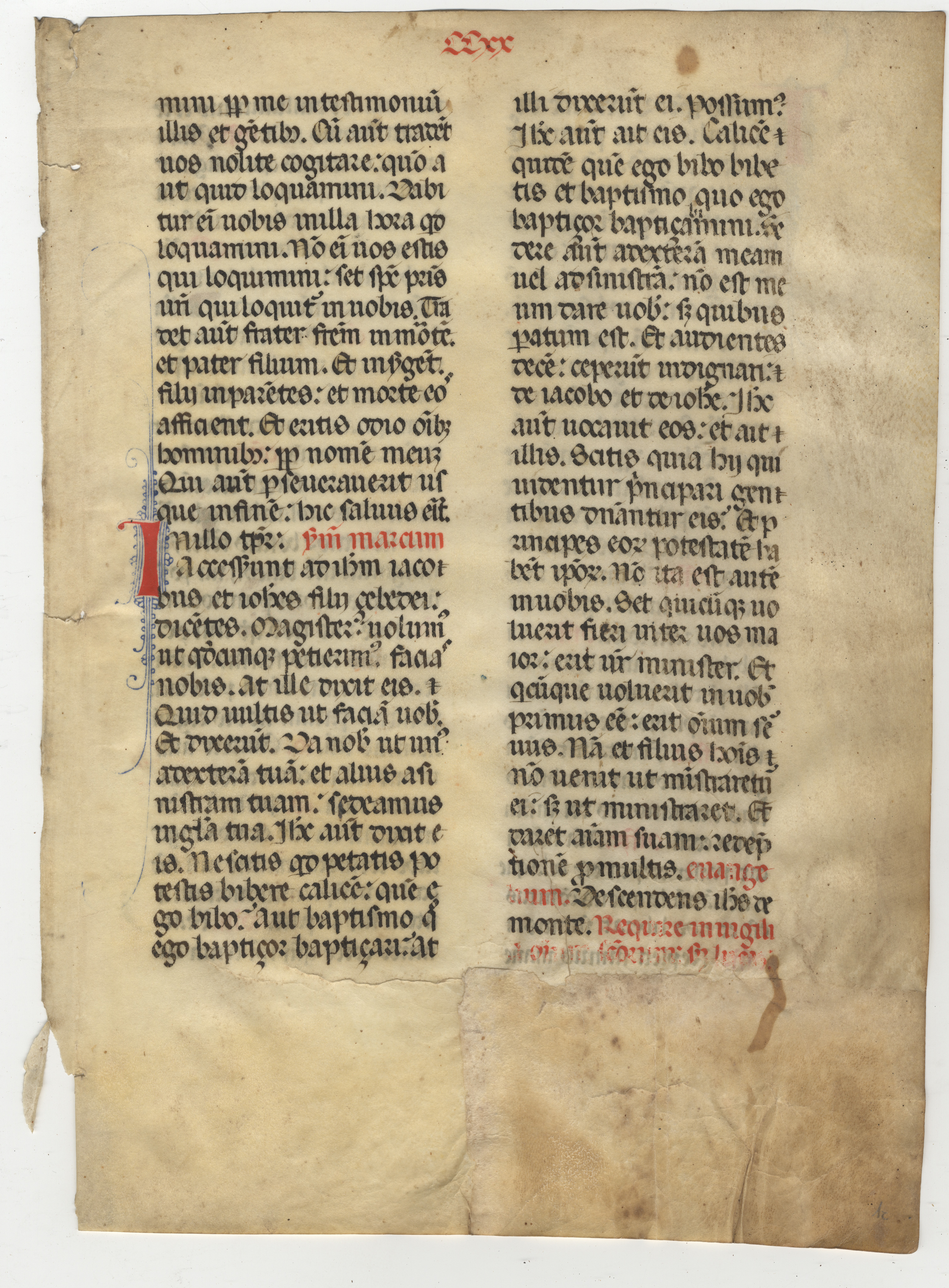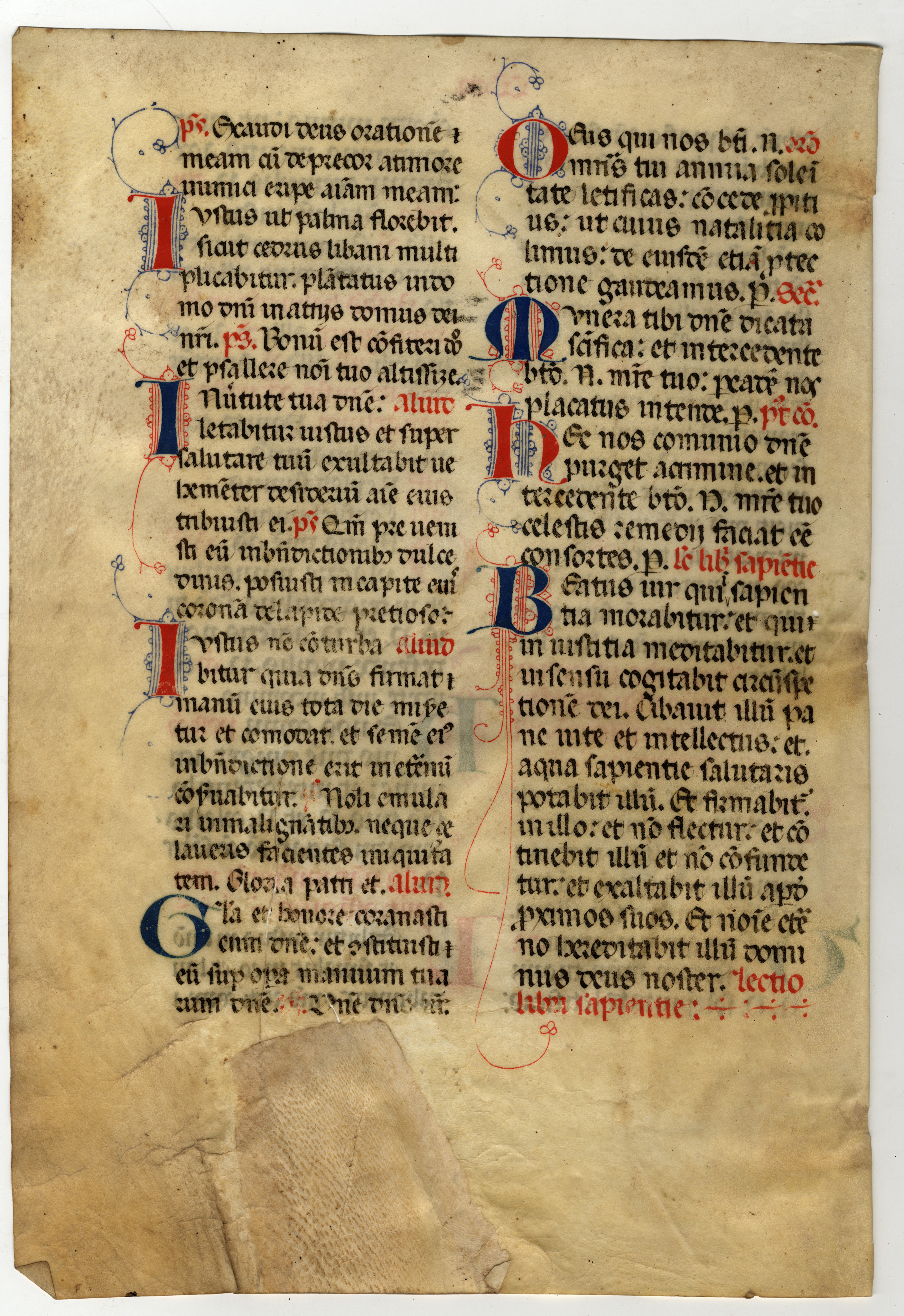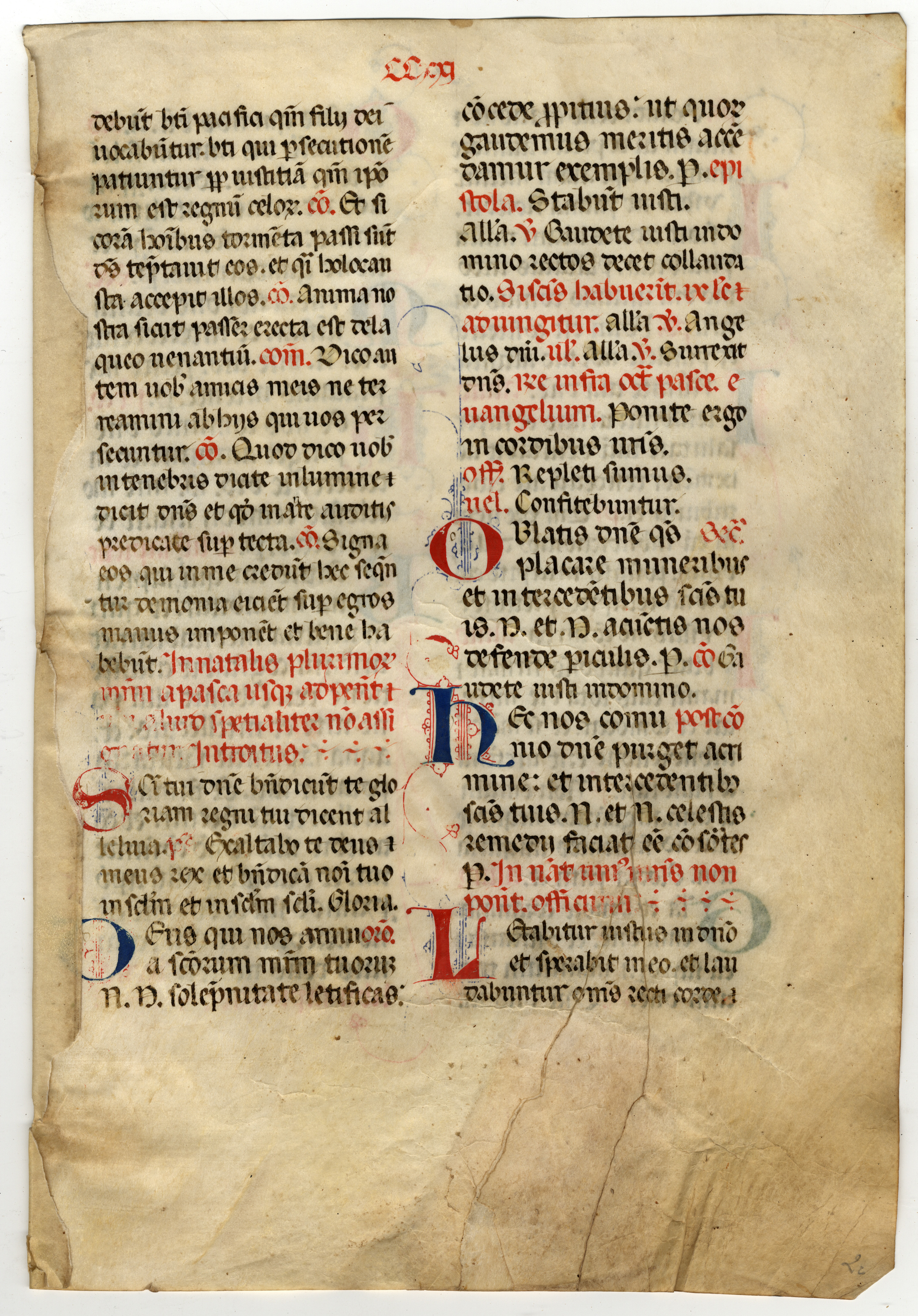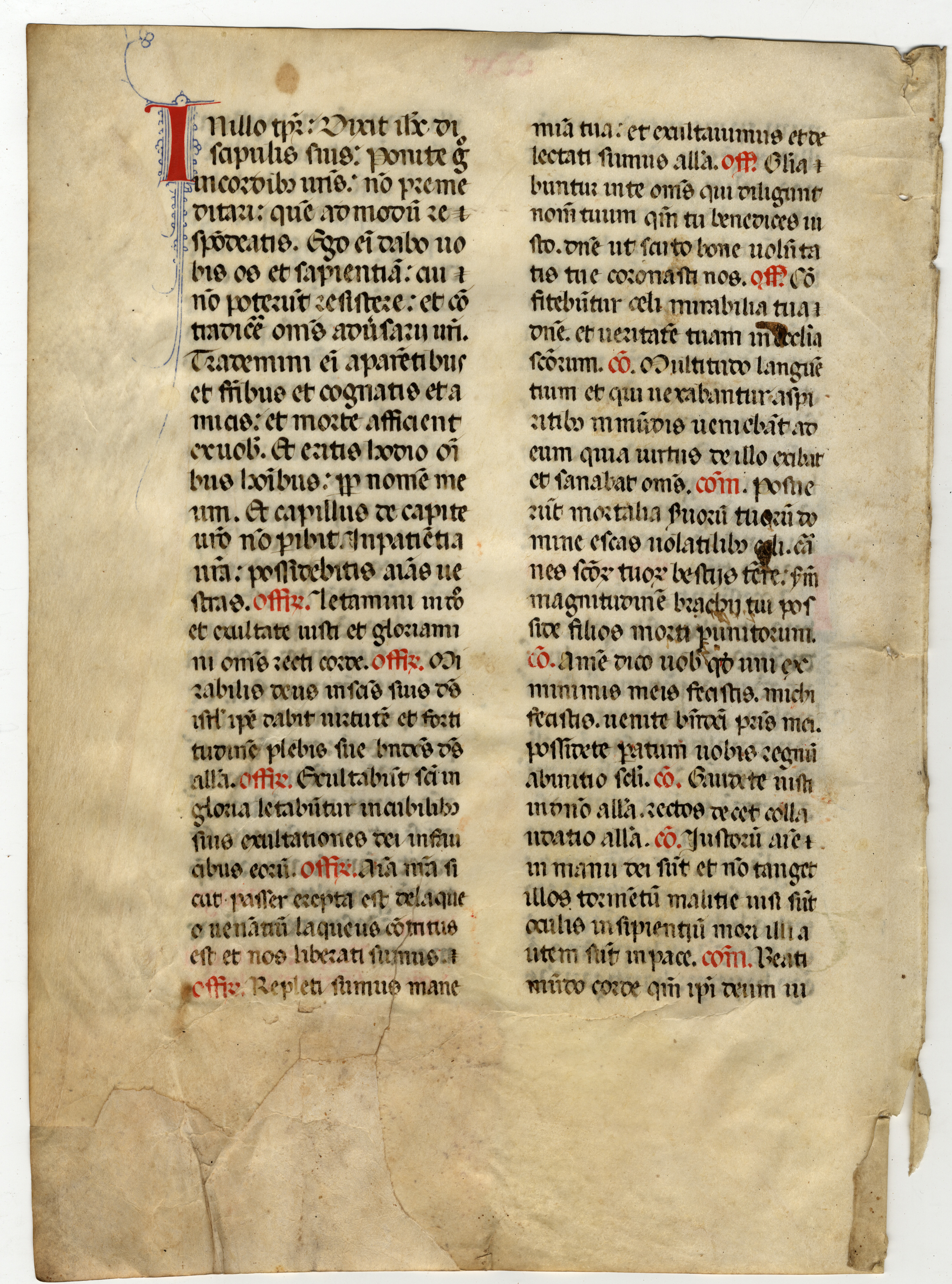 ff. 1rA-2vB, Messale, inc. -mini propter me in testimonium illis; expl. hereditabit illum dominus Deus noster. Lectio libri sapientiae