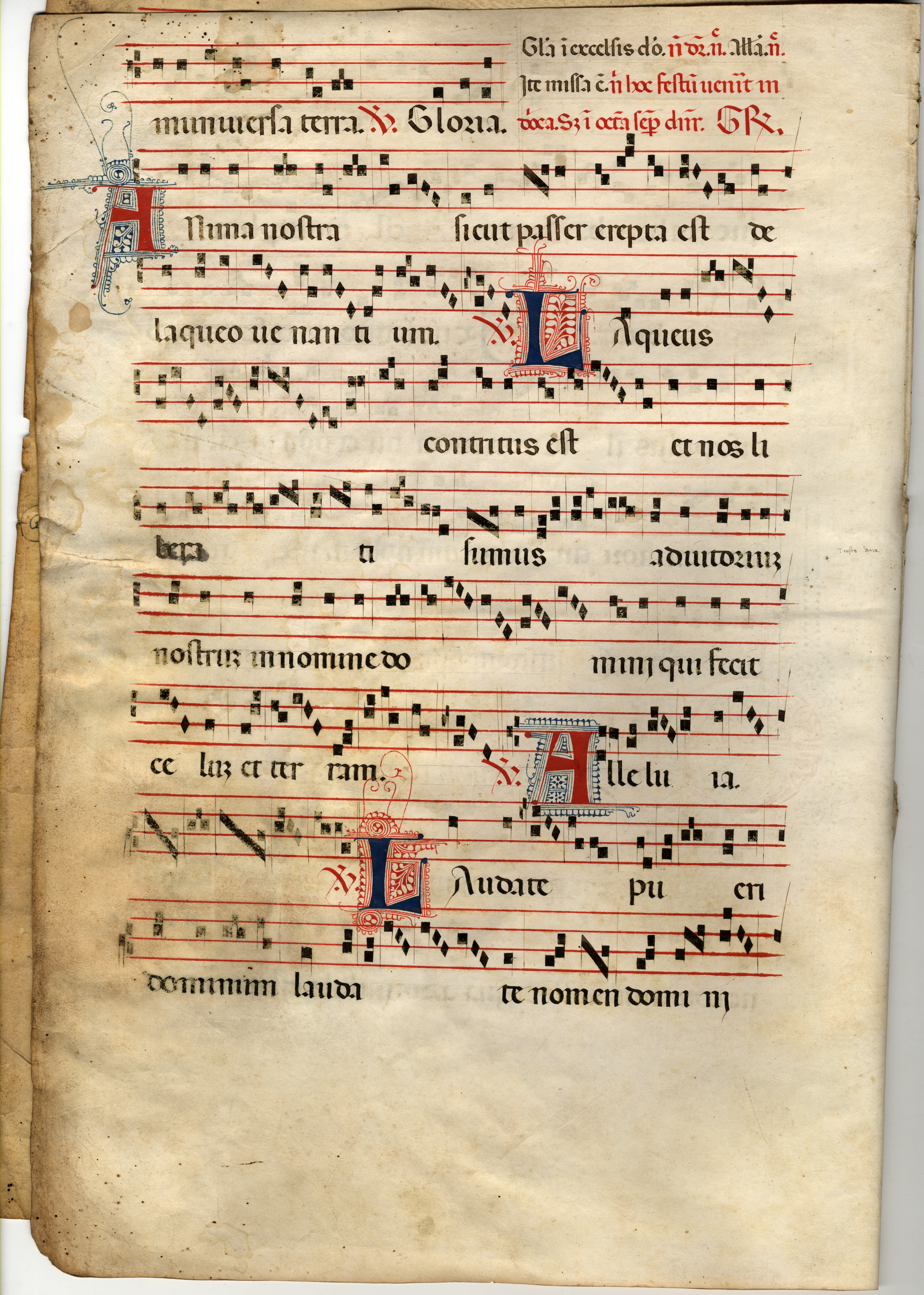 f. 1r-v, Graduale (In sancti Iohannis evangeliste et In festo sanctorum innocentium), inc. –ma florebit sicut cedrus; expl. Dominum laudate nomen Domini