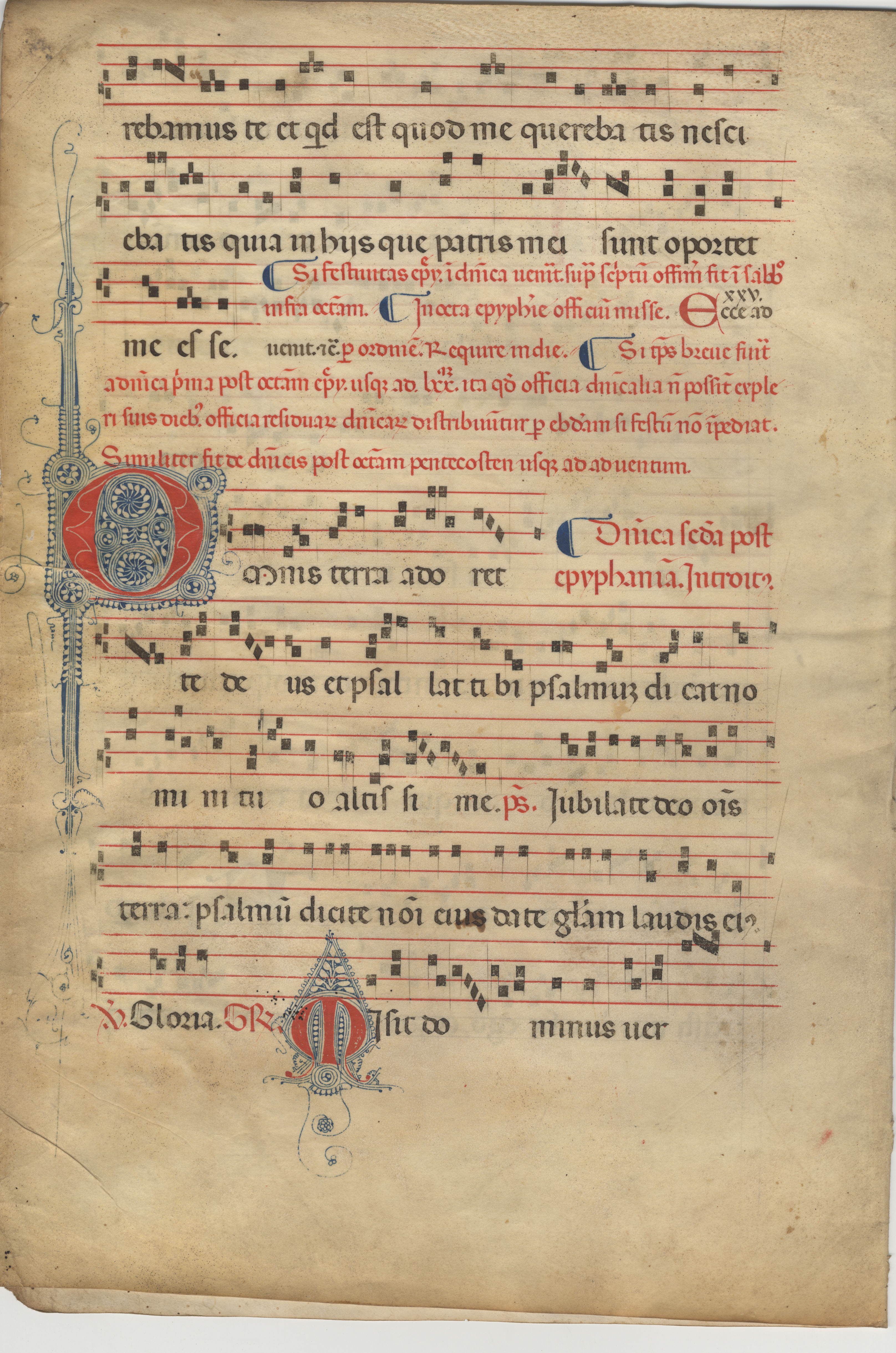 f. 2r-v, Graduale (Dominica infra octavam Epiphaniae et Dominica secunda post Epiphaniam), inc. –ra servite Domino in letitia; expl. Misit Dominum ver-