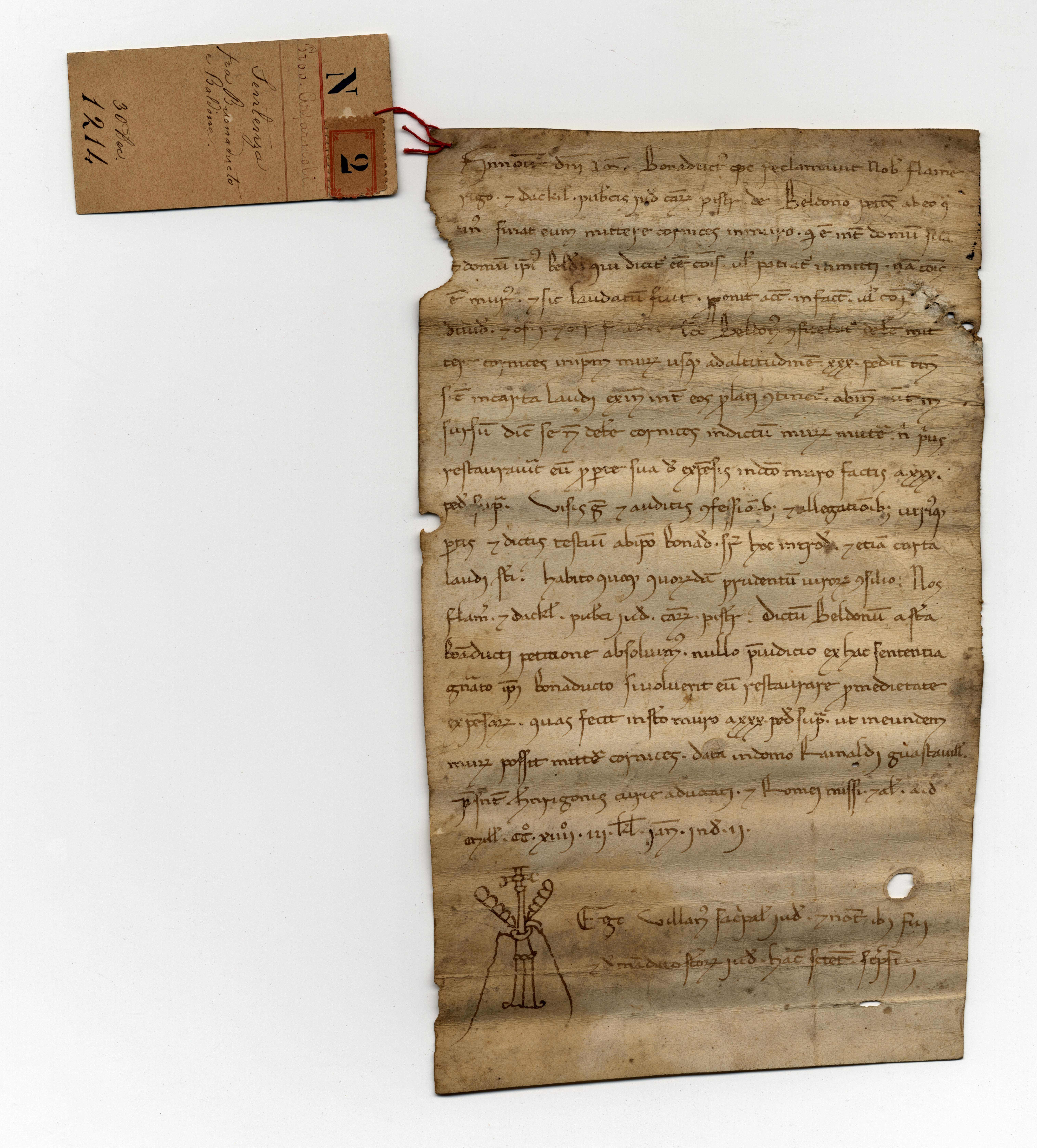 Nella causa tra Bonaducto e Beldono circa l’apertura di mensole in un muro confinante tra le rispettive abitazioni, i giudici pistoiesi Flamerigo e Dackilo emettono una sentenza favorevole a Beldono.