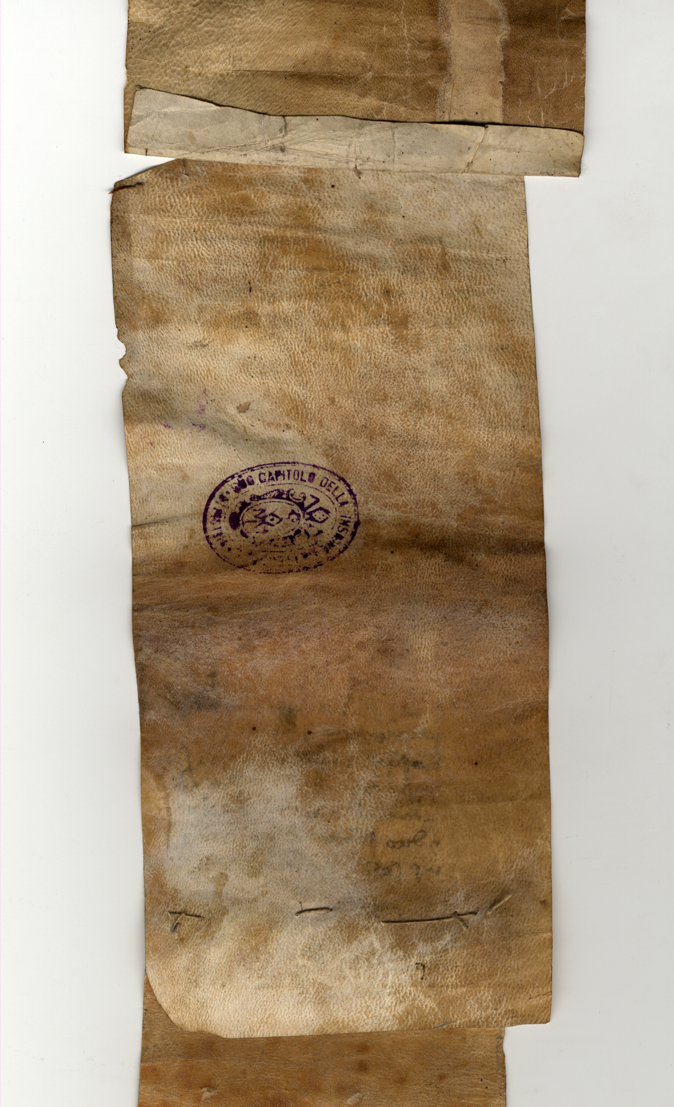 La pergamena è cucita con i documenti n. 26a, 26c, 26d, 26e, 26f, 26g e 26h, a formare un rotolo.