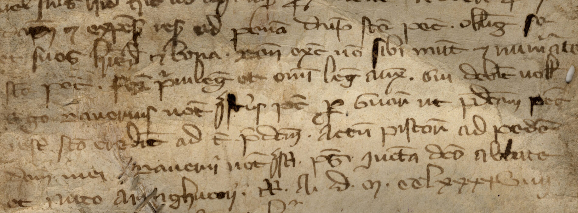 Pergamena mm 230×132: un taglio al centro della membrana, apertosi da un foro originario e poi cucito; piccolo forellino all’interno del margine destro, in alto.