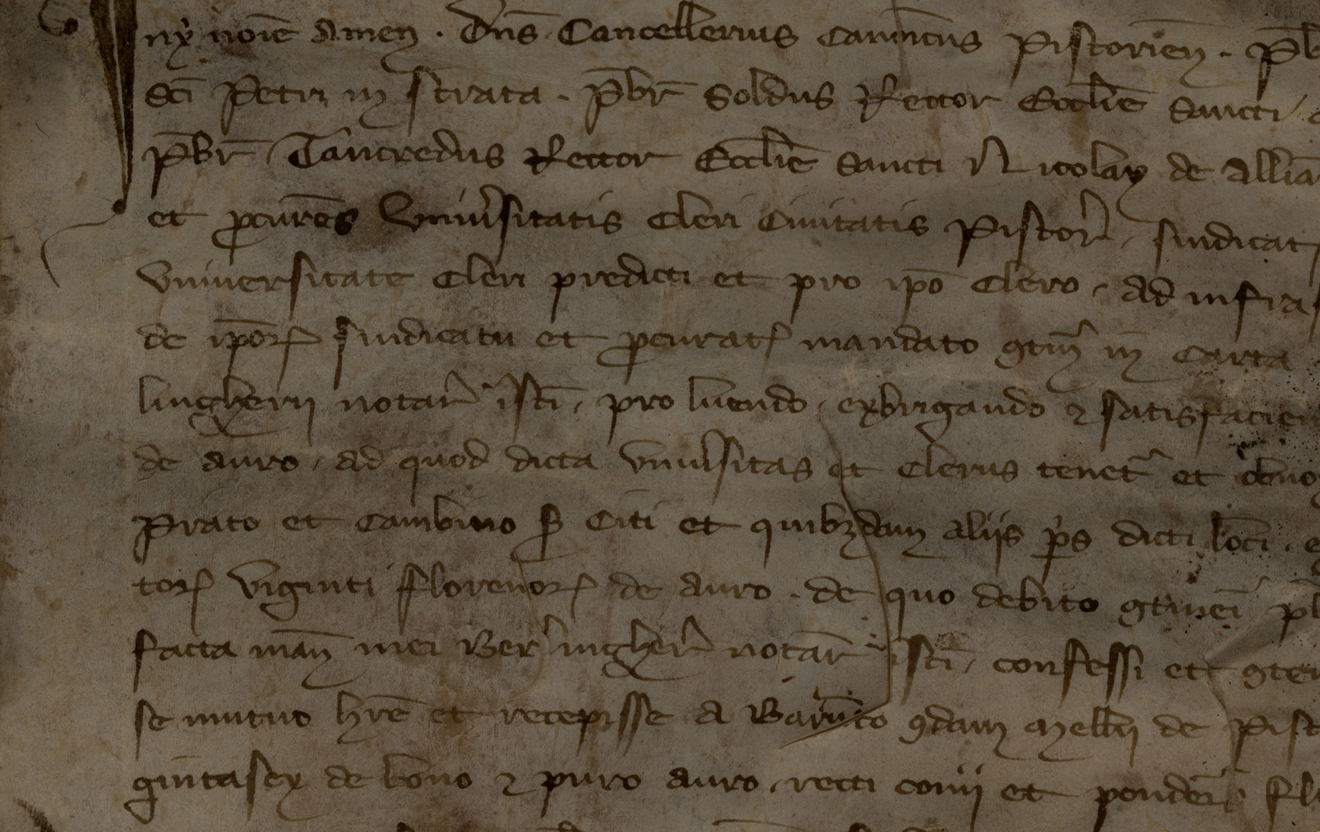 Le integrazioni di lacune dovute a danni materiali del supporto sono racchiuse tra parentesi quadre.